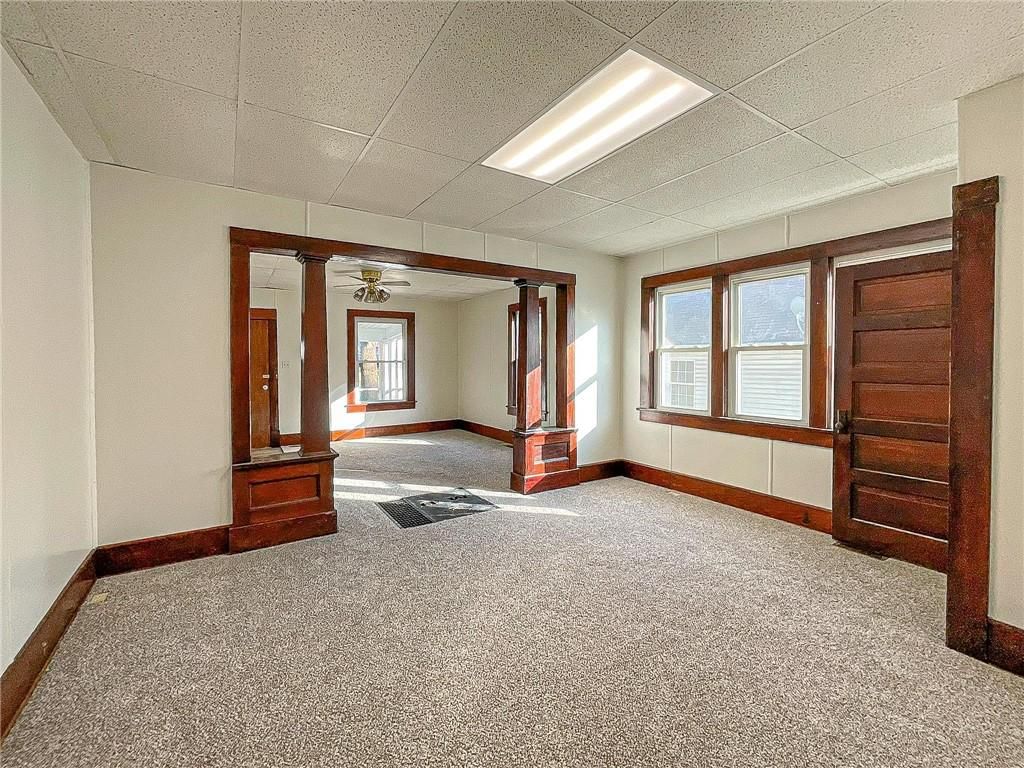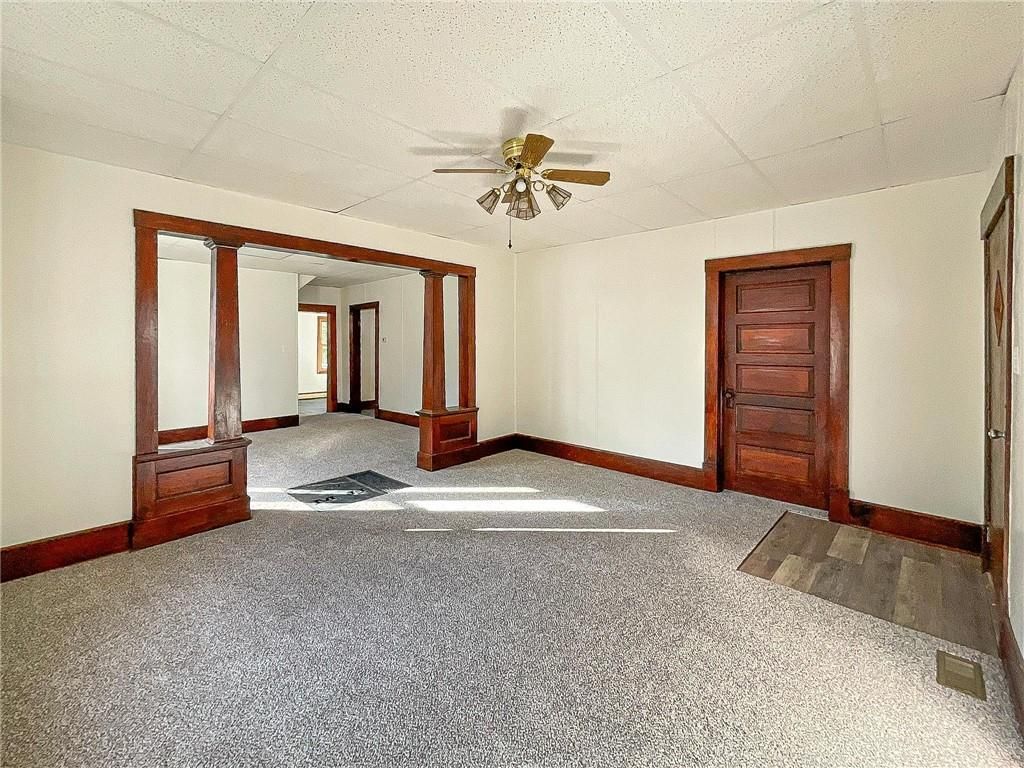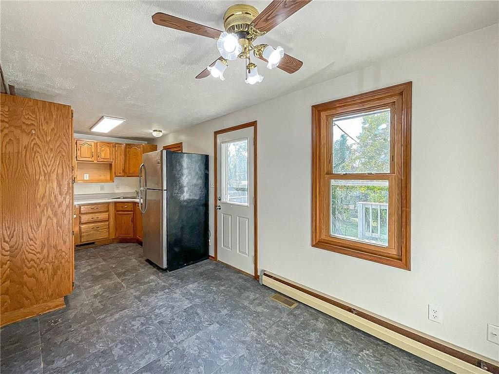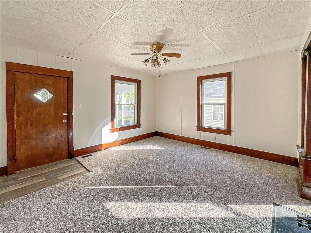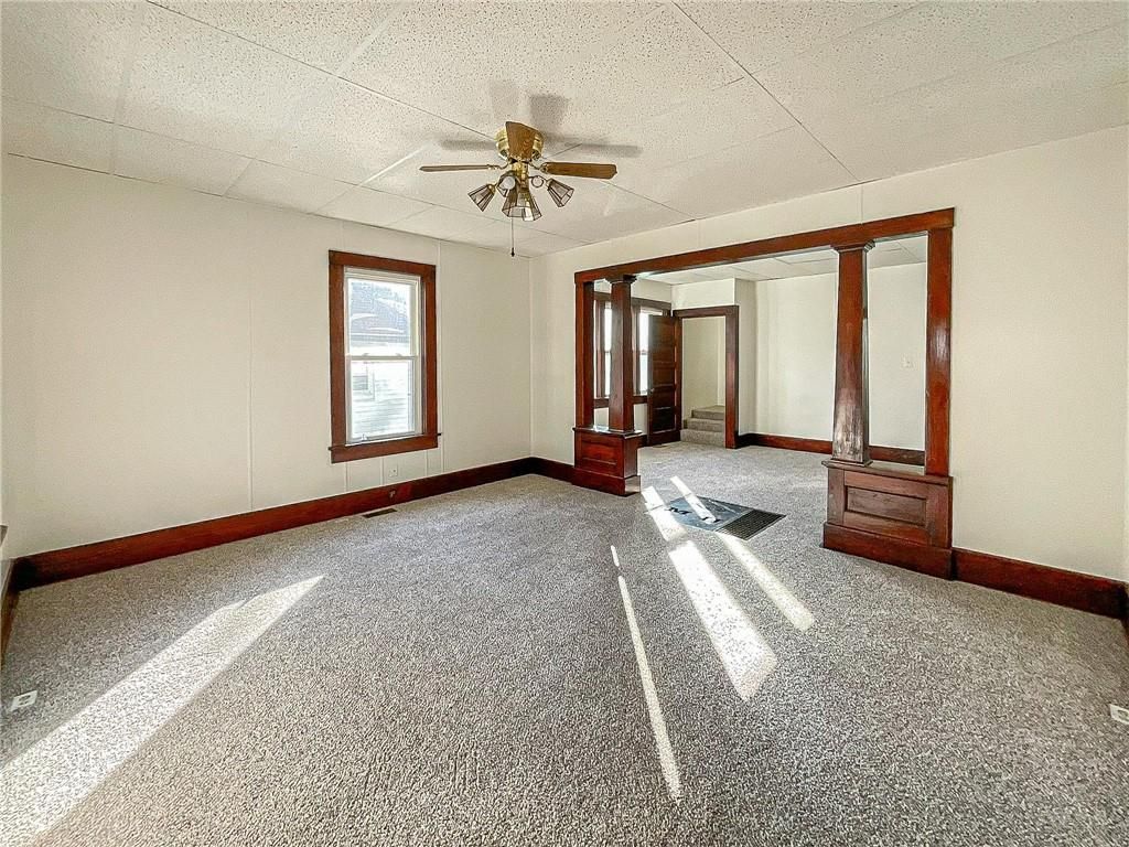 Affordable Move in Ready Home in Sweet Springs!!! Covered Porch and nice living room with ceiling fan, new carpet and ornate doorway to dining room. Eat in kitchen with door to back deck, equipped with Refrigerator and oven/range. Main floor bedroom with full bathroom, double closet and main floor laundry room. Second level with 2 more rooms, both with ceiling fans. 3/4 basement perfect for storage and shelter, central heating and cooling system, maintenance free metal roof and thermal pane vinyl windows. Quiet street, conveniently located close to I-70, just 30 min from Sedalia and Marshall, less than 1h drive from Kansas city and Columbia.