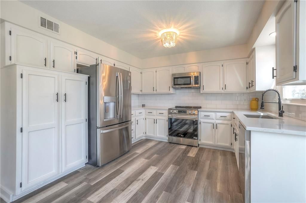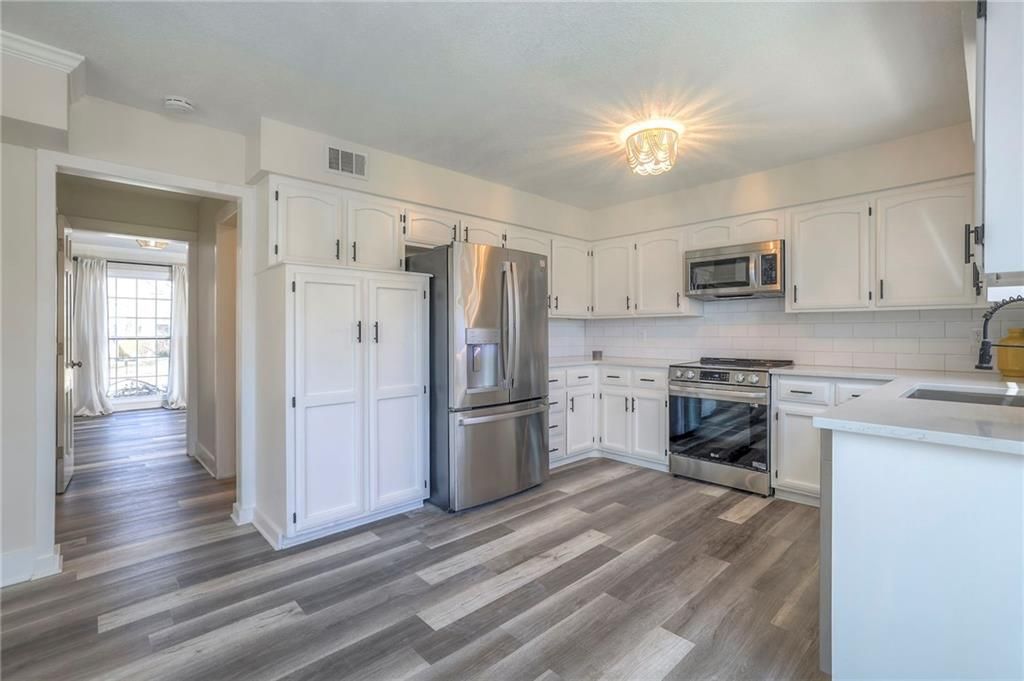Welcome to Oak Park Manor, where contemporary elegance meets comfort in this charming, move-in-ready, two-story home. Step into a fresh, updated interior that offers a blank slate for your personal touch. Enjoy the abundance of natural light streaming through big, bright windows, illuminating the open floor plan. Step outside onto the patio, looking out at the fenced backyard. Upstairs, the spacious primary suite features a sitting room, two closets, and a beautifully updated bathroom. The large, bright hall bathroom features double sinks and beautiful tile floors. NEW flooring throughout main level; ALL NEW bathrooms; NEW kitchen; NEW basement carpet; Upstairs carpet is 2 years old; NEW microwave, stove, and dishwasher; fridge and Laundry is 3 years old; ALL fresh paint; ALL new light fixtures.