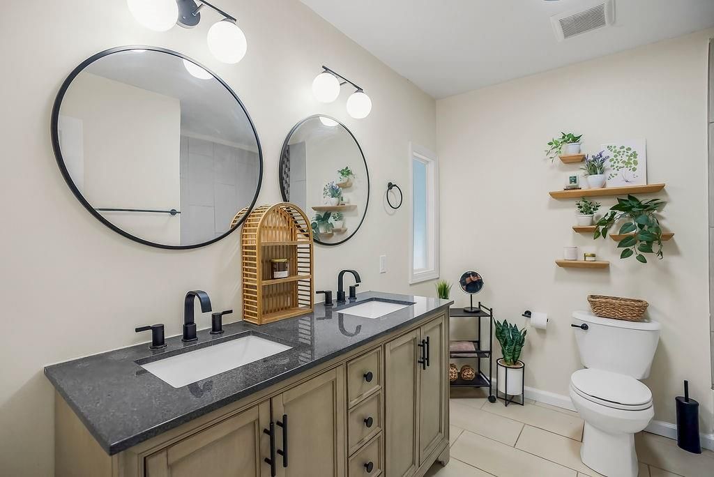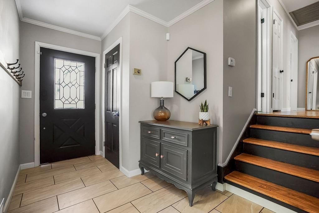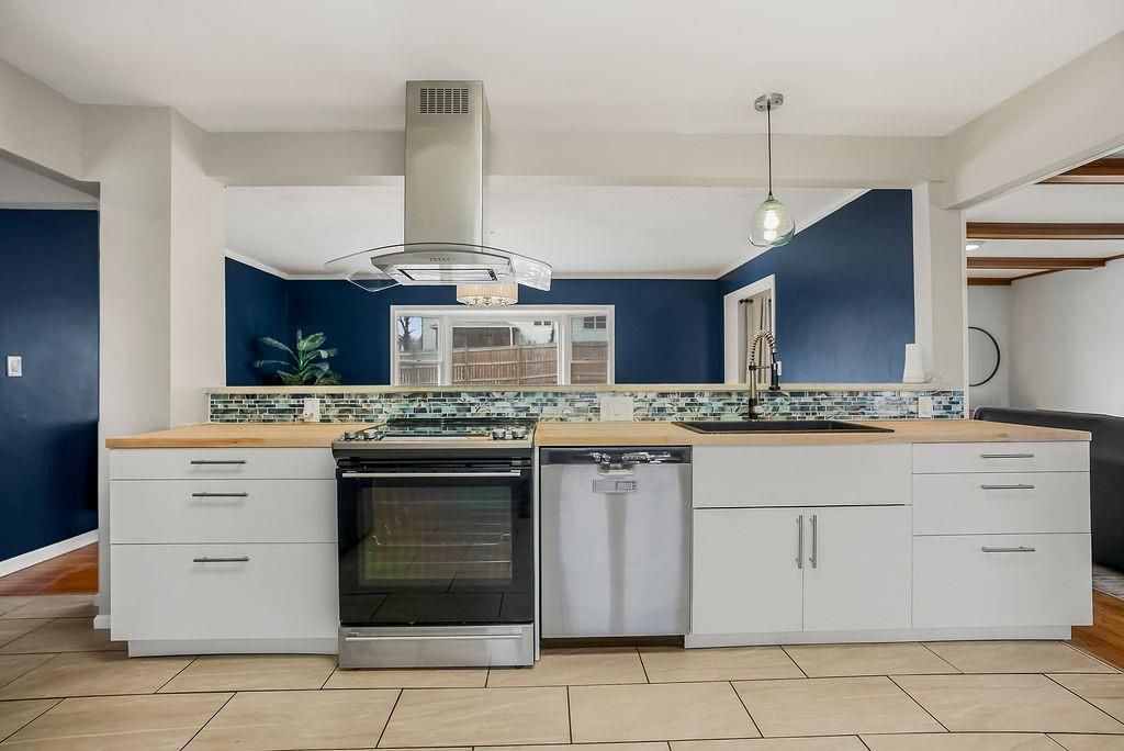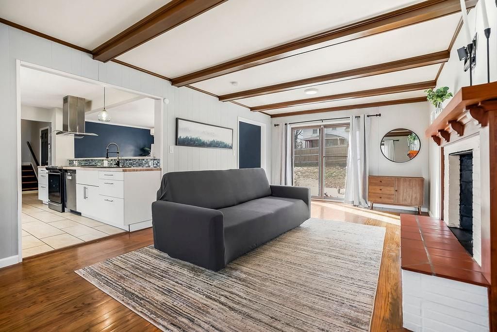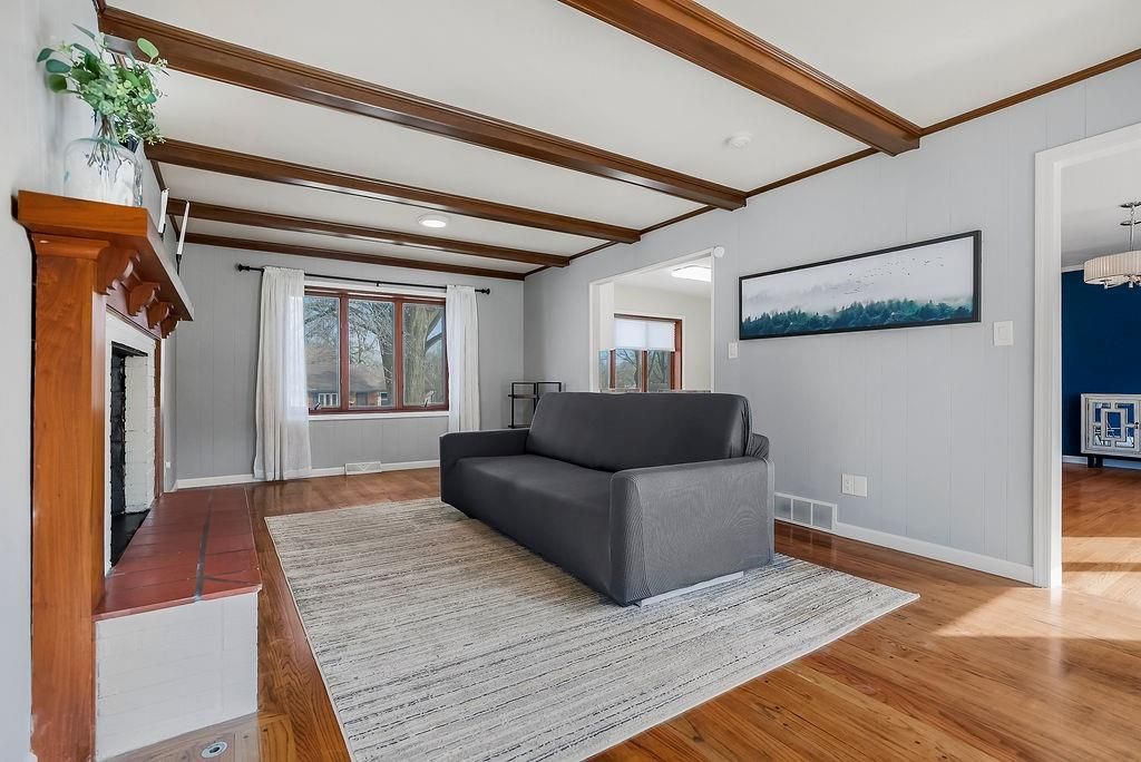 This chic home is ready to welcome you! What a great place to gather friends and family, with its easy flow on the main level from the kitchen to the living room and into the spacious dining room. The dining area features a generous eat-at bar - perfect for casual meals or entertaining. The updated kitchen offers stainless steel appliances, including a French door refrigerator that stays with the home! Step outside to a nice-sized deck, ideal for relaxing or hosting summer get-togethers. Hardwood floors run throughout the living room, dining room, and all three bedrooms, adding warmth and charm. The bathrooms have been tastefully updated, providing a fresh, modern feel. The lower level features a versatile rec room - perfect for a gaming space, family room, movie room, workout space, or whatever fits your lifestyle. There's so much to love about this home!