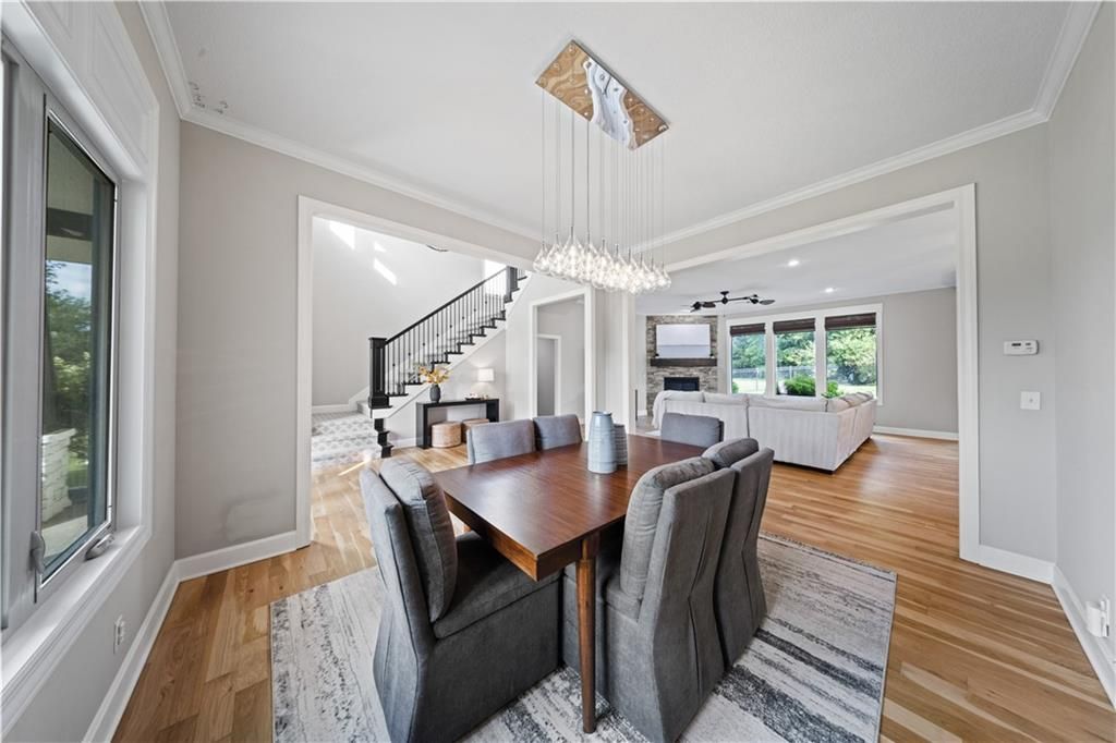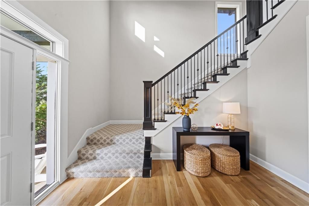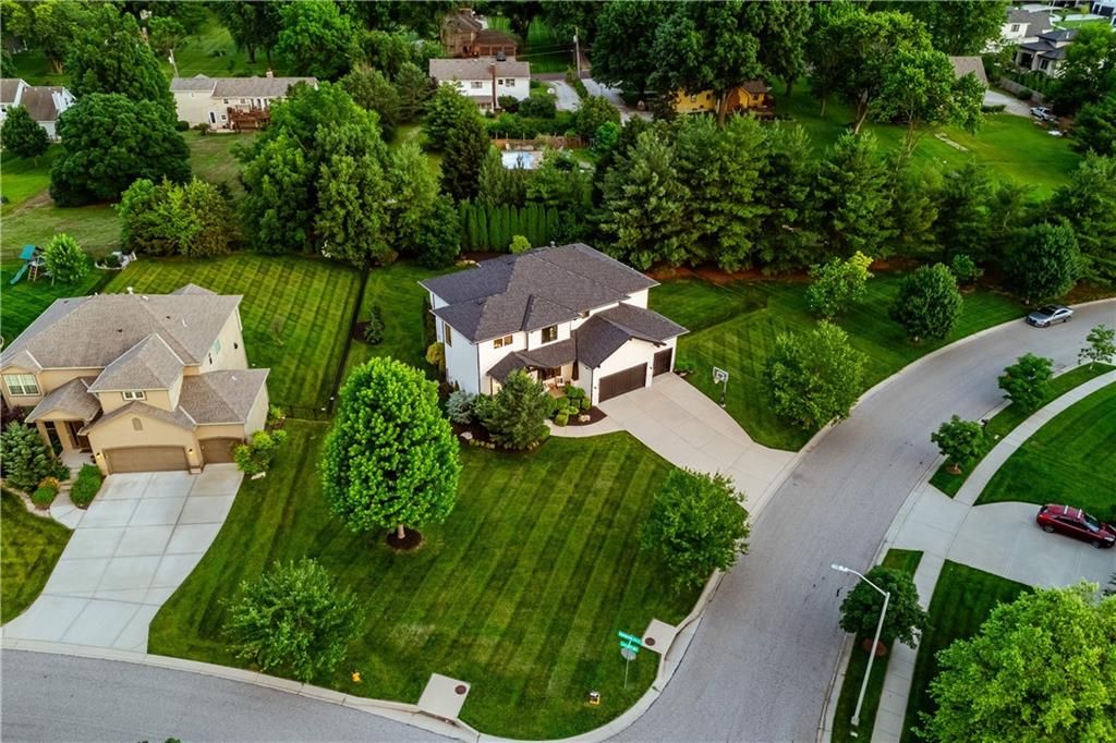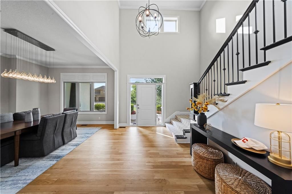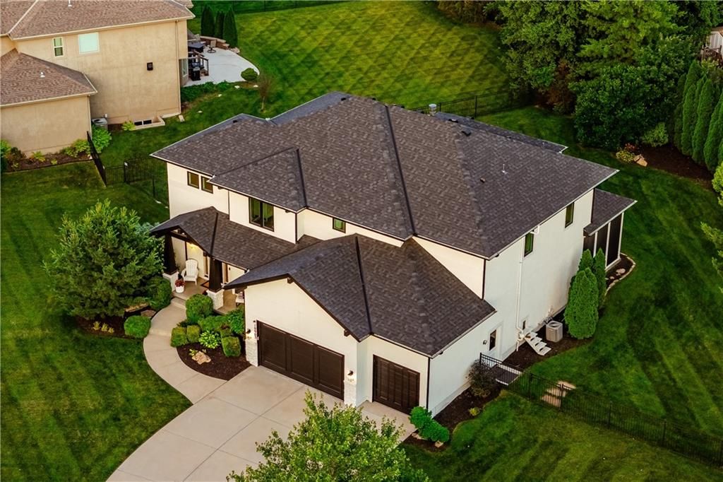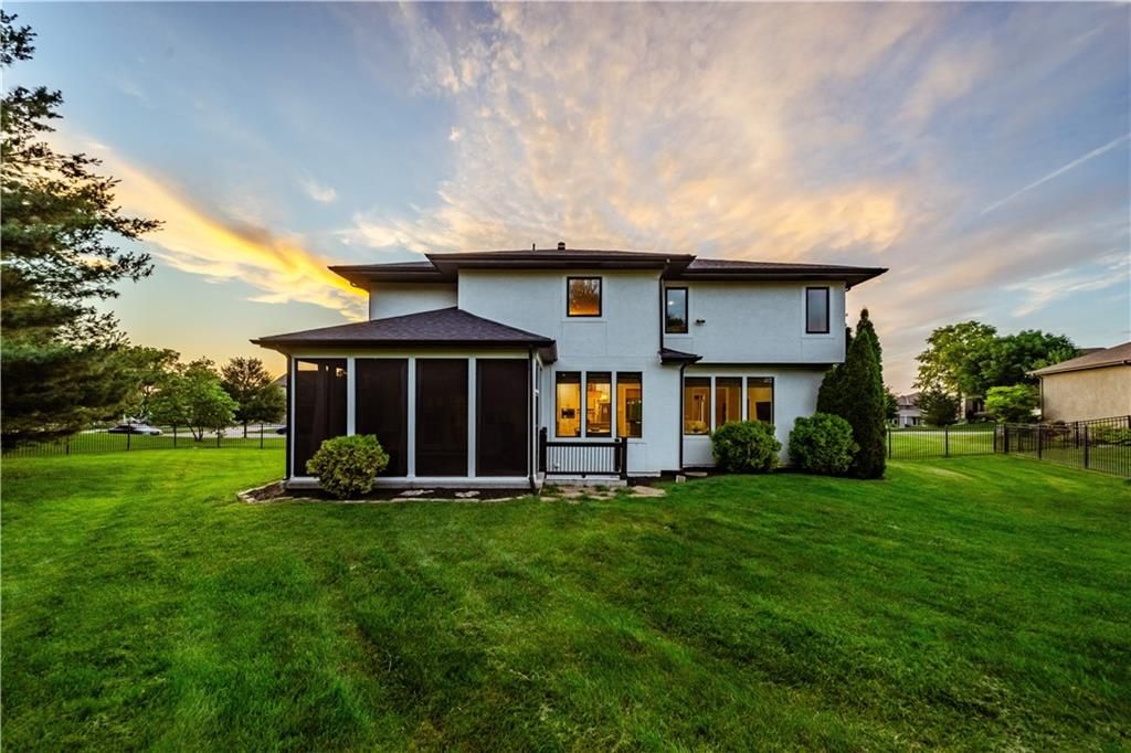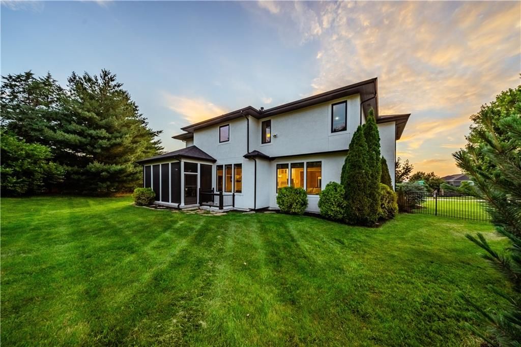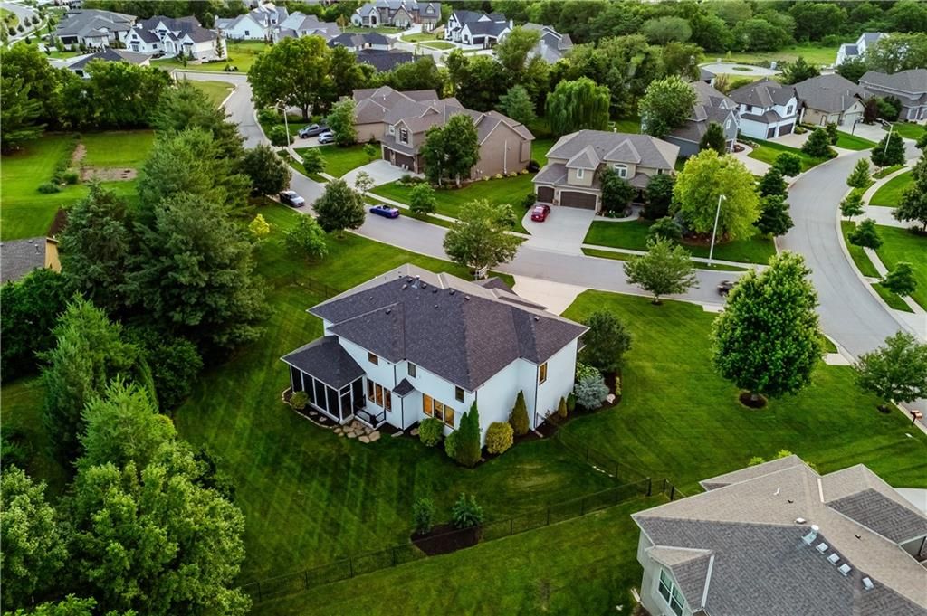 Built by Lambie Custom Homes, this stunner sits on a nearly half-acre, private lot in the highly sought-after Coffee Creek Crossing neighborhood. The open concept main level packs some serious wow factor, featuring newly refinished gleaming hardwood floors, high-end kitchen, formal dining, large breakfast area, a walk-in pantry, mud room, and private office with French doors and convenient access to the fabulous screened-in porch. An entertainer's dream. The 2nd story includes a spacious primary suite, bath with soaking tub, huge walk-in closet, and attached laundry room. All bedrooms are equipped with their own full bathroom and plenty of privacy. The fully finished lower level boasts a wet bar, 5th bedroom, full bathroom, and plenty of storage. Roof less than 3 years old! The extra-wide lot includes the convenience of an irrigation system, and the backyard is fully fenced and fully private. A rare feature for the neighborhood. Close to award-winning Blue Valley schools and just a short stroll to all that Coffee Creek Crossing has to offer, including the fabulous pool, walking trails, and more! Inside and out, this home truly has it all. Book your showing today.
