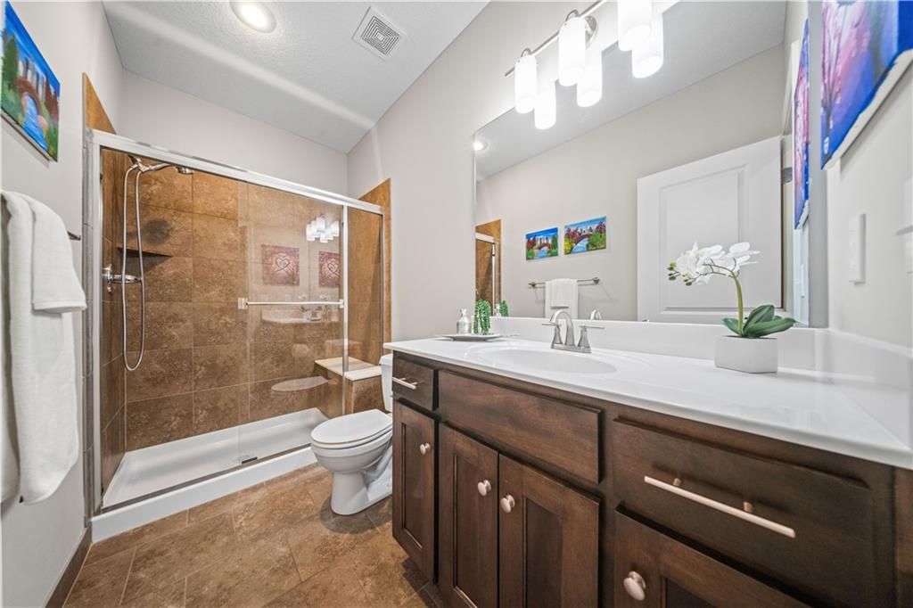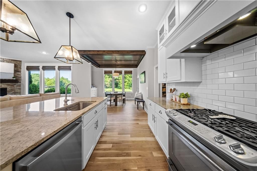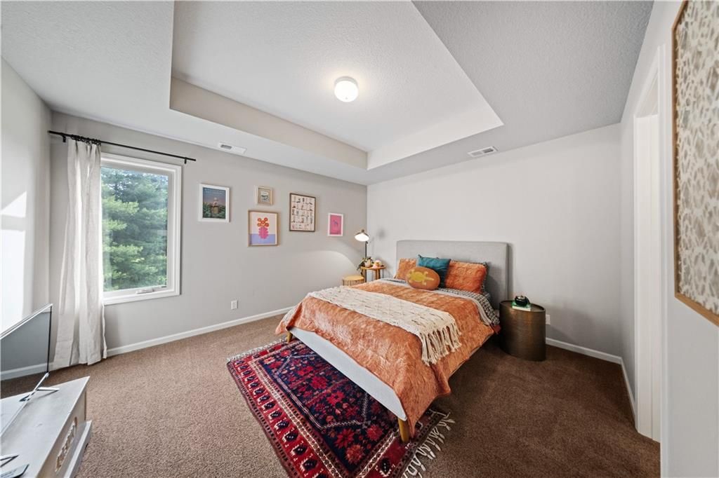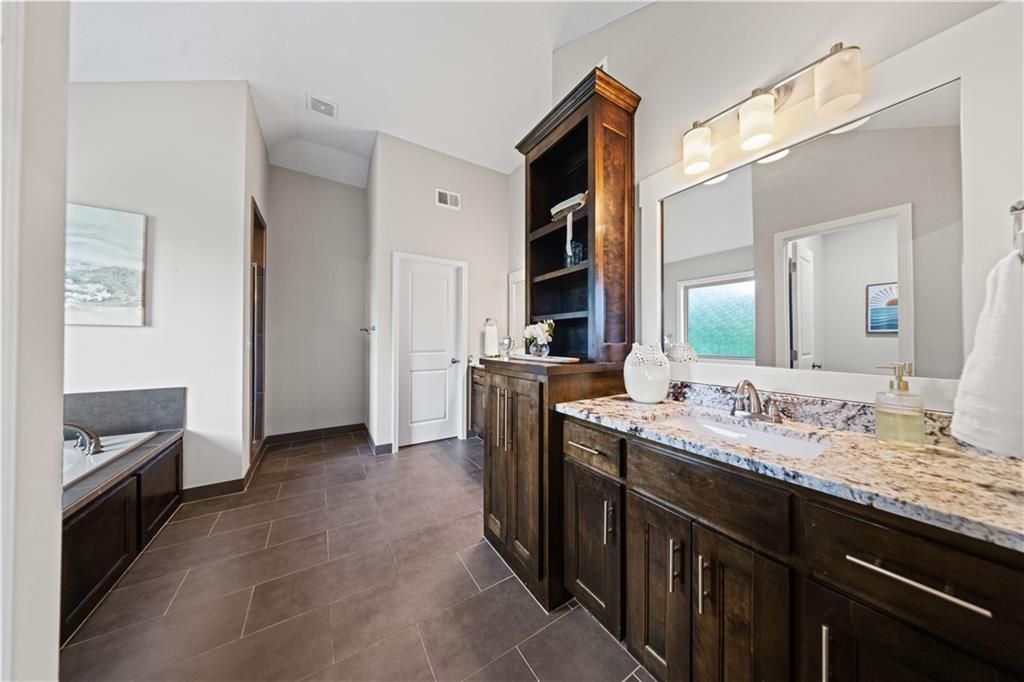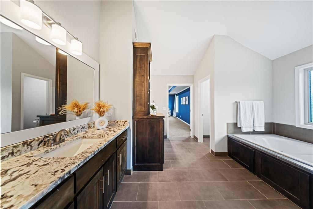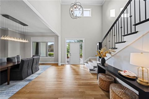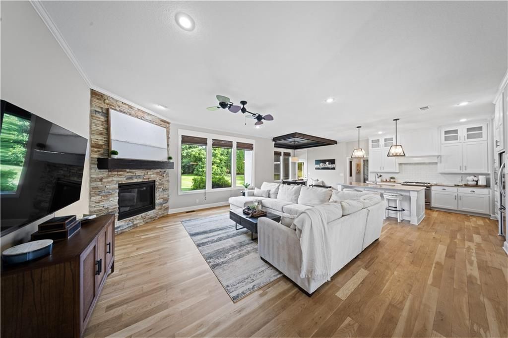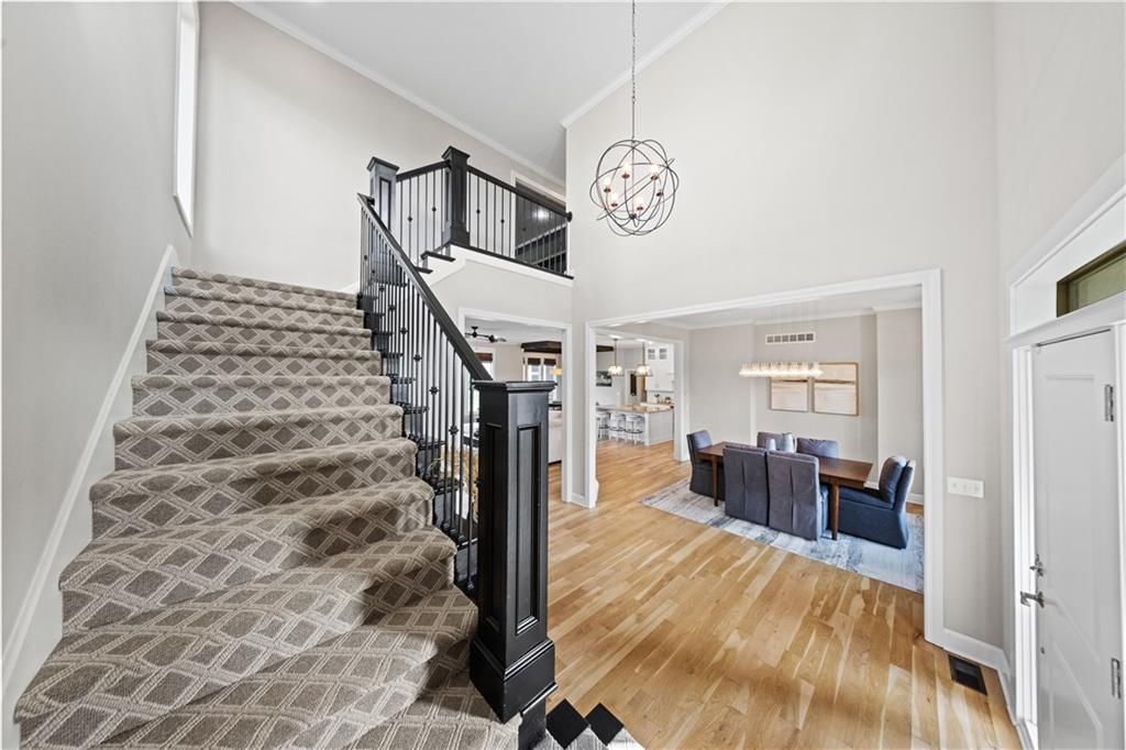 Built by Lambie Custom Homes, this stunner sits on a nearly half-acre, private lot in the highly sought-after Coffee Creek Crossing neighborhood. The open concept main level packs some serious wow factor, featuring newly refinished gleaming hardwood floors, high-end kitchen, formal dining, large breakfast area, a walk-in pantry, mud room, and private office with French doors and convenient access to the fabulous screened-in porch. An entertainer's dream. The 2nd story includes a spacious primary suite, bath with soaking tub, huge walk-in closet, and attached laundry room. All bedrooms are equipped with their own full bathroom and plenty of privacy. The fully finished lower level boasts a wet bar, 5th bedroom, full bathroom, and plenty of storage. Roof less than 3 years old! The extra-wide lot includes the convenience of an irrigation system, and the backyard is fully fenced and fully private. A rare feature for the neighborhood. Close to award-winning Blue Valley schools and just a short stroll to all that Coffee Creek Crossing has to offer, including the fabulous pool, walking trails, and more! Inside and out, this home truly has it all. Book your showing today.