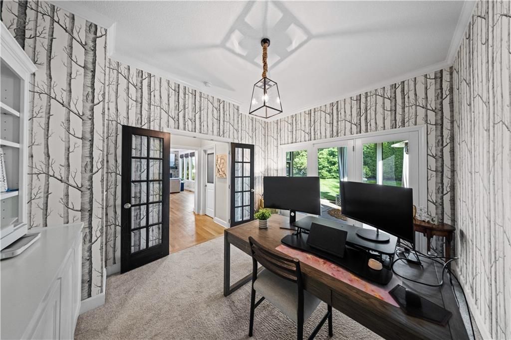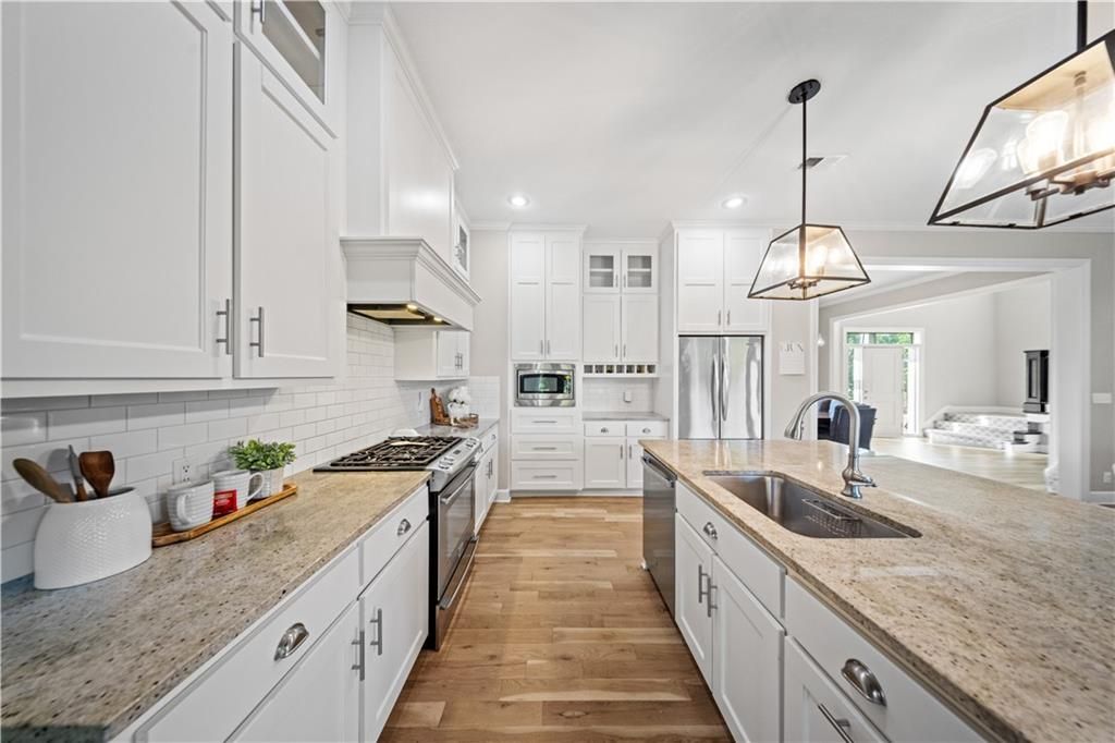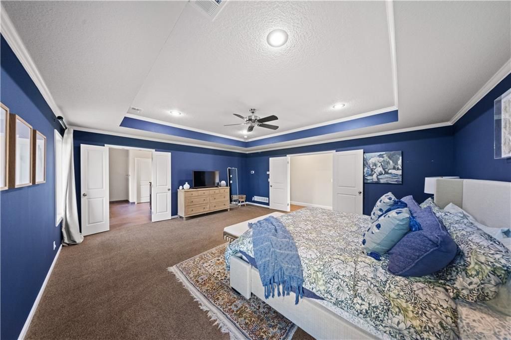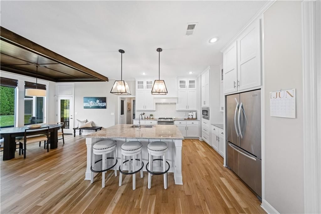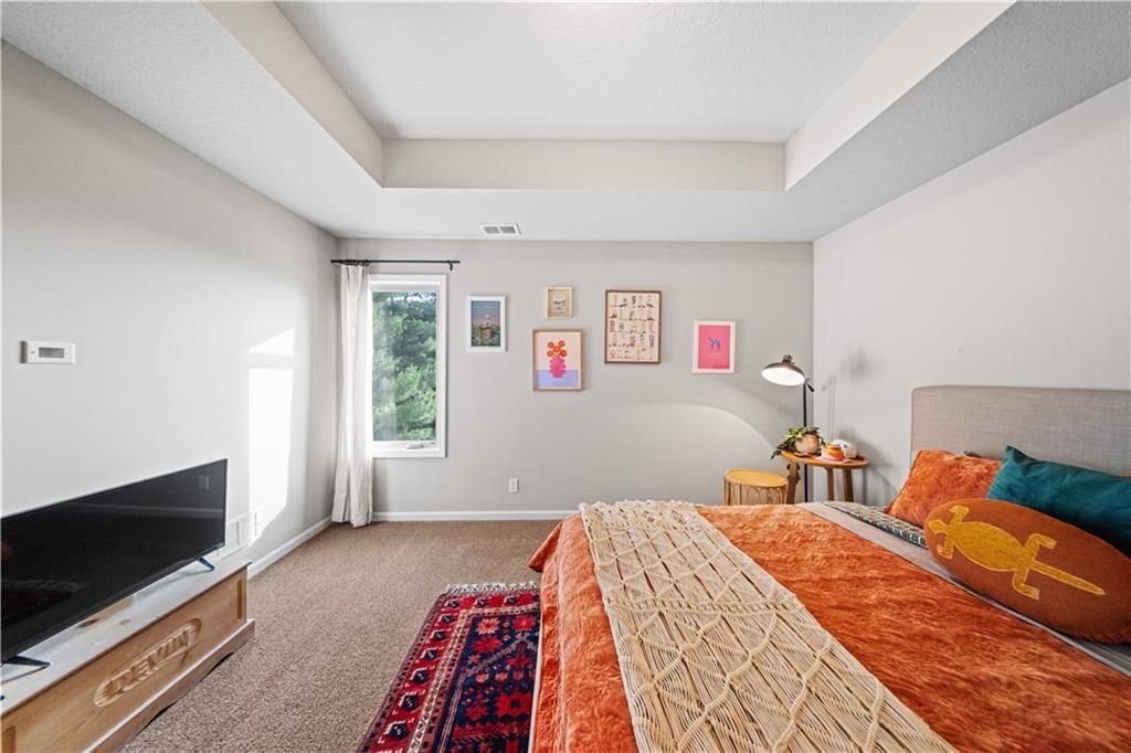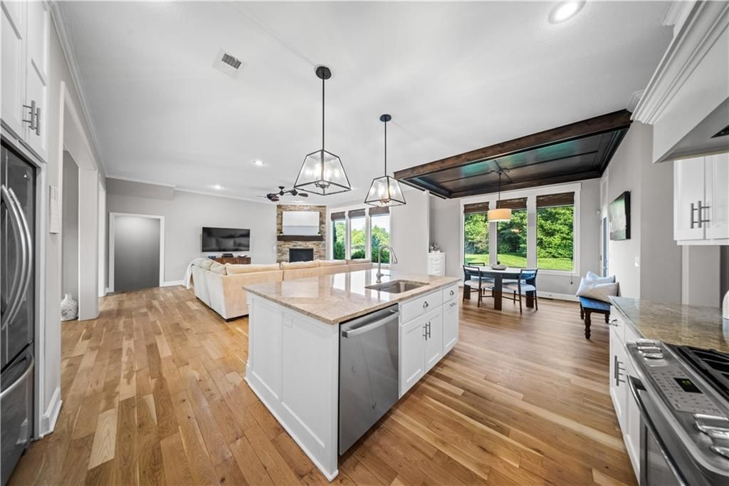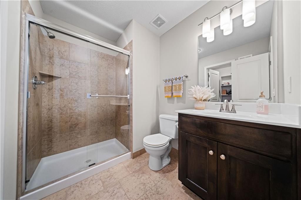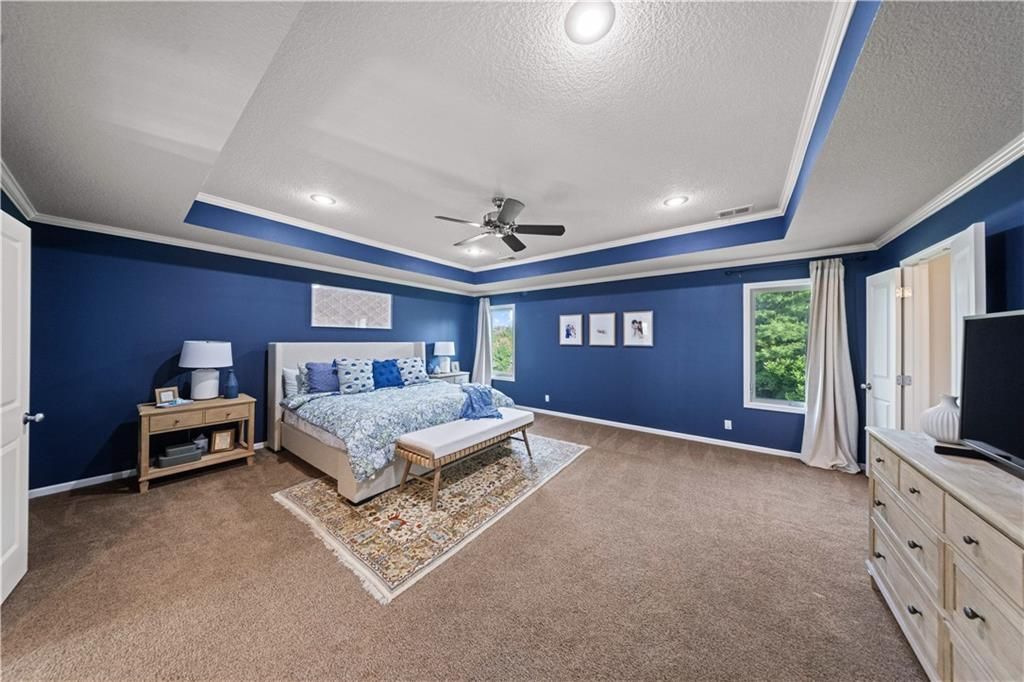 Built by Lambie Custom Homes, this stunner sits on a nearly half-acre, private lot in the highly sought-after Coffee Creek Crossing neighborhood. The open concept main level packs some serious wow factor, featuring newly refinished gleaming hardwood floors, high-end kitchen, formal dining, large breakfast area, a walk-in pantry, mud room, and private office with French doors and convenient access to the fabulous screened-in porch. An entertainer's dream. The 2nd story includes a spacious primary suite, bath with soaking tub, huge walk-in closet, and attached laundry room. All bedrooms are equipped with their own full bathroom and plenty of privacy. The fully finished lower level boasts a wet bar, 5th bedroom, full bathroom, and plenty of storage. Roof less than 3 years old! The extra-wide lot includes the convenience of an irrigation system, and the backyard is fully fenced and fully private. A rare feature for the neighborhood. Close to award-winning Blue Valley schools and just a short stroll to all that Coffee Creek Crossing has to offer, including the fabulous pool, walking trails, and more! Inside and out, this home truly has it all. Book your showing today.