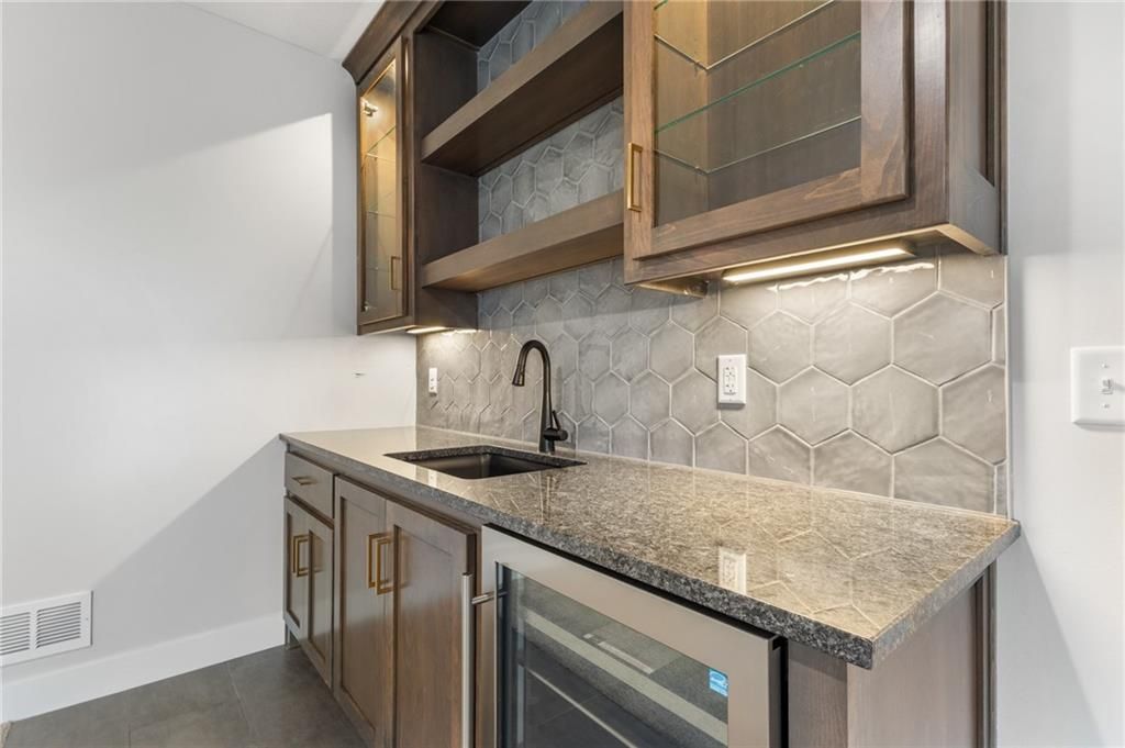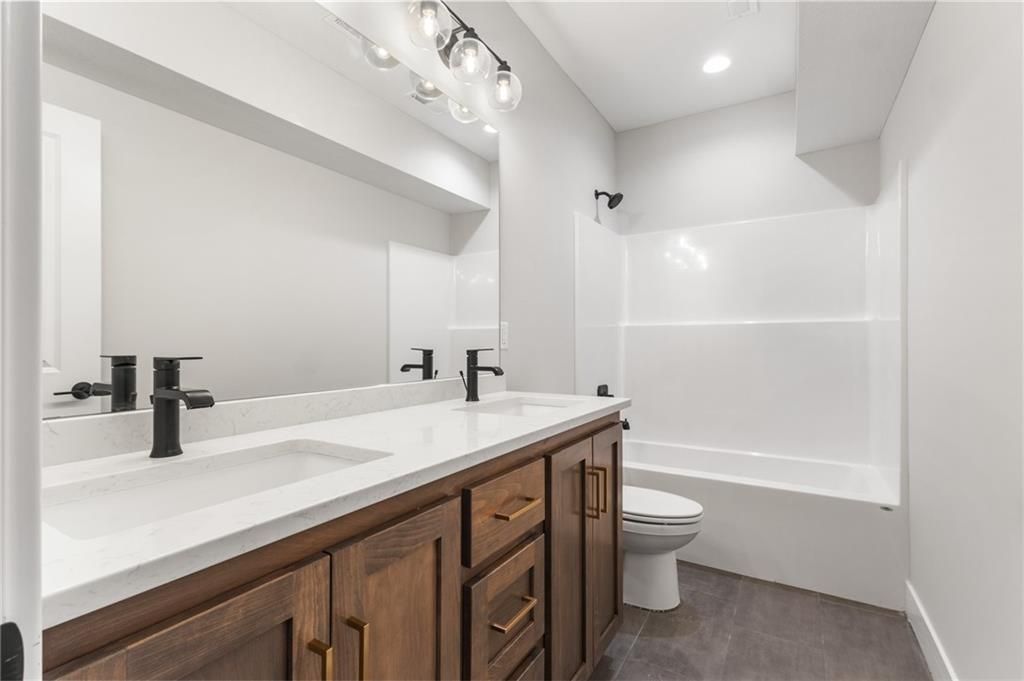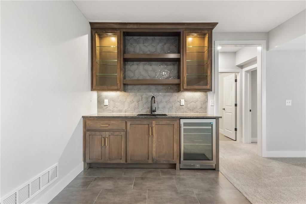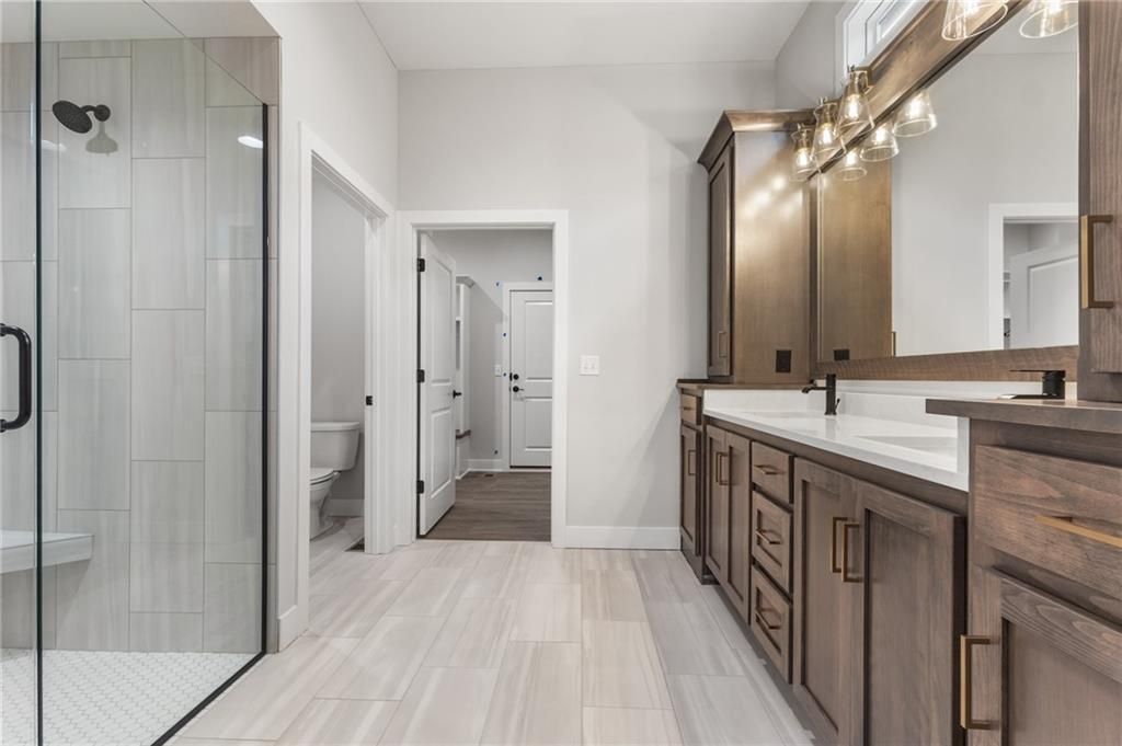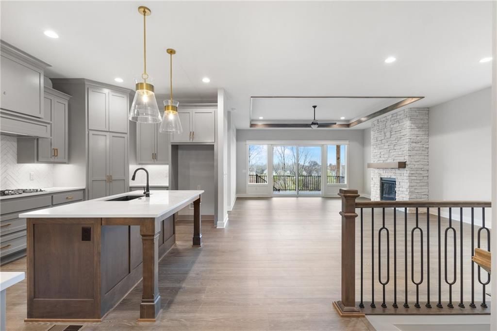MOVE IN READY! This incredibly stunning Sonoma reverse 1.5 home offers not one but TWO primary suites on the main level, each with its own private ensuite bathroom! The main primary suite is designed with luxury in mind, featuring a zero-entry shower and a huge walk-in closet with custom shelving. Your guests will also have a powder room on the main level, ensuring their comfort and convenience. The laundry room is located on the main level, with entry from the primary bathroom, as well as an added mudroom. In addition, the home has a gorgeous kitchen with ample storage and counter space, open to the dining area and great room - a perfect gathering spot! The 10-foot ceilings on the main level are highlighted by a stunning stone floor-to-ceiling fireplace in the great room. And the lower level of the home offers the ULTIMATE entertainment area: with an oversized rec room, a modern wet bar, two large bedrooms, and a full bath, the Sonoma offers one of the best basements for family and guests to enjoy their own space--or for you to host large parties! And you can enjoy your spacious backyard from your large, covered deck with lower patio. Kensington Farms offers a sparkling pool, playground, greenspace, close proximity to Downtown Lee's Summit, Summit Fair, and all shopping and dining needs.
