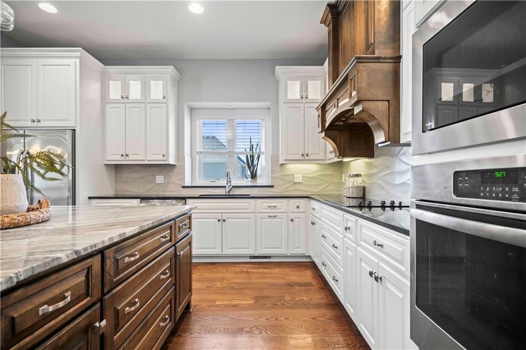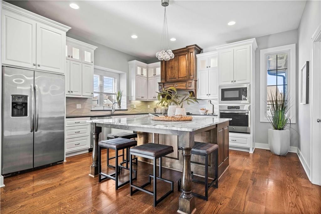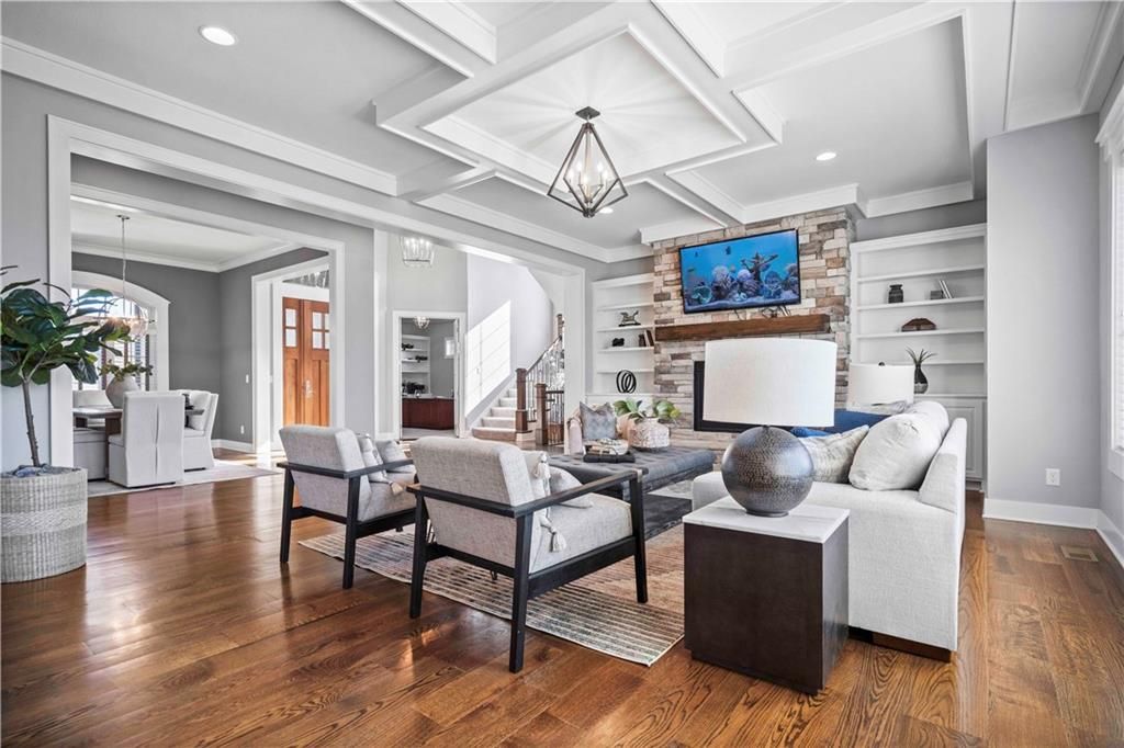LUXURY MASTERPIECE OF CRAFTSMANSHIP AND DESIGN!! LOCATED IN HIGHLY DESIRED MILLS FARM AND TUCKED IN A CULDESAC!! Builder's Home seamlessly combining modern luxury with a touch of traditional charm. This home is situated on a spacious lot and exudes elegance from the moment you set eyes on it. Beautiful combinations of lights, darks bring character with custom molding, wide plank wood floors & stacked stone fireplaces. Open concept floor plan flows smoothly from one space to the next. Great Room Fireplace is flanked by built-ins. Gorgeous Kitchen is sure to please with large center eat-in island, granite countertops, stainless steel appliances and walk-in pantry! Breakfast Room and Formal Dining. Awesome enclosed porch off breakfast area-perfect for enjoying your favorite beverage. Hearth Room off kitchen provides a more private entertaining area. Convenient Main level Office has fireplace and built-ins. Mud room and half bath complete the main. Head up after a long day to the Spacious Primary Suite with tray vault ceiling and fireplace. En-Suite bath boasts 2 vanities, whirlpool tub, separate walk-in shower and generous walk-in closet! Laundry room off the primary closet features built-ins and sink. 3 more spacious bedrooms each with walk-in closets and their own en-suite bathrooms complete the second level. Amazing subdivision amenities: clubhouse, swimming pools, fishing ponds, volleyball, pickleball and tennis and basketball courts! Opportunity to have owner/builder finish basement to maintain quality and esthetics throughout at a "mind-blowing" price - see plans in photos. HURRY IN!!