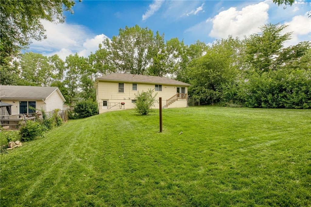 Charming, raised ranch in Kansas City, MO with quick access to highways, shopping, and dining! This 3-bedroom, 2-bath home features a spacious family room with a cozy fireplace, a private dining room overlooking the peaceful backyard, and a well-equipped kitchen with stainless steel appliances and ample storage. Gleaming hardwood floors run throughout the main level, which includes all three bedrooms. The finished lower-level bonus room is perfect for a game room, home theater, gym, or second family room. Move-in ready and full of potential - don't miss your chance to make it yours!