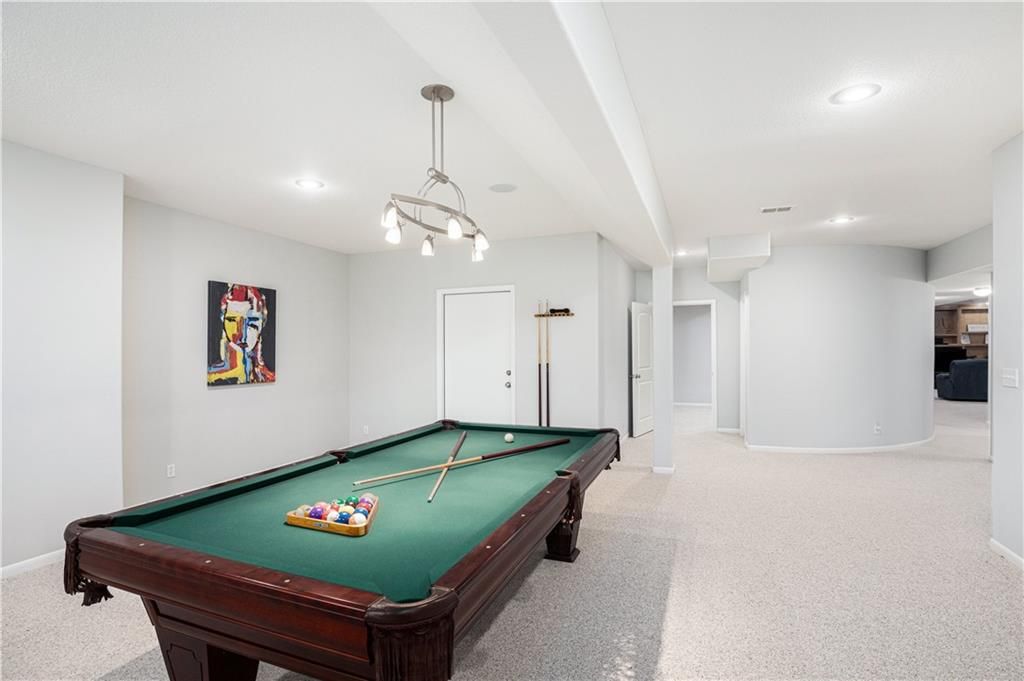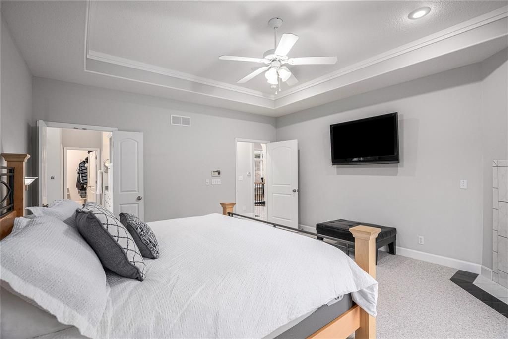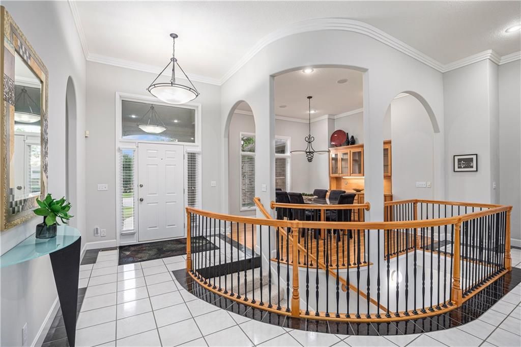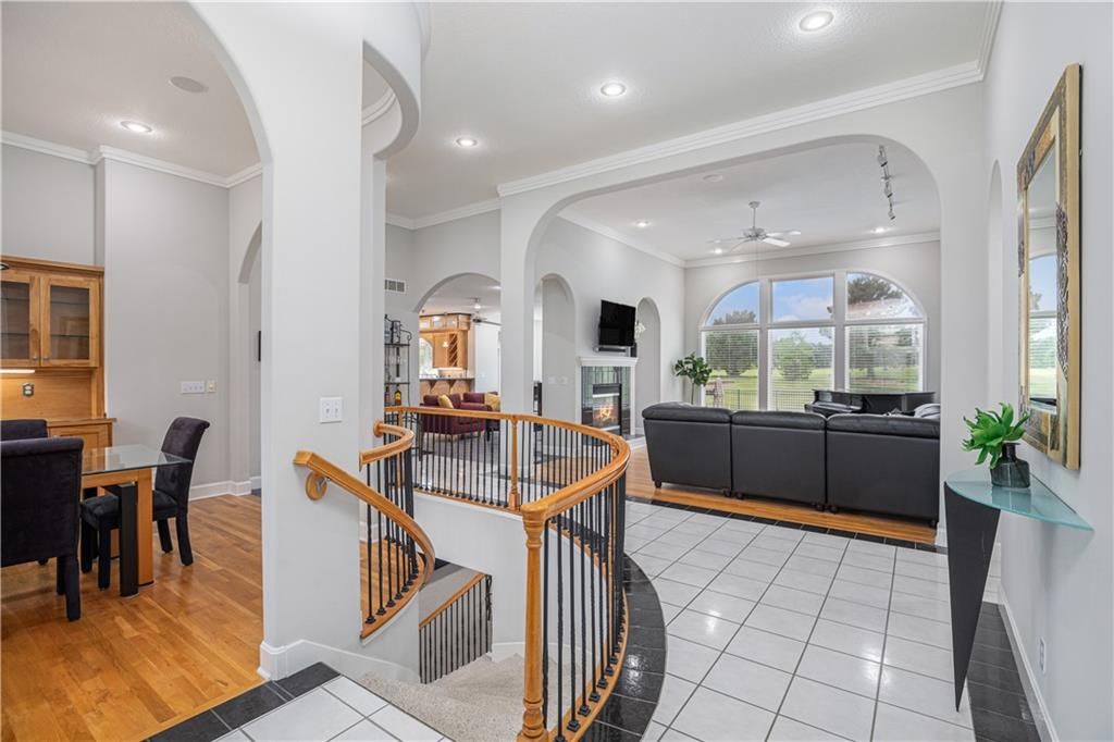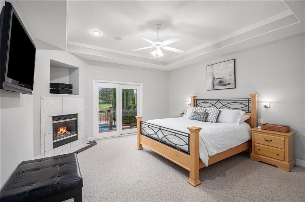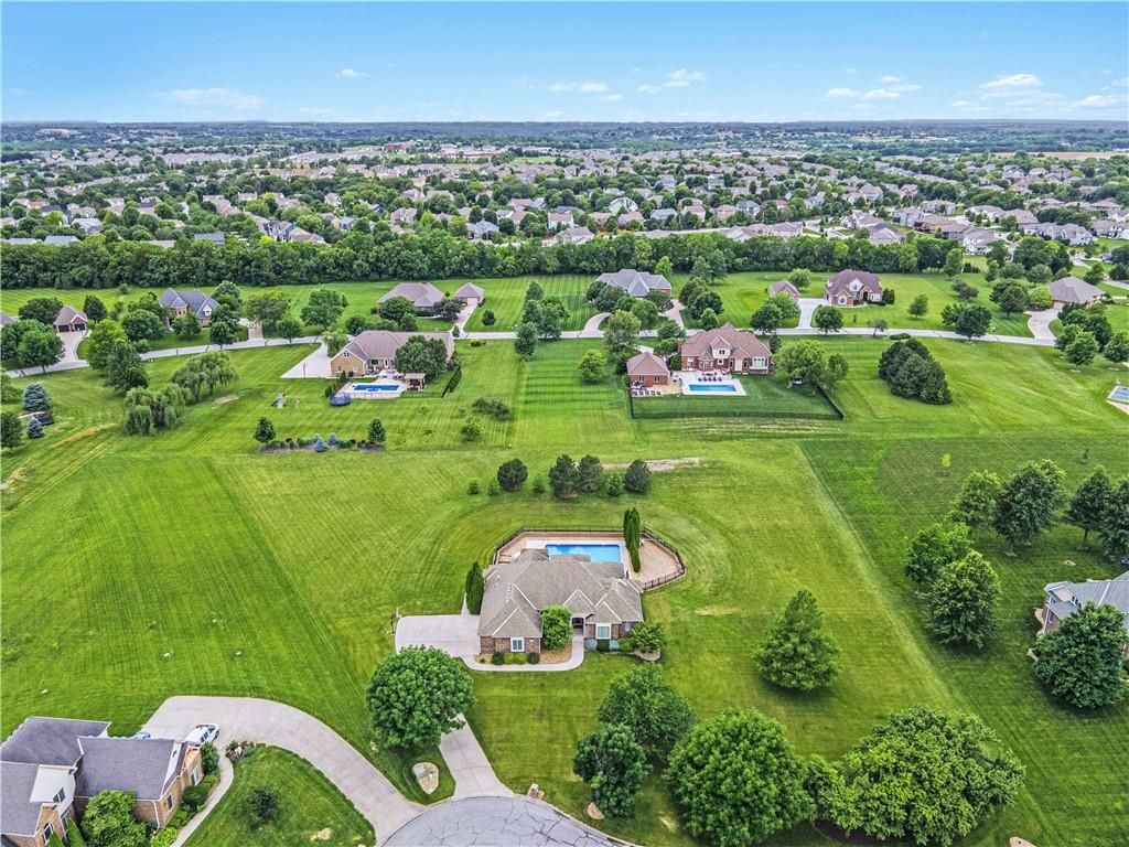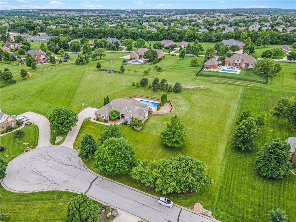 Welcome to this stunning reverse 1.5-story home on a serene 2-acre lot boasting a sparkling pool and an expansive patio with pergola, ideal for outdoor entertaining or quiet relaxation. Step inside and be impressed by the grand entry, where an elegant arched hallway to the left leads into the formal dining room. The main level features an open kitchen with abundant cabinetry, generous counter space, and an eat-in breakfast area that flows into an inviting family room. A separate living room showcases soaring ceilings and walls of windows, filling the space with natural light. The main-level primary suite is a luxurious retreat complete with a cozy fireplace, tray ceiling, and a spa-like en suite offering a double vanity, jetted tub, walk-in shower, and generous walk-in closet. Secondary bedrooms provide flexible options for guests, family, or a home office. Downstairs, the finished lower level delivers even more living space with a wet bar, large recreation area, and an additional gathering room, perfect for movie nights or game days. Combining comfort, functionality, and exceptional outdoor amenities, this home truly has it all.