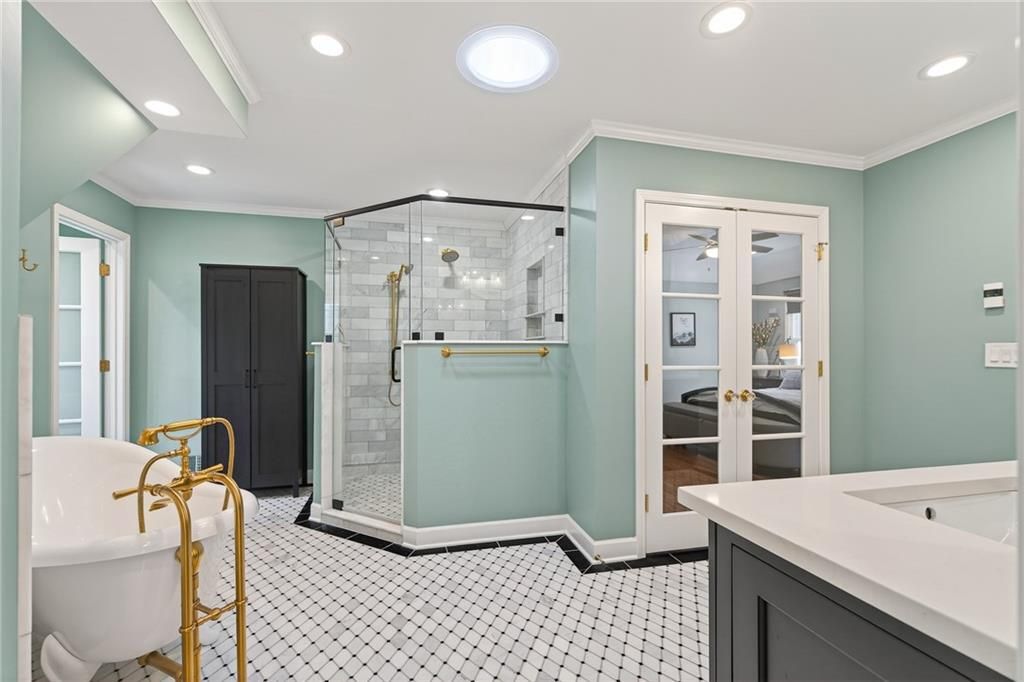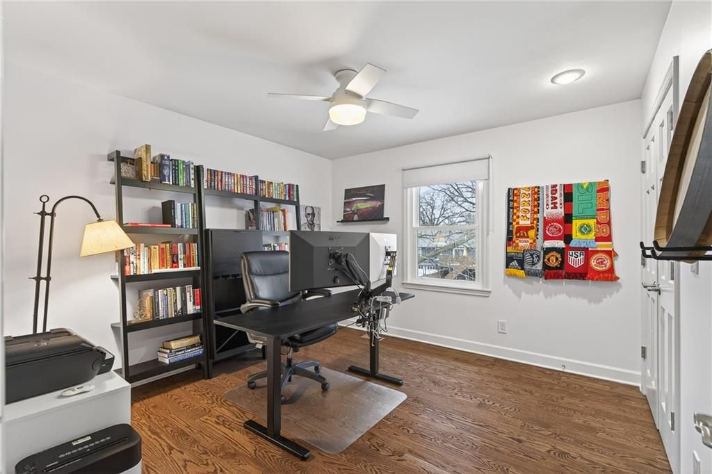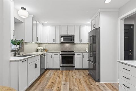Unicorns do exist and this is definitely one! Step inside this beautifully updated colonial-style home and immediately experience the quality and premium updates found throughout. The main level features fresh interior paint and gorgeous, easy-care luxury vinyl plank flooring. The completely remodeled kitchen is a showstopper, offering gorgeous quartzite countertops and backsplash, and new high-end appliances that create a luxury space for cooking and entertaining. Just off the kitchen is a delightful coffee bar that just makes you smile! Easy flow between the office/flex space, formal living and dining rooms. The entire space exudes warmth, comfort, and style. Heading upstairs, three generous bedrooms share a large hall bath with double vanities and a skylight. The updated primary suite stands out as a true retreat. The private en suite features a marble-tiled floor, double quartz vanity, relaxing soaker tub, and a marble subway-tile shower. French doors open to a spacious walk-in closet with a laundry area, a customized Container Store closet system, and heated floors that extend through both the closet and the primary bath. The renovated lower level adds even more versatility with a bar and media area, family room, office, LVP flooring, granite counter, and refrigerator. Additional upgrades include a Rachio smart sprinkler controller, Tesla car charger, Sense whole-home energy monitoring, and smart switches in most upper-level rooms and select lower-level areas. The majority of windows were replaced with double Low E triple-pane Thermal King windows. The furnace and HVAC have been replaced with dual-stage, energy-efficient units for year-round comfort. Located in a wonderful neighborhood close to schools, this home is truly stunning - updated throughout and sure to impress even the pickiest buyer. HVAC and water heater only 4 years old!