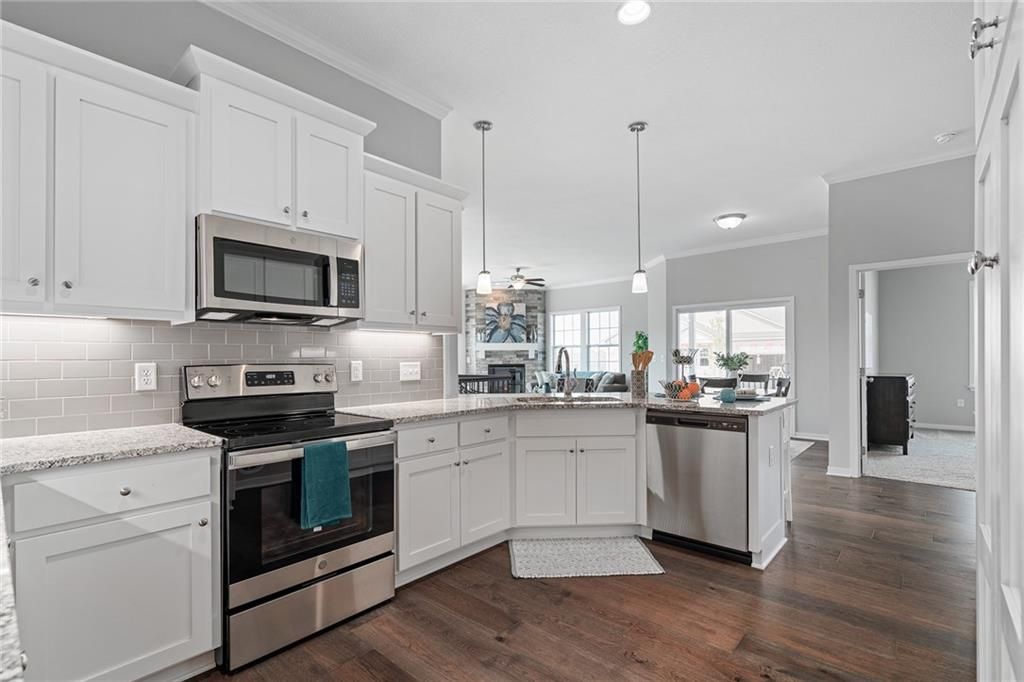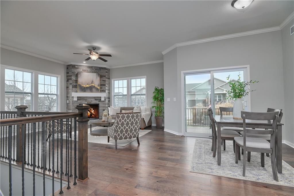"Welcome to Maintenance Provided Ranch Villas this Villa is MOVE IN READY, with an open floor plan, boasting 10' ceilings and elegant features. Enjoy carefree living as lawn care, snow removal, all exterior including roof replacement are all taken care of. The villa comes equipped with stainless steel appliances, custom cabinets, and under counter lighting. The master suite on the main floor offers a walk-in closet, raised vanity tops, and beautifully tiled shower walls and bathroom floors. Hardwood flooring adorns the entry, living room, kitchen, mudroom, office, and dining room. The living room showcases a stone fireplace and floods of natural light. The lower level features a third bedroom and bathroom. The community amenities include a vibrant community center with two pools and scenic walking trails around the lake."