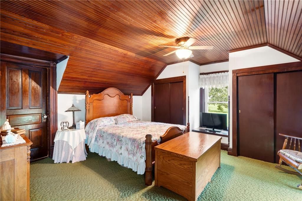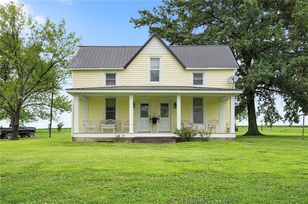 Welcome to your peaceful country retreat! This charming 3 bedroom 1 bathroom farmhouse sits on 7 beautiful acres, offering the perfect blend of open space and timeless character. Enjoy mornings on the inviting front porch or relax on the spacious back patio overlooking your private backyard. Inside you'll find the warm beauty of original farmhouse woodwork and beautiful wood beadboard ceilings all this history in each room. The newer style windows add so much natural light, making the home feel bright and welcoming. Outside you'll love the old rustic barns, perfect for storage, hobby farming or creating your dream workshop. With open pasture and mature trees, there is plenty of space for gardening, animals, or simply enjoying the peaceful views. Don't miss the opportunity to own this classic farmhouse on acreage, call today to schedule your appointment to see this home.