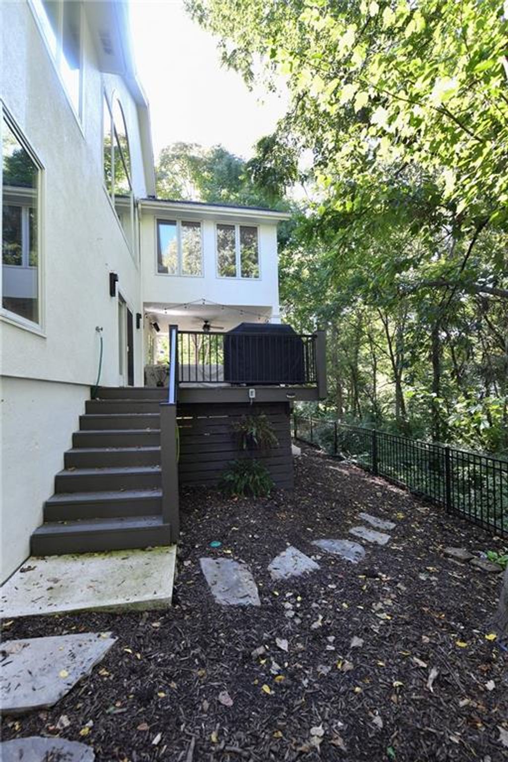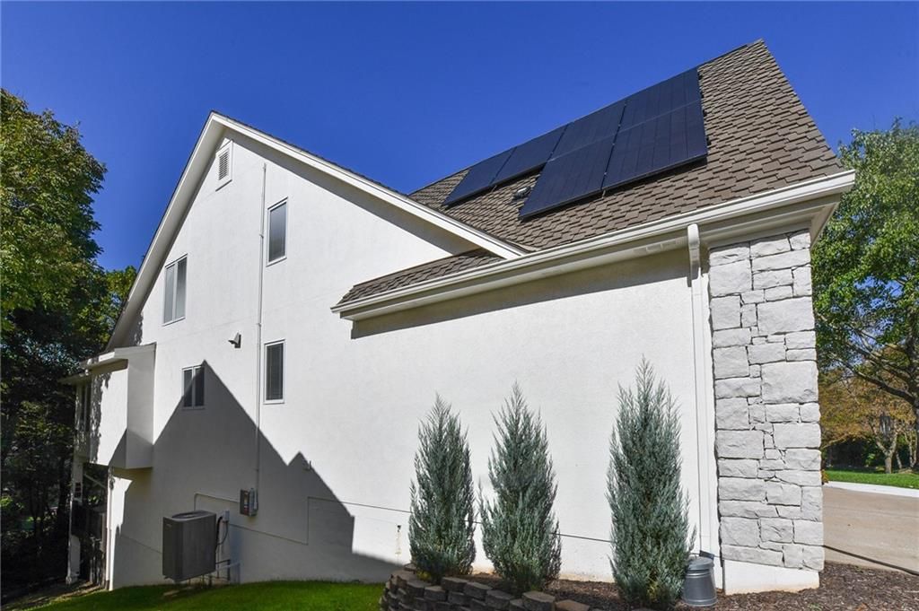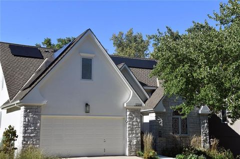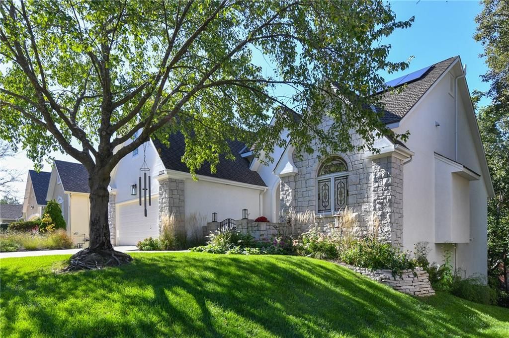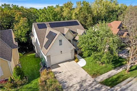 Enjoy single level maintenance provided living in the highly desirable south Kansas City Timber Trace community. Backing to mature trees and designed with both comfort and sophistication in mind, this 4-bed, 4-bath, 2-car garage home has been meticulously improved with quality finishes and thoughtful design. Features include a modern efficient floor plan, all season sunroom, generous eat-in kitchen with separate dining area, expansive deck with infrared heater and solar panels ensuring low energy bills for years to come. The current owners have made significant investments that include new HVAC, exterior paint, sidewalks, water heater, dining/sunroom lighting and attic insulation. However, the real gem of this home is the re-imagined primary suite that features a zero-entry steam shower, Kohler Sunstruck soaking tub, Kohler auto-flush bidet with heated seat, quartz-topped vanities, lighted mirrors, sconces, heated towel bar and custom duel closets with built-ins cabinets brings the spa experience to your new home. This house must be seen to be appreciated. Reasonable HOA fees include lawncare and snow removal.