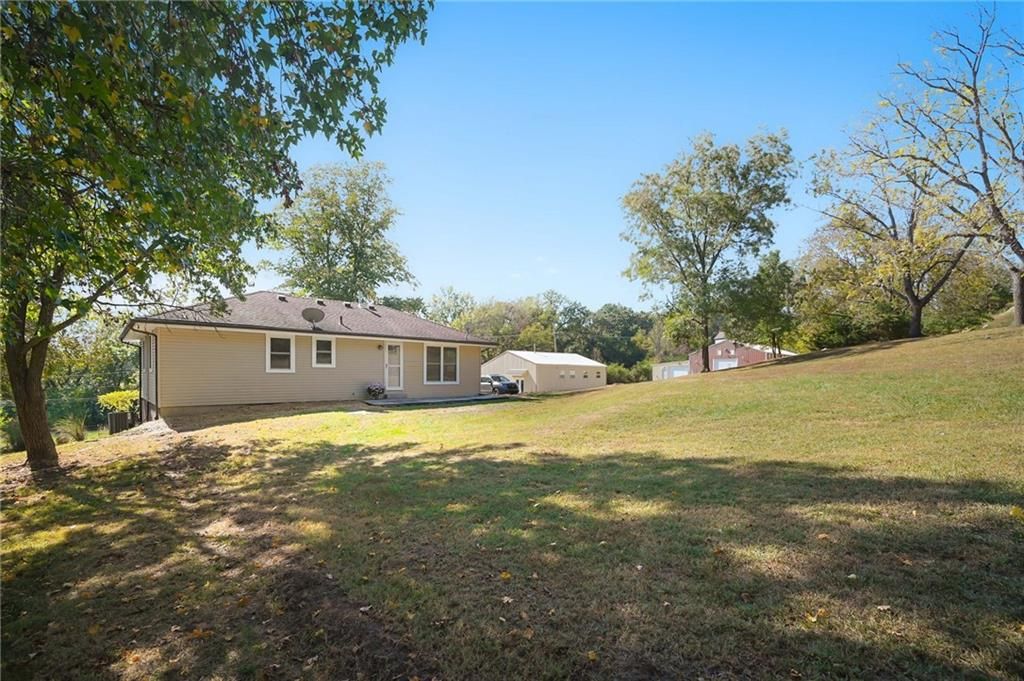 Looking for land in the city? Plenty of space for hobbies, multi-generational living, projects and investments? This Cherry St property in South KC has a wealth of opportunity for you! Beautiful wooded land with rocky outcroppings, a charming 3 bed, 2 bath house, and 2 giant outbuildings mean you can make those dreams come true. The updated home has a finished basement, new paint throughout, new carpet and spectacular views. It is tucked away in a quiet neighborhood, close to Martin City. Outbuilding 1 (the eastern bldg) has 1900 sq ft, 4 offices, storage space and an apartment with a private entrance. Outbuilding 2 (to the west) has 3800 sq ft, office space, a restroom, large garage doors and oodles of features. In these outbuildings you will find: - Insulated, 125k propane heater, and 24k 240v wall a/c unit - Plumbed throughout with 3/4 and 1/2 shop air line, wired for your air compressor - 2 Utility sinks with hot and cold water - 36" Attic fan and three 12" wall shutter fans for ventilation - Bend Pak 12.5k lb free standing vehicle hoist, with new lift cylinders and hydraulic hoses - Wired for second vehicle hoist - Large number of 120v electrical outlets and 240v 30 amp outlets - Shop space is well lit, with easily serviceable fixtures - 30+ feet of heavy duty built-in shop benches, lined with 16 gauge and 11 gauge sheet metal Don't miss your chance to build your future on Cherry St, book your showing today!