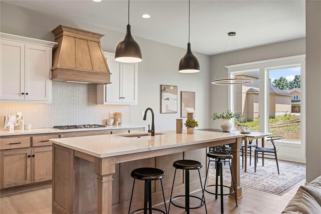 Welcome to the Ryder Expanded by Lamendola Custom Homes located on Lot 64, proudly situated on Lot 51. This stunning 1.5-story residence features 5 bedrooms and 3.5 bathrooms, thoughtfully designed for comfort, style, and functionality. The main level offers a spacious primary suite complete with a luxurious ensuite bathroom, an additional bedroom that can easily serve as a home office, a well-appointed laundry room with a sink and ample storage, and a beautifully designed kitchen with a generous walk-in pantry. The great room includes a stylish dry bar with floating shelves - perfect for effortless entertaining. Upstairs, a versatile loft provides additional living space, complemented by two bedrooms connected by a Jack-and-Jill bathroom, plus a third bedroom with its own private ensuite. With exceptional craftsmanship and an inviting layout, this home offers everything you need and more - a truly wonderful place to call home. Close to schools, highways, shops and restaurants! Models Open Daily, 11 am - 5pm, and Sunday, 12-5pm. Visit the sales office at 12411 W 183rd Terrace, Overland Park. THIS HOME IS ESTIMATED TO BE COMPLETED IN THE SPRING OF 2026.