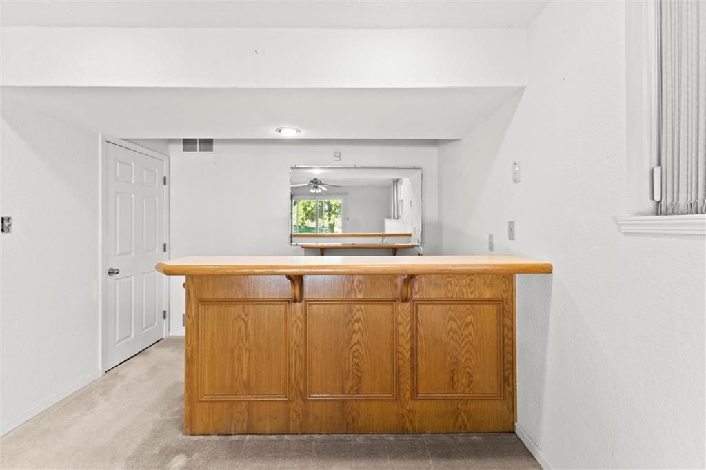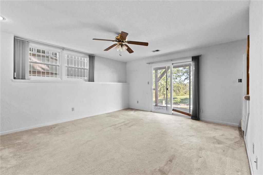 Maintenance free living at Teetering Rocks Golf Course. Eat-in kitchen with hardwood cabinets and custom built-ins. Stainless/black kitchen appliances stay with property. Living/dining room feature fireplace and level walk out deck with golf course views. Main level laundry room in hallway. Main level primary bedroom features ensuite bath and large walk-in closet. Endless possibilities on lower level featuring second bedroom, full bath, large walk-in closet, recreation room with wet bar, walkout patio and storage room. Low HOA dues cover lawn mowing, fertilizing, watering, leaf removal, snow removal and exterior painting. This neighborhood has an awesome entertainment committee that organizes driveway parties, parades, outdoor games in the common areas, ladies and men's lunches, monthly dine-outs and many other activities if interested. Close to shopping, dining, entertainment,hospitols and highway access.
