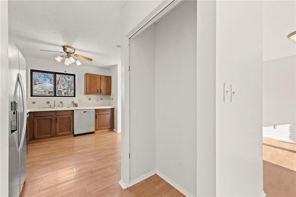 RARE Find-maintenance provided 3 bedroom/2 bath ranch plan for one level living.Pull right into your garage and enter into your home. Large living room with fireplace leads into dining area. Kitchen has all new stainless steel appliances including a refrigerator and plenty of counter space. Space for a pantry. The primary bedroom has a large closet and connects to a full bath. There are 2 more light filled bedrooms that share the hall bath. Laundry closet with washer and dryer on the main floor The sliding door leads to a cozy, private, fenced patio area.Plenty of storage in the unfinished basement. Newer roof, brand new appliances, gutters and electrical panel. The Quivira Falls community is an active place to live with tennis courts, a pool, walking tails, community center and playground.