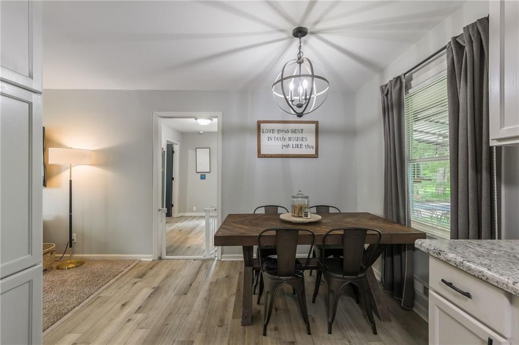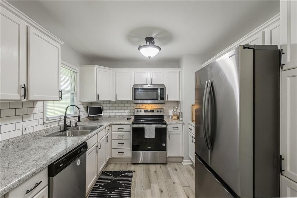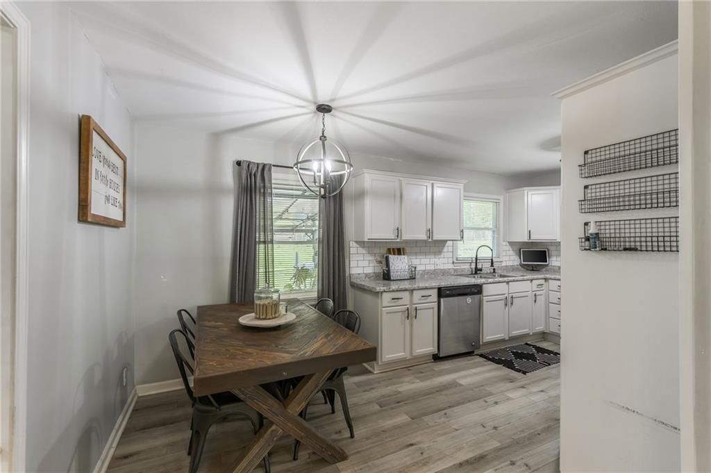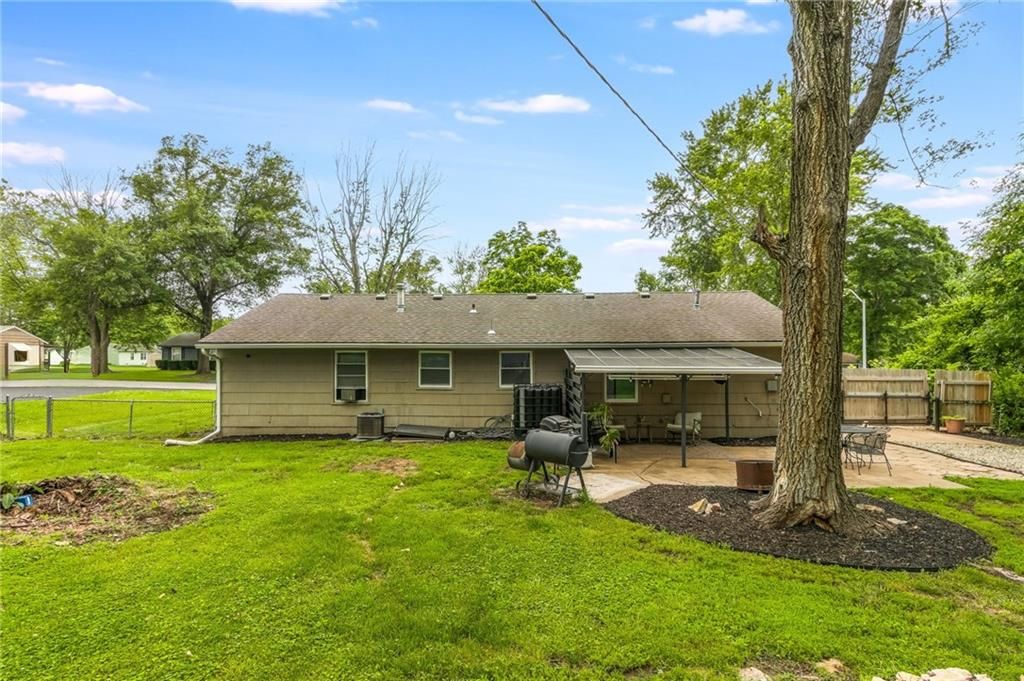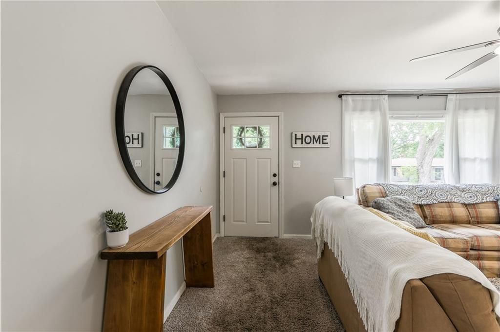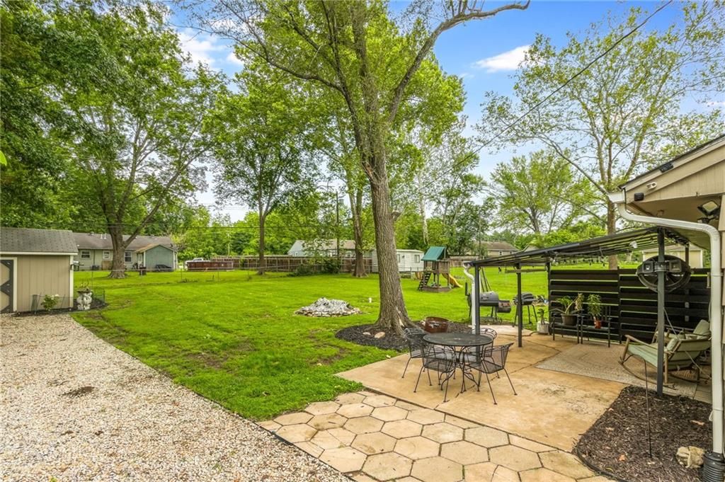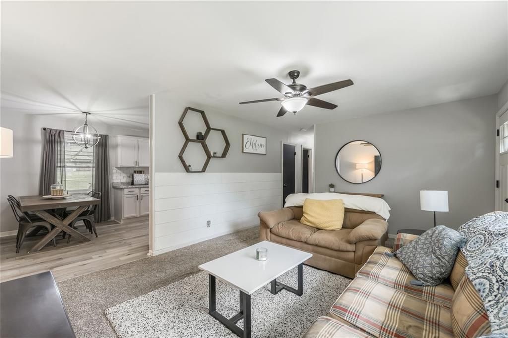 Priced below appraised value!! Looking for a move-in ready ranch that feels like home the minute you pull up? This well-maintained 4 bed, 2 bath home is fully updated and packed with charm. Step inside from the concrete driveway into a handy mudroom that doubles as your laundry space - with a full bathroom right there for added convenience. The fourth bedroom is tucked just off the mudroom and could easily flex as an office, toy room, or cozy guest space. Throughout the home, you'll find a great mix of durable LVP flooring with plush carpet in the living room and bedrooms to keep things cozy. The kitchen features crisp white painted cabinets, subway tile backsplash, stainless steel appliances, and space for a big dining table - plus a stylish shiplap accent wall that adds just the right touch. From the kitchen window, take in the view of your large, fully fenced backyard, complete with a covered patio and a shed perfect for garden tools or extra storage. Down the hall, the master bedroom features its own standout accent wall, and two more comfortable bedrooms offer plenty of space for family, guests, or hobbies. Located just outside the hustle of the city but close enough to enjoy all the conveniences, this home offers the perfect balance of peace and accessibility.