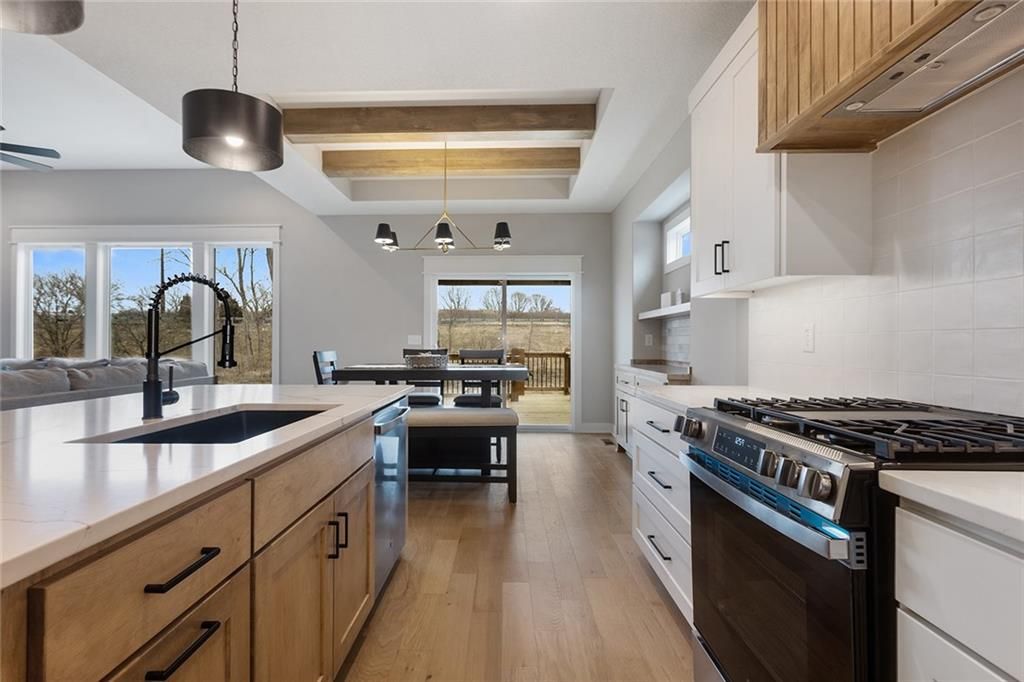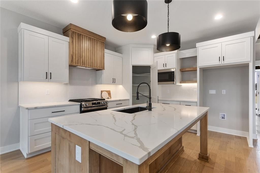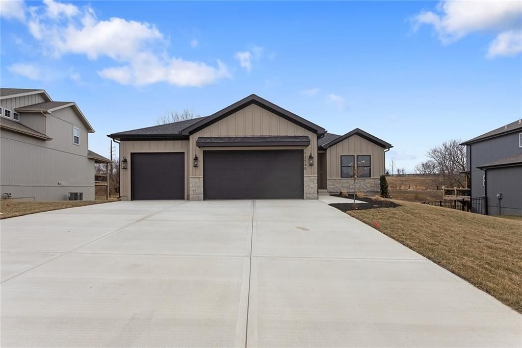 Beautiful Reverse 1.5 Story on a walkout lot backing to green space! McBee Custom Homes' Richline II features large living space with fireplace, open to kitchen and dining for easy entertaining. Rich custom finishes with multiple vault box ceilings, drop zone, and stone countertops in every bathroom and kitchen. Main level Primary Bedroom with large closet conveniently connects to laundry room with COUNTER SPACE. Second living space on bright and sunny lower level to expand the party, and 3 bedrooms or hobby spaces in addition to storage space. Garage that actually fits the truck!