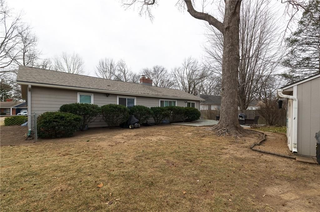 10K price drop! Seller says BRING ME AN OFFER! Ideally located, this charming ranch offers convenient one-level living just minutes from Avila College, Town Center, fantastic restaurants, highways and shopping. The updated kitchen features white cabinetry, a built-in oven, drop-in range, granite countertops, and beautiful wood flooring that flows seamlessly throughout the home. Two spacious living rooms- each highlighted by a classic brick fireplace- create warm and inviting gathering spaces. The home also offers a formal dining room plus a cozy breakfast room off the kitchen. Three spacious bedrooms feature wood flooring, ceiling fans and two-inch blinds that allow abundant natural light. Two tiled bathrooms with built-ins- one with a shower/tub combination and a private primary bath with a walk-in shower. Situated on a large corner lot, the outdoor space boasts a generous patio, a quaint storage shed, and mature trees providing privacy. The full basement offers a blank slate, ready to be finished to suit your needs. This one won't last long!
