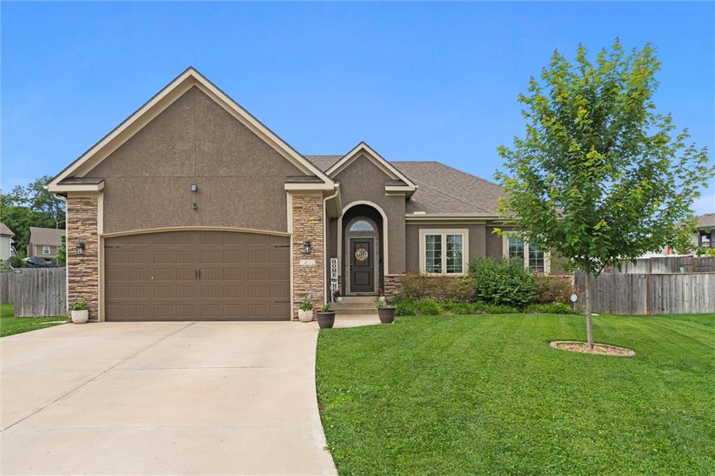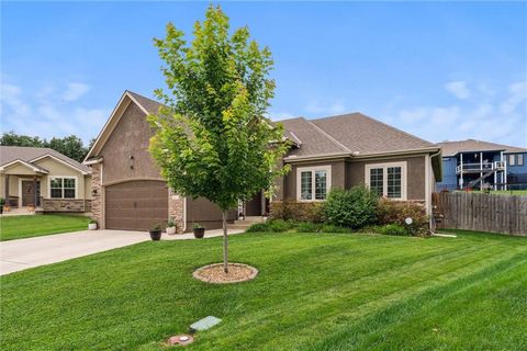 Motivated sellers! Welcome to this beautifully maintained true ranch home, offering 2,637 sq ft of finished living space in the desirable Woodbury subdivision - complete with access to two neighborhood pools and tucked away on a quiet cul-de-sac in the highly rated Grain Valley School District. This 5-bedroom, 3-bathroom gem features a main floor master suite and two additional bedrooms on the main level, along with a main floor laundry for ultimate convenience. You'll love the real hardwood floors, vaulted ceilings, and open-concept layout that flows from the cozy living room with a gas fireplace into a chef-worthy kitchen. The kitchen is designed to impress with granite countertops, a large center island, a walk-in pantry and new light fixtures - all just 6 years old, including the roof, HVAC system and water heater. Downstairs, the finished basement adds even more living space with two large bedrooms, tons of storage, additional living room or space for a home office, gym or playroom - whatever suits your lifestyle. Outside, enjoy the covered patio and fully fenced yard with a privacy fence - perfect for entertaining or relaxing evenings at home. The attached 2-car garage adds extra convenience and storage. Located within walking distance to top-rated Prairie Branch Elementary and North Grain Valley Middle School, and just minutes from parks, shops and highway access. This home is clean, move-in ready and truly has it all. Schedule your showing today - homes like this in Woodbury don't last long!