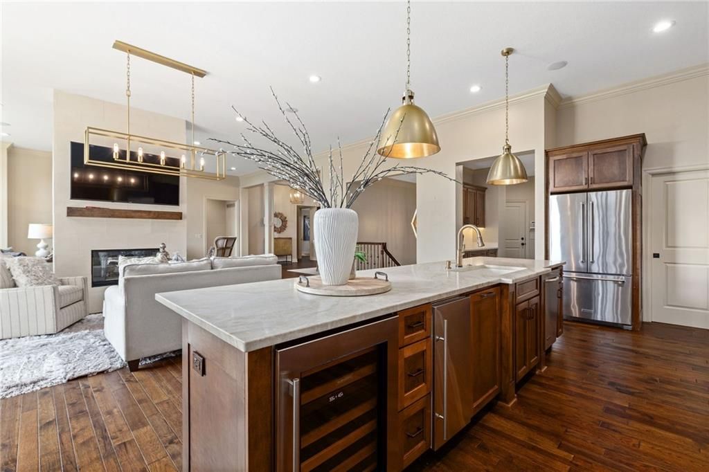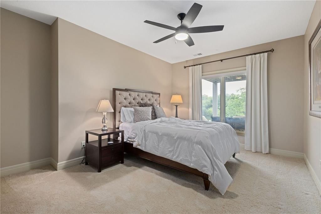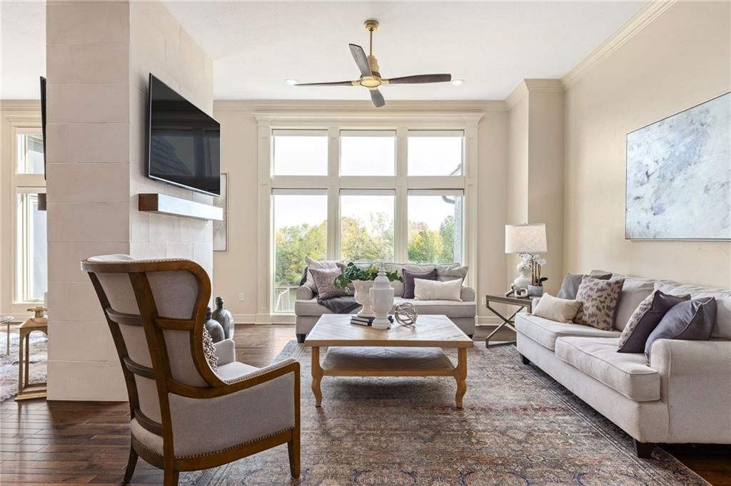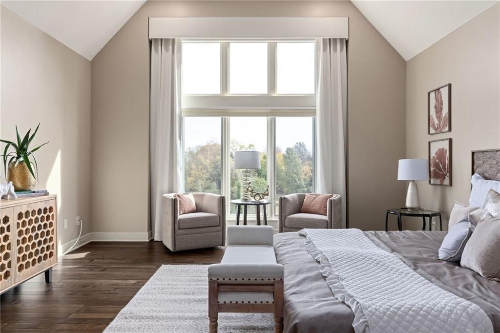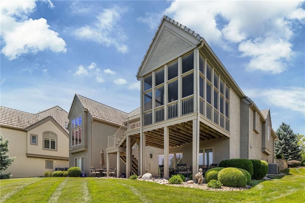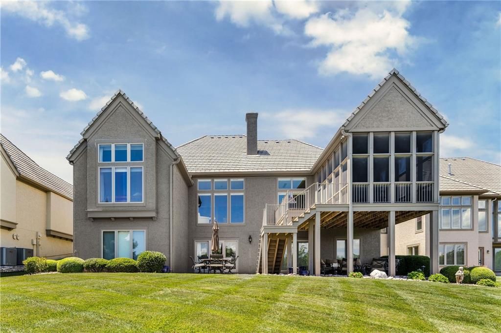 Enjoy the privacy of a gated golf community in this spacious villa overlooking the 4th green of the famed Nicklaus golf course. You'll love the amazing views of the course, fairway and pond from the screened in deck or two patios. The wide open floorplan greets you right inside the door as the front room, great room, dining room and kitchen all flow seamlessly together. Windows all along the back of the home offer a panoramic view of the course and have automatic blinds. A see-through fireplace from great room to dining room creates a warm and elegant ambience, and beautiful new light fixtures in the great room, dining room and kitchen add sophistication. Convenient telescoping TV mounts in Hearth Room and Living Room. The large kitchen is ready to create your culinary masterpieces - featuring a huge island with seating for six, Viking gas range, double ovens, ice maker, wine chiller, and a walk-in pantry custom designed for maximum organization and use of the space. A convenient coffee bar is a fun feature of this great kitchen which is perfect for entertaining or large family gatherings. Enjoy a spacious owner's suite with vaulted ceiling, wood floors a fantastic custom closet and luxurious bathroom. A private office at the front of the home which doubles as a 2nd bedroom on the main level, a half bath, and formal dining room complete the main level. The lower level offers tons of flexible space. Unwind in the comfort of the rec room - ideal for leisure activities with a wet bar and areas for game tables and t.v. viewing. Two spacious bedrooms with ensuite baths, and a laundry room with ample cabinetry complete the lower level. An elevator ensures ease of access to both levels of this magnificent home. Situated on a serene cul-de-sac, this home offers luxury and exclusivity plus a convenient location near the 135th Street corridor and highway access. Lionsgate is a vibrant community with fantastic amenities and social opportunities!