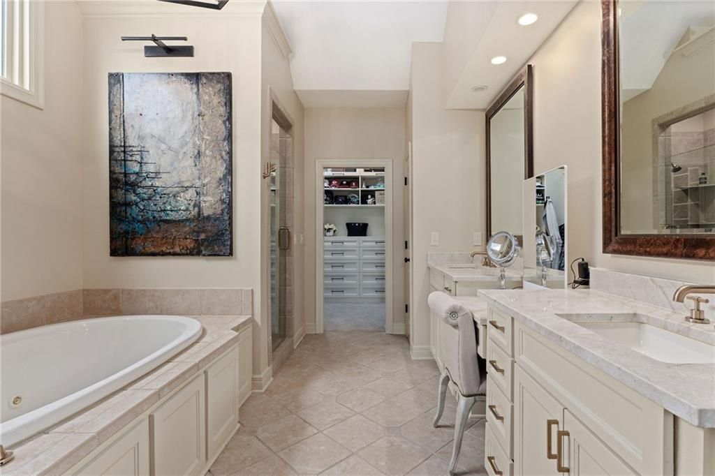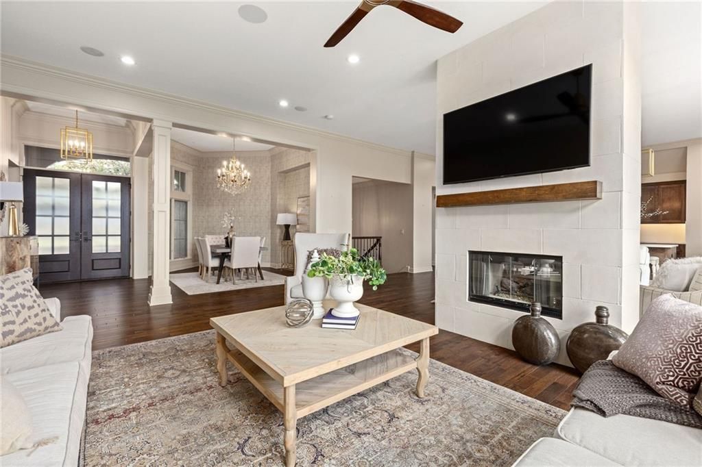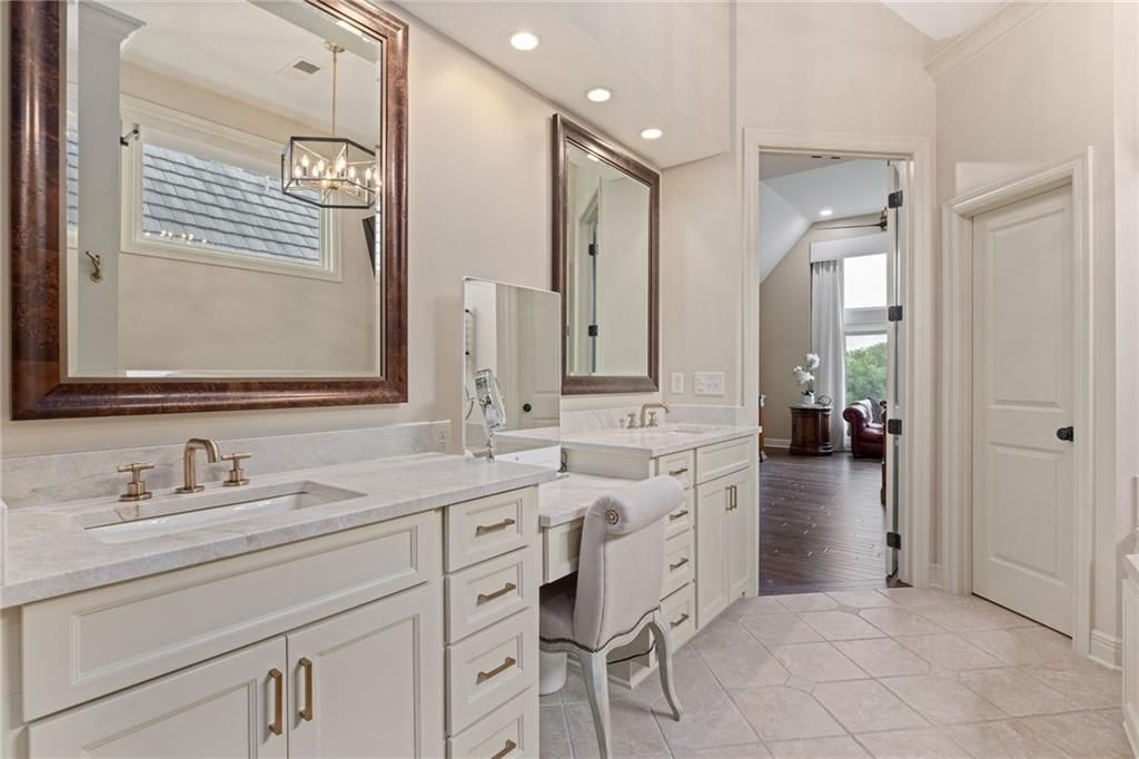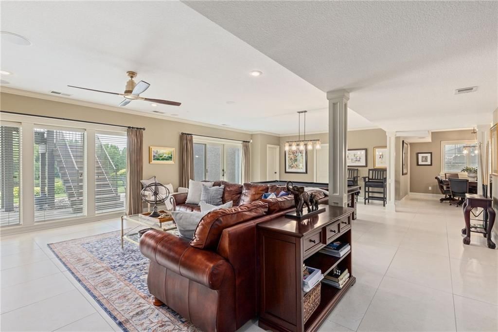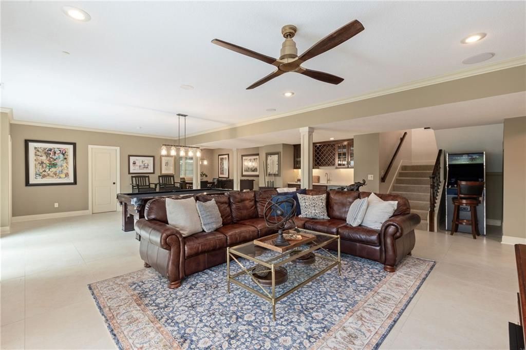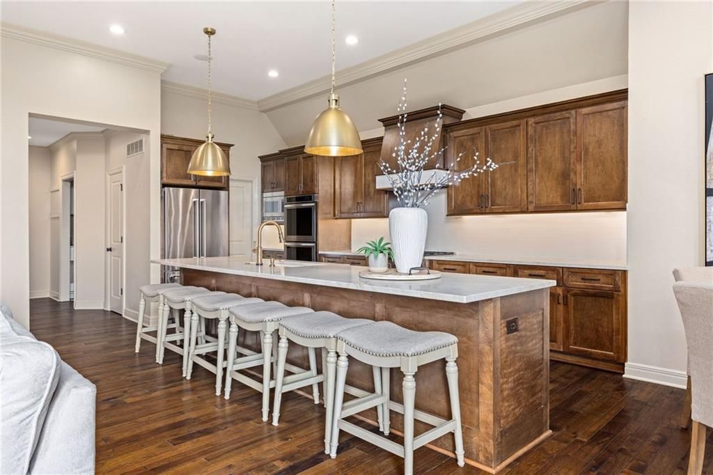 Enjoy the privacy of a gated golf community in this spacious villa overlooking the 4th green of the famed Nicklaus golf course. You'll love the amazing views of the course, fairway and pond from the screened in deck or two patios. The wide open floorplan greets you right inside the door as the front room, great room, dining room and kitchen all flow seamlessly together. Windows all along the back of the home offer a panoramic view of the course and have automatic blinds. A see-through fireplace from great room to dining room creates a warm and elegant ambience, and beautiful new light fixtures in the great room, dining room and kitchen add sophistication. Convenient telescoping TV mounts in Hearth Room and Living Room. The large kitchen is ready to create your culinary masterpieces - featuring a huge island with seating for six, Viking gas range, double ovens, ice maker, wine chiller, and a walk-in pantry custom designed for maximum organization and use of the space. A convenient coffee bar is a fun feature of this great kitchen which is perfect for entertaining or large family gatherings. Enjoy a spacious owner's suite with vaulted ceiling, wood floors a fantastic custom closet and luxurious bathroom. A private office at the front of the home which doubles as a 2nd bedroom on the main level, a half bath, and formal dining room complete the main level. The lower level offers tons of flexible space. Unwind in the comfort of the rec room - ideal for leisure activities with a wet bar and areas for game tables and t.v. viewing. Two spacious bedrooms with ensuite baths, and a laundry room with ample cabinetry complete the lower level. An elevator ensures ease of access to both levels of this magnificent home. Situated on a serene cul-de-sac, this home offers luxury and exclusivity plus a convenient location near the 135th Street corridor and highway access. Lionsgate is a vibrant community with fantastic amenities and social opportunities!