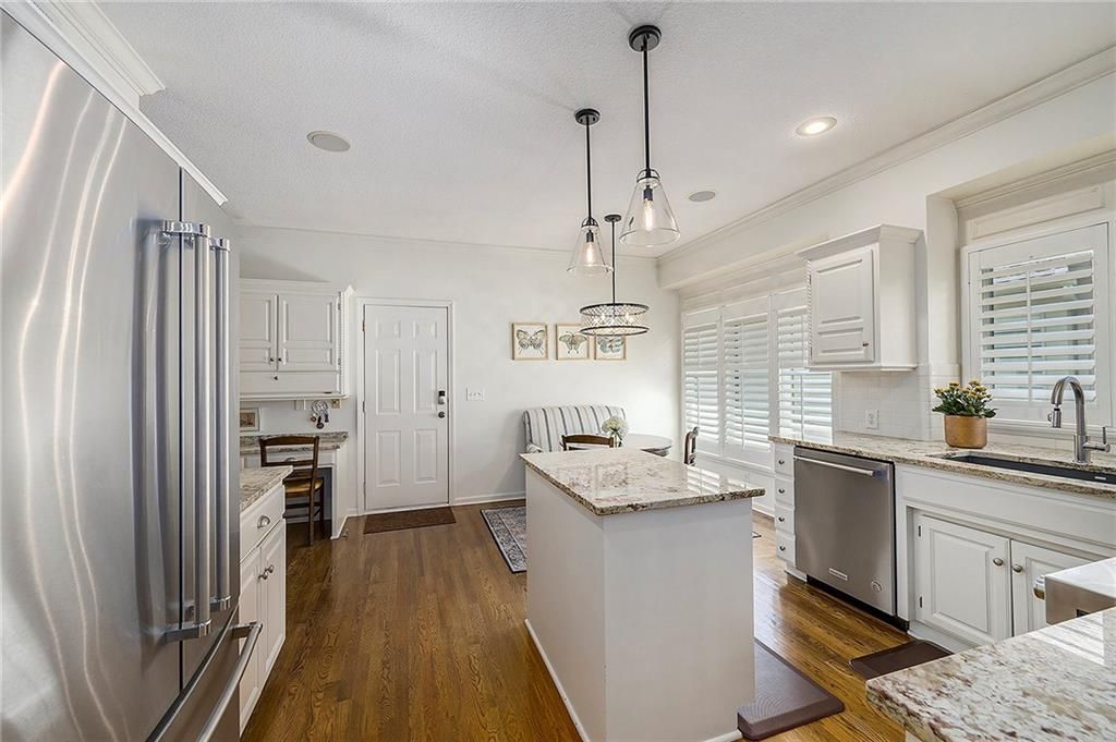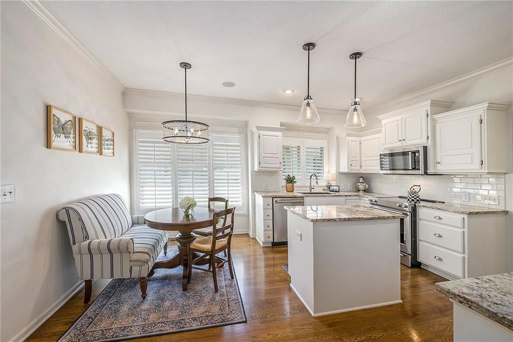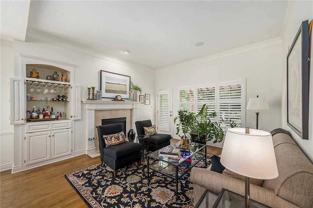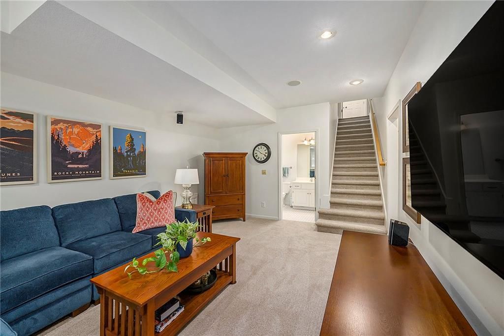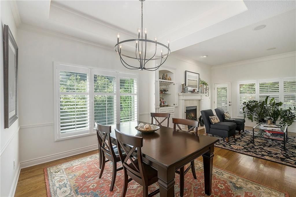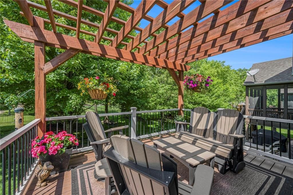 Sun-drenched and stylish, The Bentley in Fieldstone Patio Villas, a Tom French community, welcomes you home! This desirable end-unit villa boasts abundant windows with elegant plantation shutters, filling the kitchen, dining, and living spaces with cheerful southern sunlight. Beautiful hardwood floors enhance the d cor throughout the main level. Gather in the inviting island kitchen with casual dining area and cozy hearth room featuring a charming fireplace. The formal dining and living rooms include a tasteful built-in bar and second fireplace, perfect for entertaining. Retreat to the finished basement with family room, 4th bedroom and 3rd full bathroom. Step outside onto the relaxing deck, complete with pergola and shaded by mature trees - your perfect retreat!