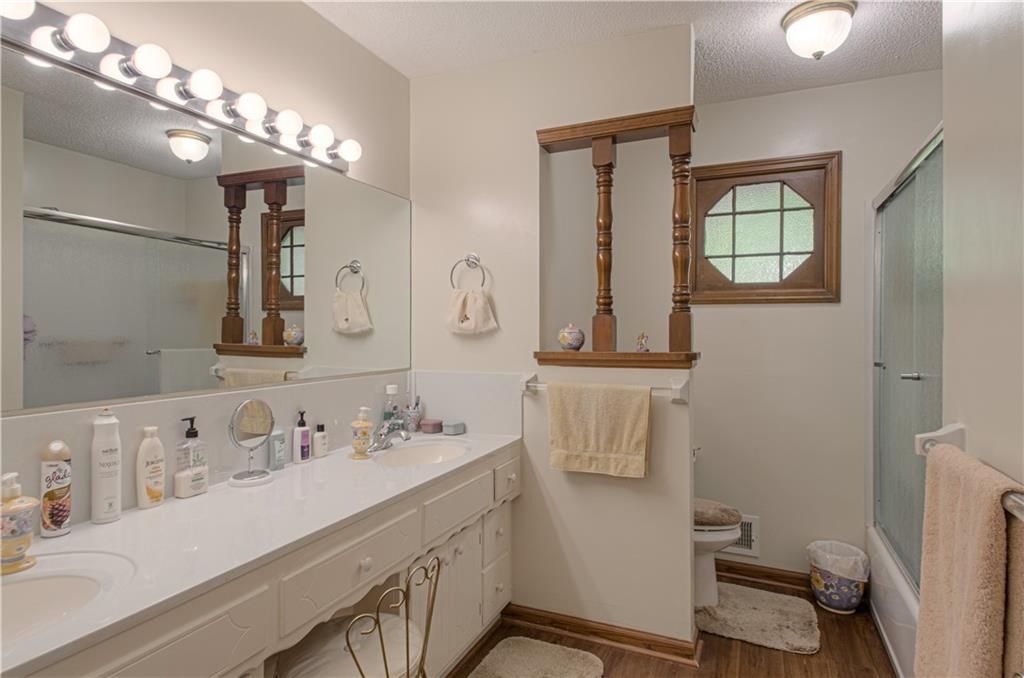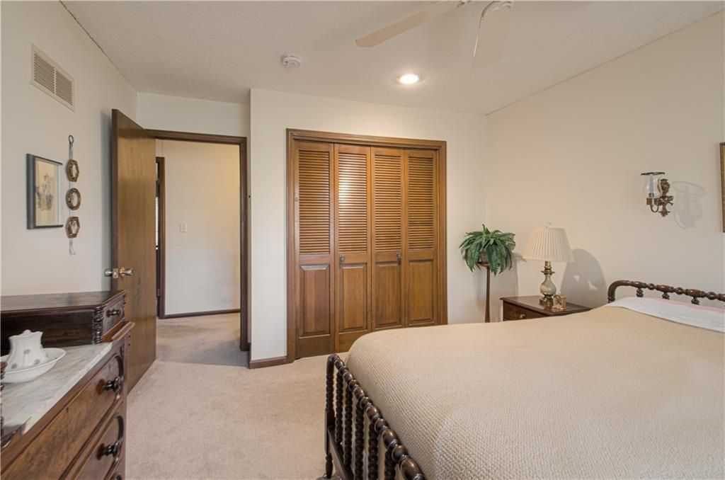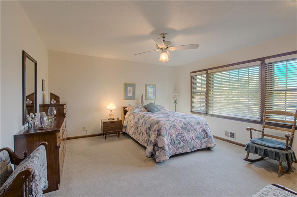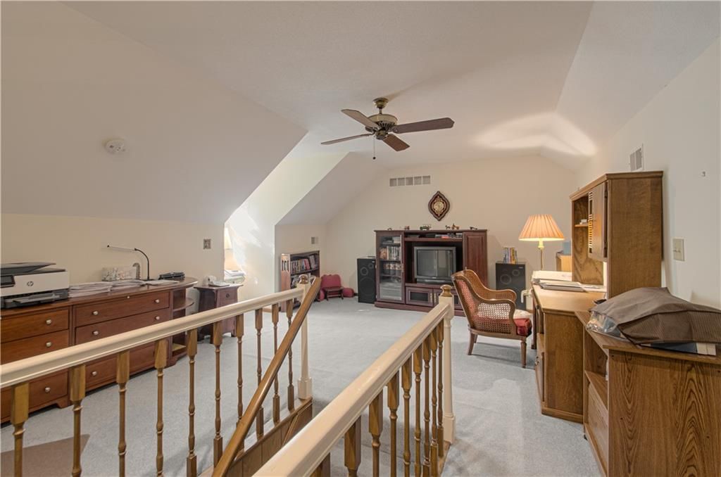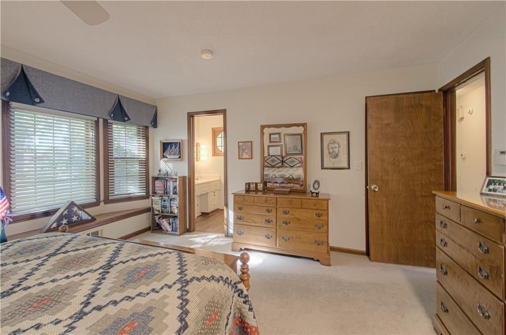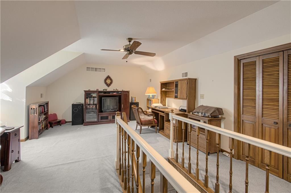 True ranch in highly sought-after Tomasha Village! This 4-bedroom, 3.5-bath home offers effortless main-level living with a formal living/dining space, plus a warm and inviting family room featuring a gorgeous brick fireplace. Main-floor laundry and a side-entry two-car garage add convenience. The upper level provides a versatile bonus room - ideal as a spacious home office with built-in credenza or a 4th bedroom - and includes its own full bath. Full basement offers excellent storage or future finishing options. City has dedicated approximately half of the closed street west of the driveway to this property, adding extra space, privacy, and value. A rare find in a fantastic location!