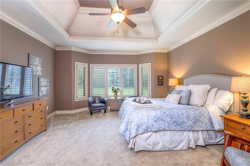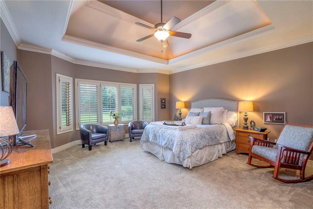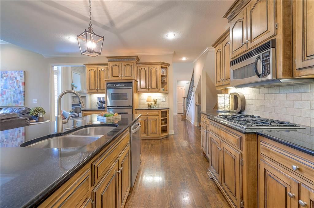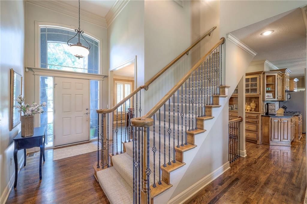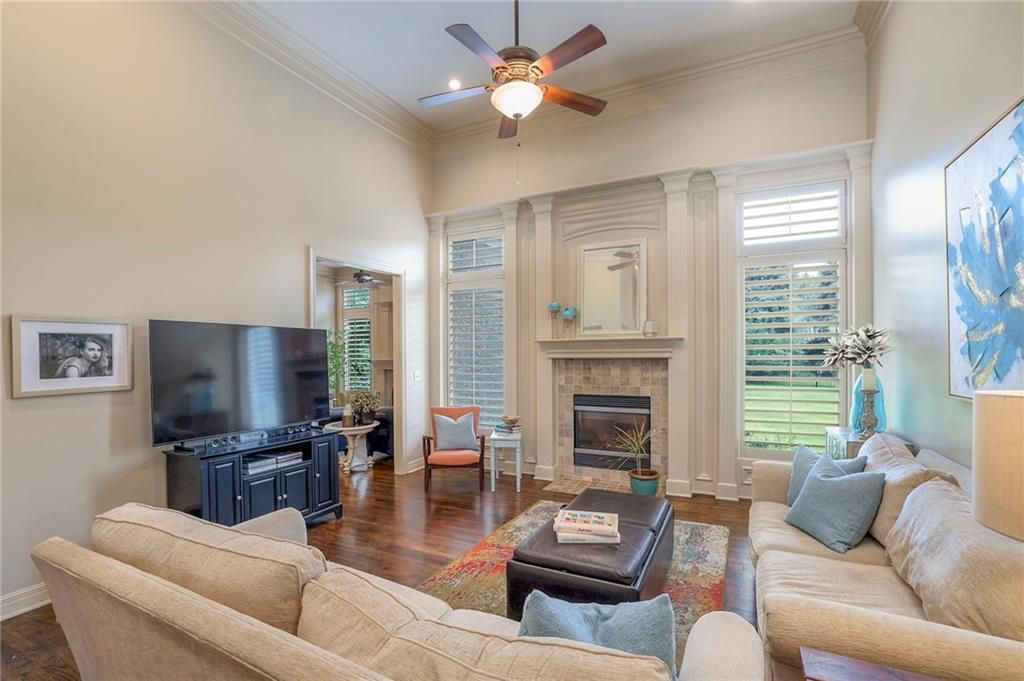 Price Adjustment, come see this beautiful Whitehorse 1.5 story, where casual elegance meets luxury living. This spacious home features 5 bedrooms and 4.5 bathrooms, including a fabulous primary suite. Upon entry, you will be captivated by the beauty of the hardwood floors, newly carpeted stairs and intricate crown molding. The main level is adorned with plantation shutters creating a warm and inviting atmosphere. The kitchen is a chef's dream, with a large island, granite countertops, stainless steel appliances and a spacious eat-in area. The hearth is complete with a stunning fireplace bookend by floor-to-ceiling windows. Relax in the screened-in porch, complete with remote control shades, and enjoy the best lot in the subdivision, outlined by iron fence. The second floor hosts 3 bedrooms, each with walk-in closets, 2 bathrooms and a spacious loft area with built-ins for all your gaming equipment. The newly painted basement is a perfect entertainment space, boasting exquisite stonework, a full kitchen, bar and a cozy stone fireplace. With a workout room, 5th bedroom, full bath, and 2 storage spaces this home has it all. Come and experience the ultimate in relaxed luxury.
