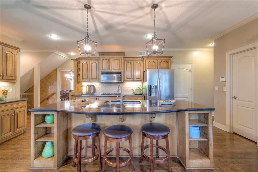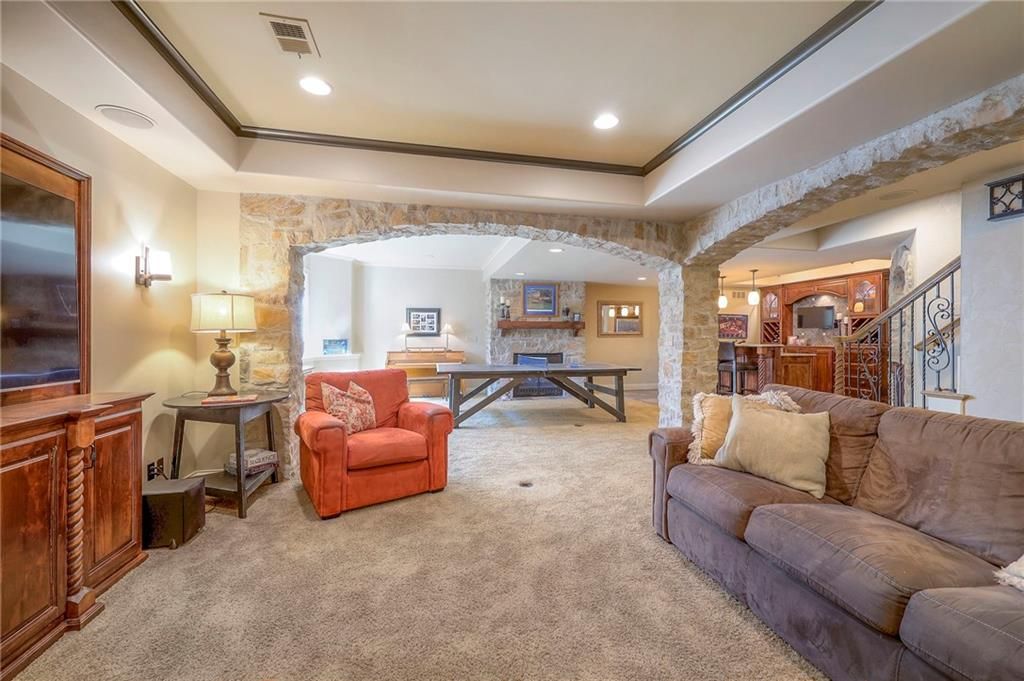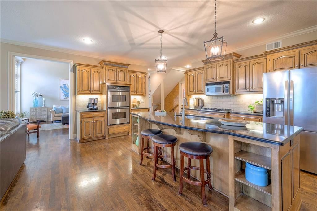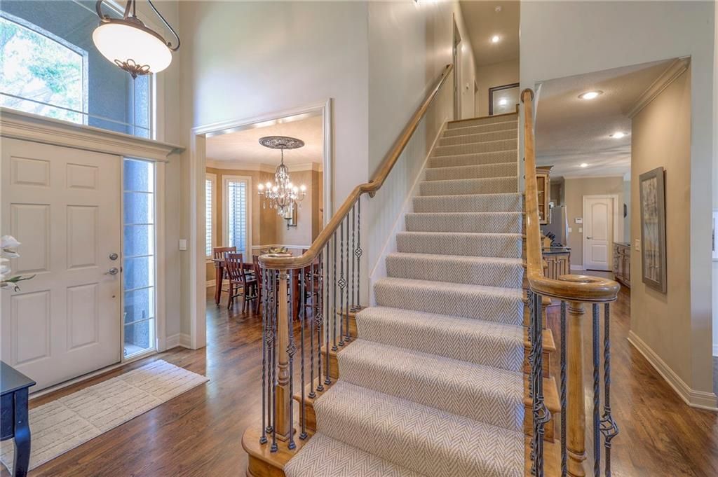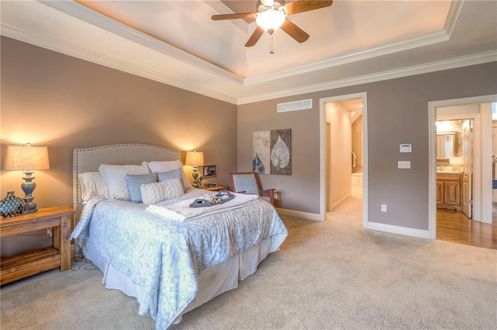 Price Adjustment, come see this beautiful Whitehorse 1.5 story, where casual elegance meets luxury living. This spacious home features 5 bedrooms and 4.5 bathrooms, including a fabulous primary suite. Upon entry, you will be captivated by the beauty of the hardwood floors, newly carpeted stairs and intricate crown molding. The main level is adorned with plantation shutters creating a warm and inviting atmosphere. The kitchen is a chef's dream, with a large island, granite countertops, stainless steel appliances and a spacious eat-in area. The hearth is complete with a stunning fireplace bookend by floor-to-ceiling windows. Relax in the screened-in porch, complete with remote control shades, and enjoy the best lot in the subdivision, outlined by iron fence. The second floor hosts 3 bedrooms, each with walk-in closets, 2 bathrooms and a spacious loft area with built-ins for all your gaming equipment. The newly painted basement is a perfect entertainment space, boasting exquisite stonework, a full kitchen, bar and a cozy stone fireplace. With a workout room, 5th bedroom, full bath, and 2 storage spaces this home has it all. Come and experience the ultimate in relaxed luxury.