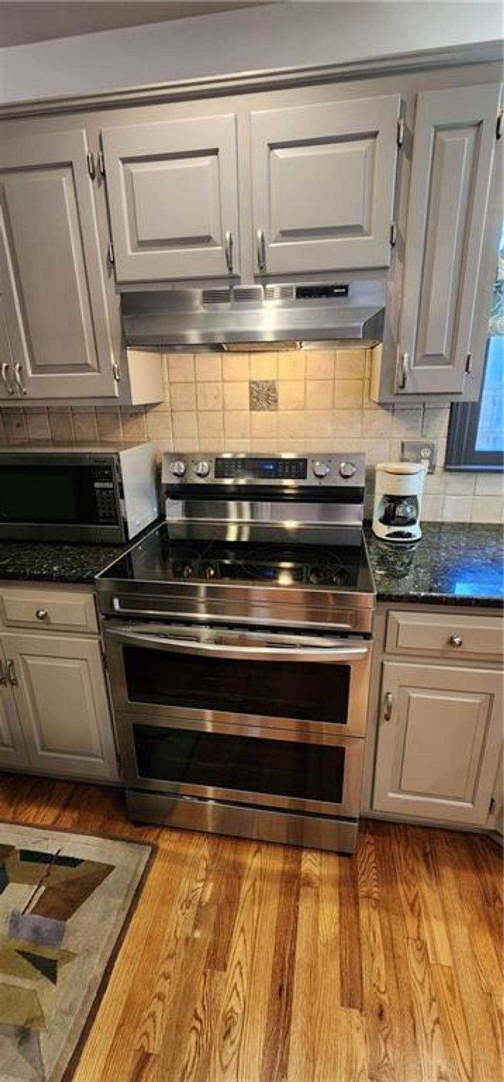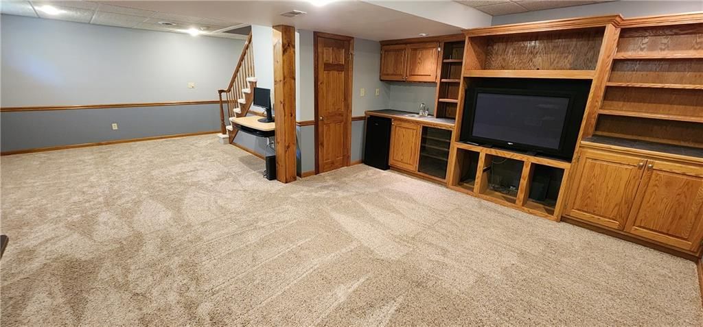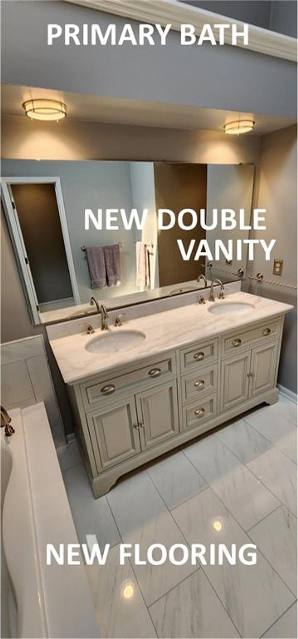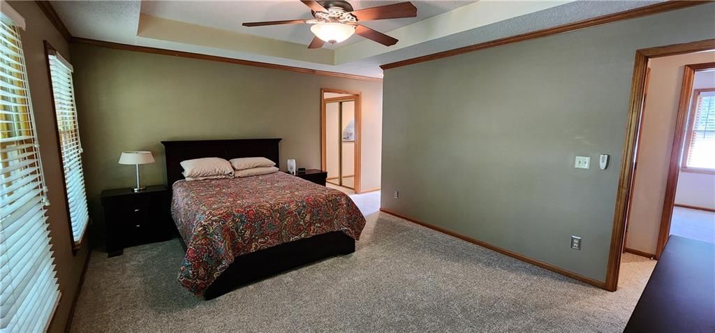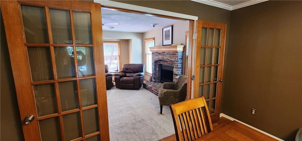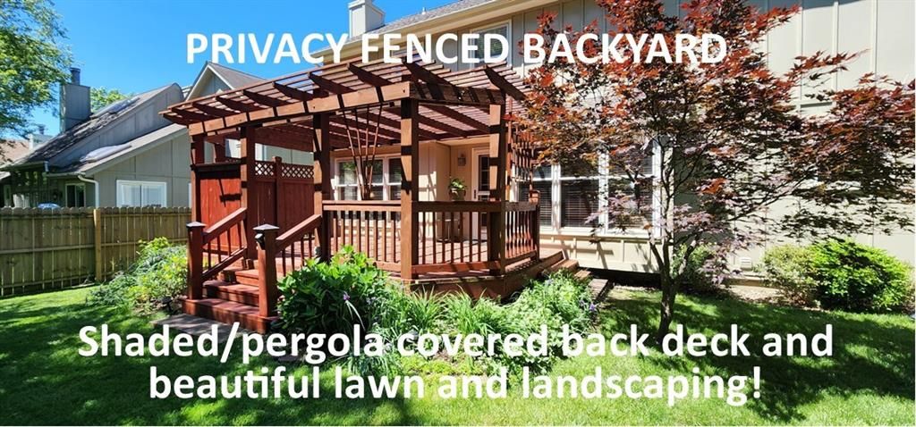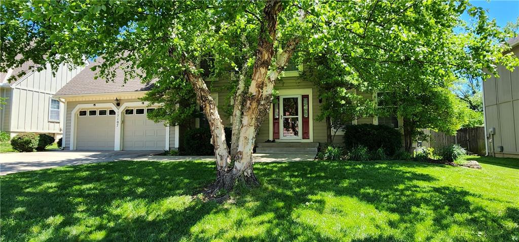 SUPER CLEAN,very well maintained,cheery & light-filled HOME with neutral,earth-tone paint colors & beautiful timeless hardwoods! Room to spread out in this spacious center hall Colonial floorplan. Open living spaces from the kitchen to breakfast area to family room. The Kitchen is a chef's delight with beautiful granite counters, painted cabinets, tile backsplash, stainless appliances, and a double oven. Laundry room is conveniently located off the kitchen. TWO front flex rooms for formal living/dining/office/playroom/craft room/etc. Spacious primary suite has an impressive private ensuite bathroom with vaulted ceiling and skylight which lets in warm natural lighting and brightens the space. The primary bath has just been upgraded with new tile flooring, a new double vanity, and the new shower sparkles with brand new shower doors! Oversized jetted bathtub is the ultimate for relaxing at the end of a long day! And to top it all off, there is closet space galore in the primary suite: a double sliding full mirror door closet, TWO walk-in closets and a bonus room that is approx 20 feet long that could be used as a HUGE walk-in closet/glam room/sitting room/exercise room/office/craft room/etc. Brand new carpet in main level family room, stairs to 2nd floor and bedrooms! Finished lower level with built-in entertainment area, wet-bar and beverage fridge and still plenty of unfinished space for storage. Locking closet under the stairs for storage. A storybook brick pathway leads around the side of the house to the beautifully landscaped, privacy fenced backyard with the trellis covered back deck that is an entertainer's dream! Brick patio off the pedestrian door from the garage to the backyard! Storage shelves/cabinets in garage to keep the space clean and tidy! Hardie siding on south side of home. Radon mitigation system already in place with new fan 2024. Blue Valley Schools! Close highway access (but not too close).Be sure to check out the attached Virtual Tour.