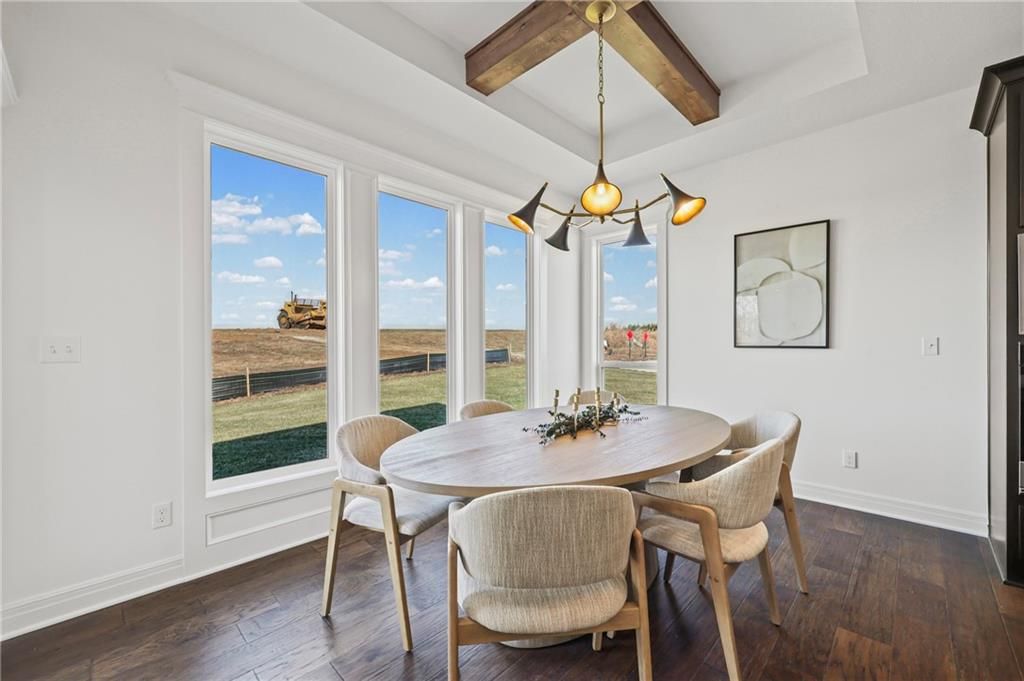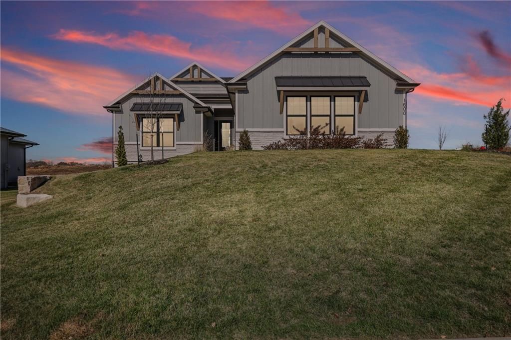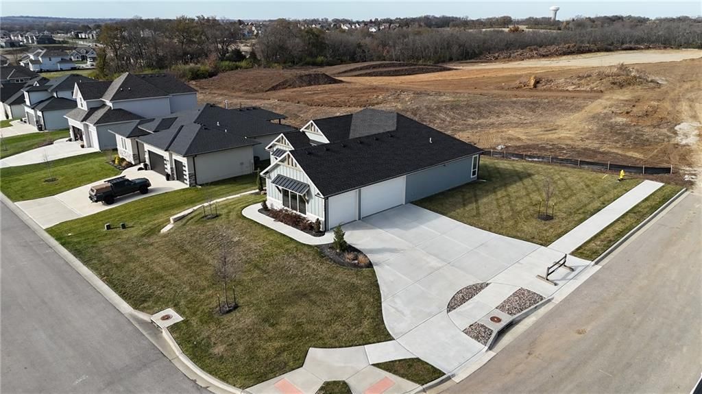 Stunning new construction home offering award-winning design, ADA compliant zero-entry access & an unbeatable location! Set within the highly acclaimed Lee's Summit School District, the home is just steps from the neighborhood elementary school & minutes from Lee's Summit West High School. Daily commuting is effortless w/fast highway access to Downtown Kansas City, Lee's Summit amenities & Johnson County, KS. Built by Dreams & Design Building, a regionally recognized, multi-HBA Award-Winning builder, this residence showcases one of its most sought-after floor plans known for its functional layout, beautiful architectural styling, & meticulous craftsmanship. Property presents w/ fantastic curb appeal: a fresh, modern farmhouse palette w/ light siding, sharp rooflines, black framed front window, stone accents & carefully designed landscaping. Driveway & walkway lead to a true ZERO-ENTRY entrance, providing rare ADA compliant main-level access & step-free living. Inside, the home makes an unforgettable first impression. The foyer opens into a bright, airy interior w/soaring ceilings, rich hardwood floors & an open railing staircase. Natural light floods the family room through expansive picture windows flanking the back wall, & a floor-to-ceiling stone fireplace w/custom built-ins grounds the room to create a comfortable gathering area. The space seamlessly flows into the kitchen & dining areas - perfect for entertaining or relaxing. Every detail feels intentional, modern & warm. An Energy Star 3.1 rating ensures this home is engineered for maximum efficiency, improved comfort & lower utility costs, all while maintaining a high-end feel. The lower level features an expansive rec room w/impressive floor to ceiling fireplace & wet bar w/large island, perfect for game day gatherings! Rounding out the lower level, 2 more bedrooms w/jack-and-jill bath, a private half bath for guests (w/urinal for the guys!) & a DARLING play area w/ Dutch door under the stairs for the kiddos!