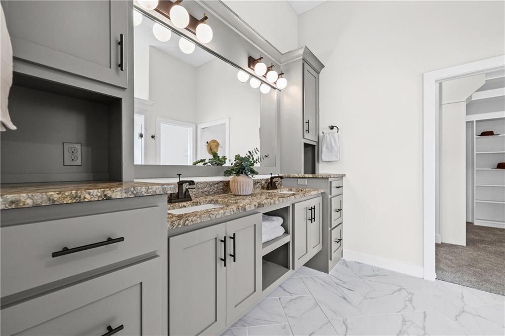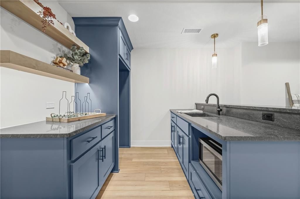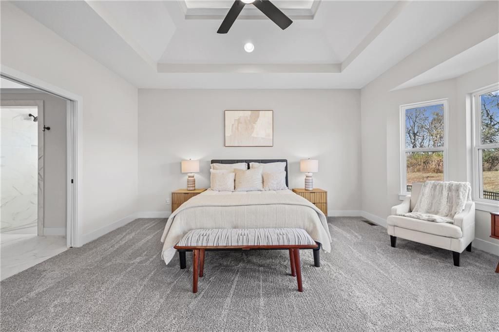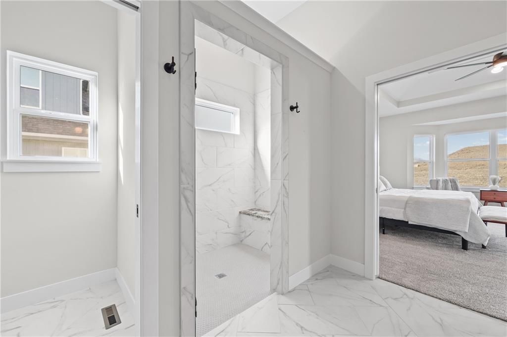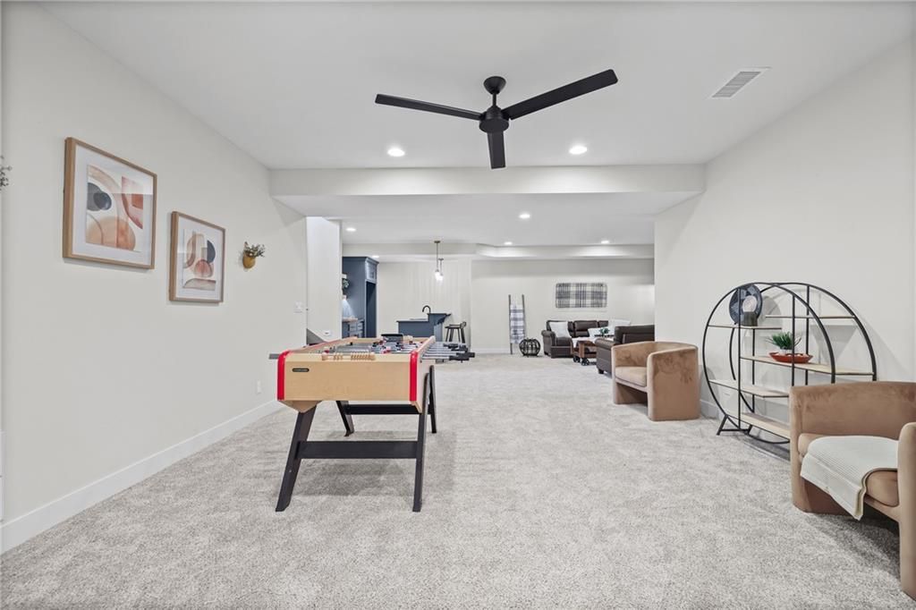 Move-in ready, beautifully designed & built for long-term livability! This exceptional home offers high-end craftsmanship, thoughtful accessibility features & beautiful designer finishes throughout. Located in the highly rated Lee's Summit School District, it's just a short walk to the neighborhood elementary & only minutes from LSW High School! A rare find in today's market, this home offers true ZERO ENTRY access, providing step-free transitions inside for enhanced ADA accessibility, long-term comfort & effortless first floor living. An ENERGY STAR 3.1 rating delivers superior insulation, energy efficient windows & HVAC system=improved indoor comfort & lower utility bills! Outside: beautiful board & batten siding w/stone accents, cedar trusses & covered front entry. Inside: classic-modern design makes a striking first impression w/soaring ceilings, rich engineered wood floors & an open, airy layout. The foyer features a stunning wood-accent barrel ceiling & custom wall trim that sets an elevated tone. An impressive floor-to-ceiling stone fireplace graces the family room & a wall of windows drench the main level in natural light, contributing to the seamless flow into the kitchen & dining area. The designer kitchen is a true showstopper, featuring an oversized quartz island & premium custom cabinets that perfectly complement the wood accent range hood. A gas cooktop & stainless appliances=chef's delight, w/a walk-in pantry providing super storage space for grocery staples. The primary suite is a true retreat, featuring a spacious bedroom w/tray ceiling & large windows plus a spa-like bath w/dual vanities & an oversized walk-in tile shower. A large secondary bedroom, full bathroom, a pocket office & spacious laundry room round out the main floor. Downstairs, you'll find a large WOW FACTOR Rec Room w/floor to ceiling fireplace, a gaming area, wet bar, 2 additional spacious bedrooms serviced by a 3rd full bathroom & a 1/2 bath (with urinal!) - perfect for poker night!