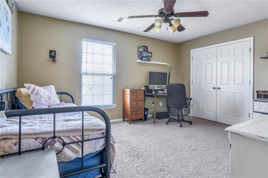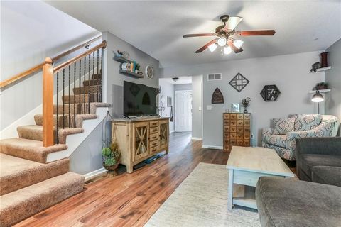 Why are you renting when this is available? Move in ready. Welcome to this beautifully well maintained two bedroom townhome just west of the Kansas Speedway. As you enter, ahead of you is a very comfortable living room with beautiful wood floors. Adjoining the living room is a very functional, eat-in kitchen. The kitchen area has abundant cabinet and counter space for your meal preparation. The eat-in kitchen area also has a sliding door to the back patio area. Upstairs, the primary bedroom is spacious and has a generous, walk-in closet along with its own full bath. The second bedroom is also generous in size and has access to the hall bath through the laundry area. In the lower level, you will find a large, finished rec room with a full egress window. This egress versatility makes it perfect if you need/want a third bedroom. It is stubbed for bathroom in lower level. The back yard, with a nice patio area is fully fenced and backs to heavily treed greenspace. Don't want to cut the grass? No problem, lawn maintenance is taken care of by the homes association. If you are looking for a townhome, this one is very special...you don't want to miss this one!