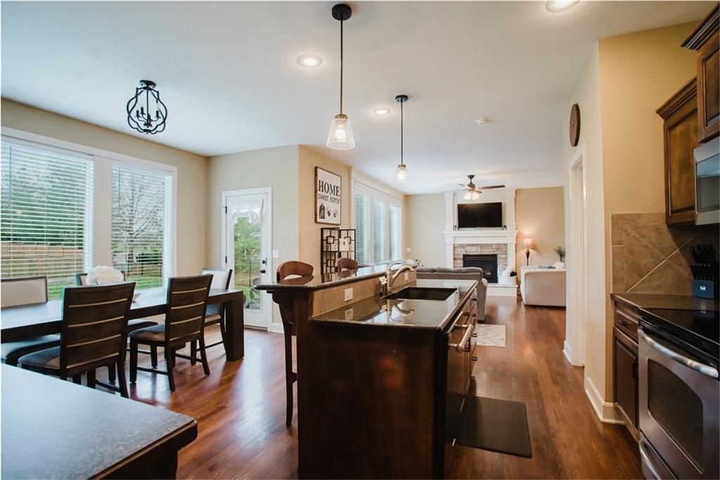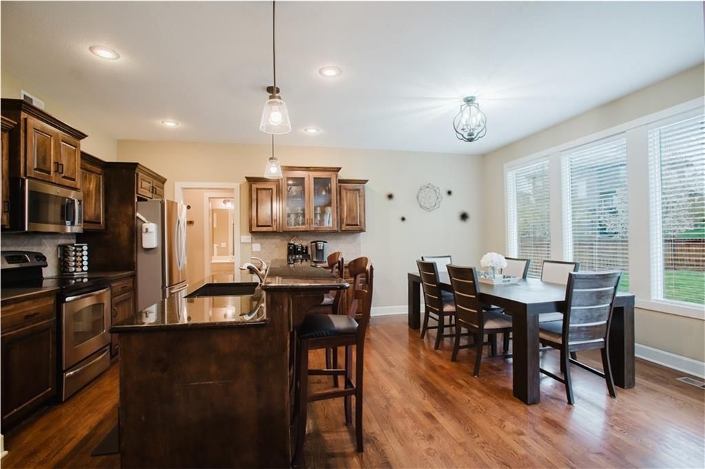 Welcome to Your Dream Home in Olathe! Step into this stunning 2-story, 5-bedroom home where comfort meets style in every corner. Located in a friendly and sought-after neighborhood in Olathe, KS, this spacious home offers everything you need - and more. The open-concept main floor features rich hardwood floors and a beautiful kitchen complete with granite countertops, stainless steel appliances, and plenty of space to gather. Whether you're hosting friends or enjoying a quiet night in, the seamless flow between the living, dining, and kitchen areas makes everyday living feel effortless. Upstairs, you'll fall in love with the oversized master suite - your personal retreat - with a luxurious dual-head shower and generous walk-in closet. Four additional bedrooms offer plenty of space for family, guests, or a home office setup. The finished basement is made for entertaining, featuring a full bar area and flexible space for movie nights, game day, or your home gym. Out back, enjoy your large, fenced yard - perfect for kids, pets, or outdoor get-togethers. And don't forget the perks of the neighborhood! The HOA includes access to a community pool with a fun slide, a play area, and more. This home checks every box - style, space, and amenities. Don't miss your chance to make it yours!