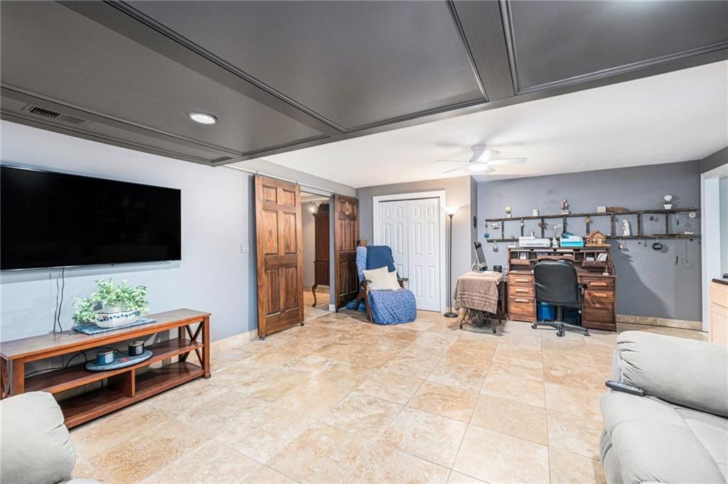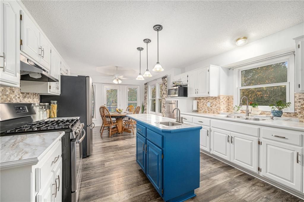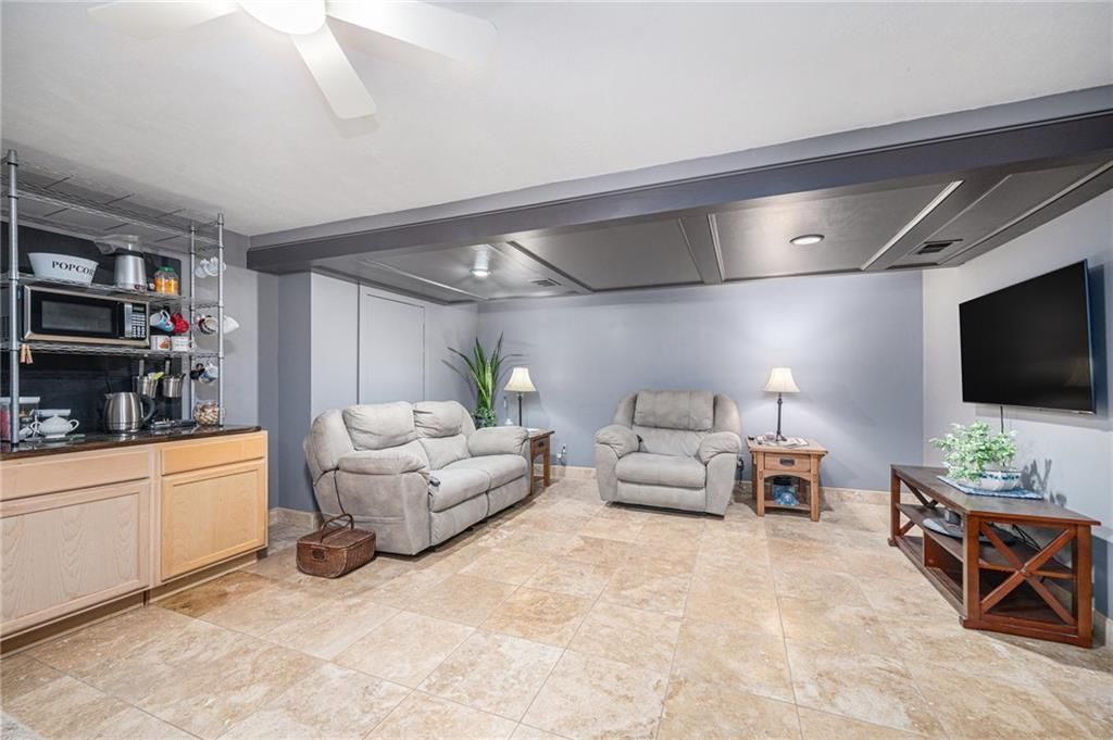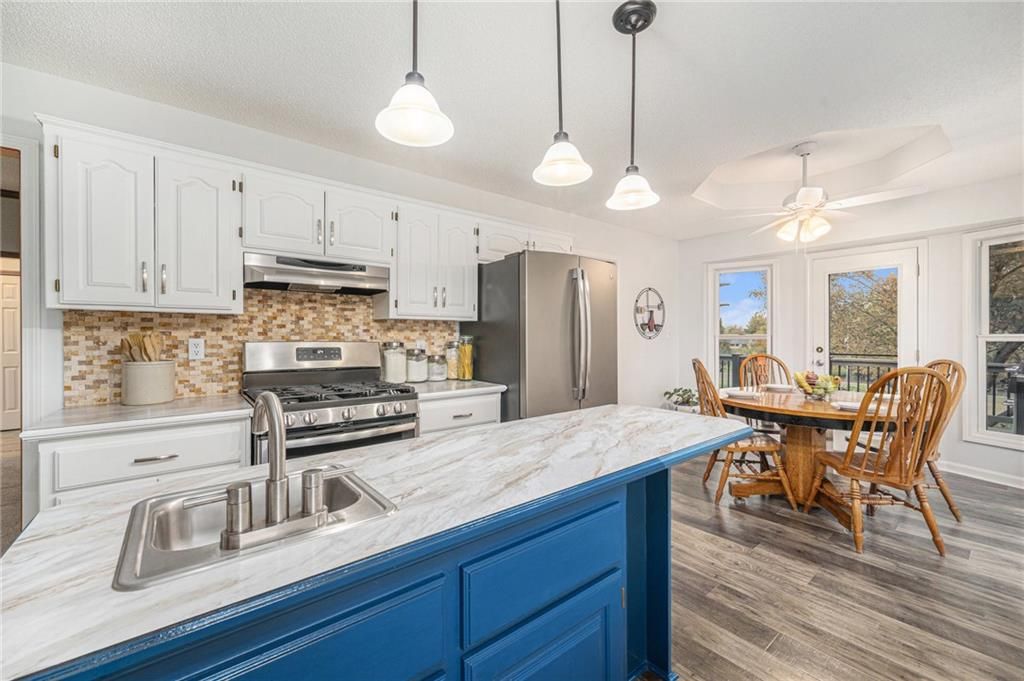 Welcome to this well-cared-for one-owner ranch-style home offering comfort, functionality, and pride of ownership throughout. Nestled on a spacious .53-acre lot, this property provides the perfect balance of privacy and space - ideal for relaxing, entertaining, or simply enjoying nature right at home while you tend to your own garden. Step inside to find a thoughtfully maintained main level with generous living areas that blend the modern updates with practical comfort. Enjoy the light filled family room with stone fireplace, bright white kitchen that has stainless appliances that all stay including a gas stove with range hood, secondary wall oven and refrigerator. The adjoining windowed breakfast area overlooks the expansive deck and yard. The welcoming primary suite will wow you with a beautifully updated ADA-accessible bath with long quartz topped double vanity and oversized walk-in shower and closet. The finished walkout lower level expands your living space with a large family or recreation area, a workshop for hobbies or projects, and direct access to the backyard - perfect for gatherings or peaceful evenings outdoors. Enjoy peace of mind with a newer roof with solar panels, newer HVAC system, water softener, and more - all the big-ticket items are already taken care of. The floor plan is perfect for both everyday living and entertaining, and you'll love sipping your morning coffee on the expansive trex 2 tiered deck. The finished walk-out lower level expands your living space with large family or rec room area, 3rd full bath, home office space, 2nd laundry room and access to 3rd garage with workshop for hobbies or projects. Don't miss out on this beautifully maintained home. Just minutes from the Elementary and Middle School, and with quick access to the highway, commuting and school runs are a breeze.