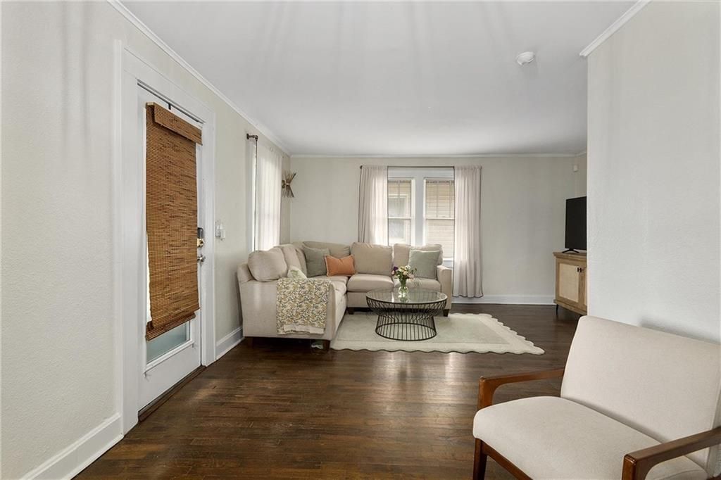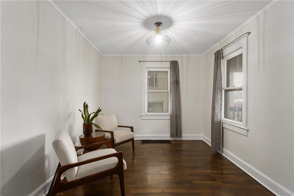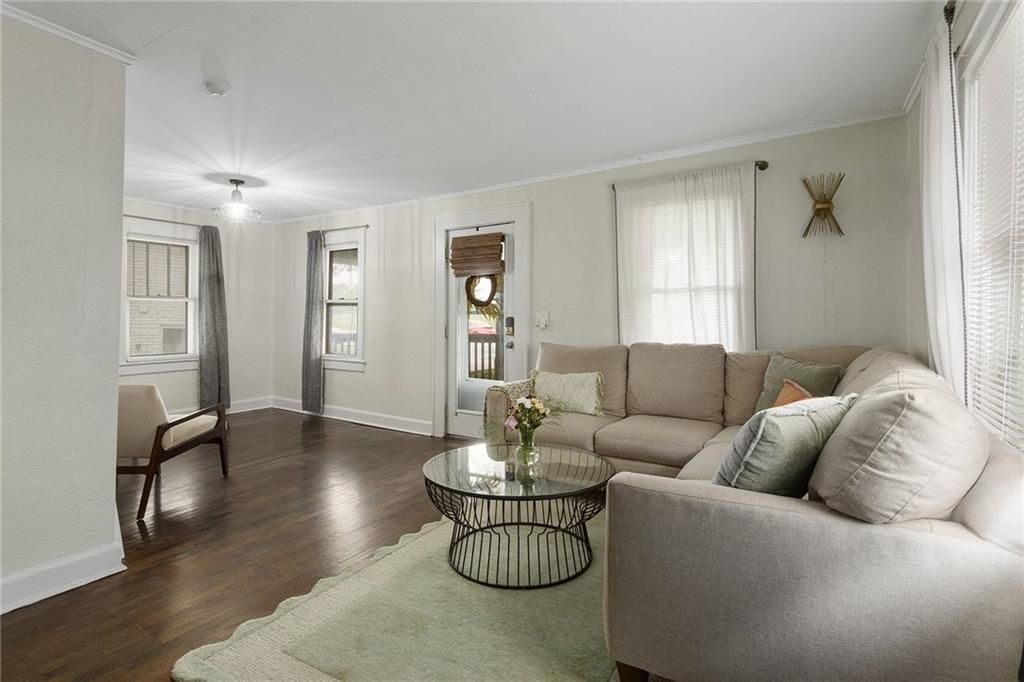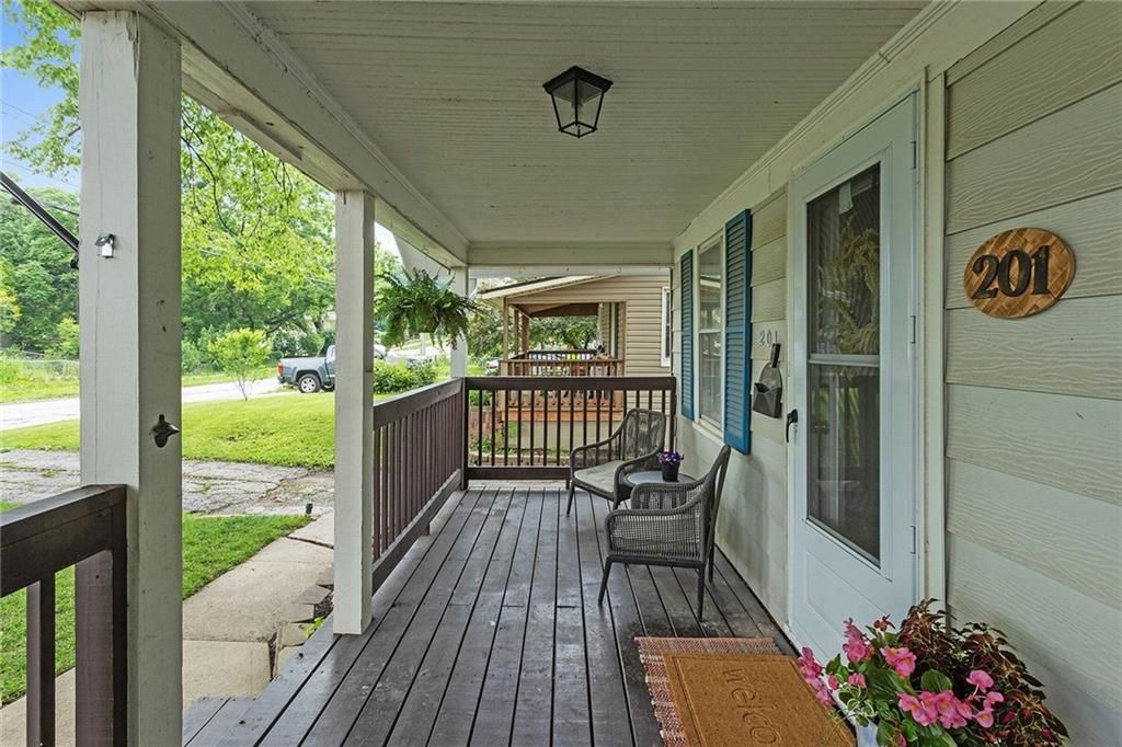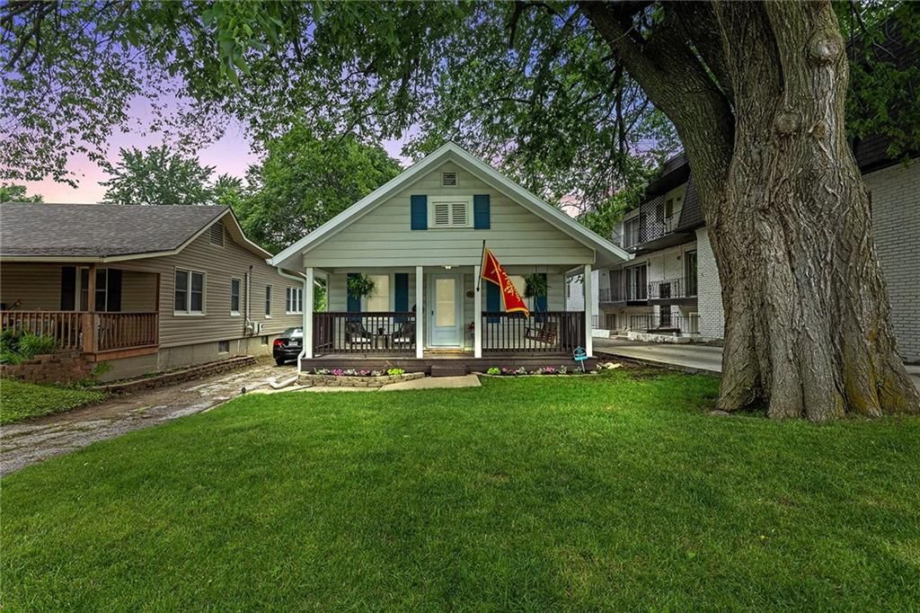 Charming Bungalow! This move-in ready 2-bedroom, 1-bath home offers timeless appeal with beautiful hardwood floors throughout the living and bedroom areas, and durable tile in the kitchen and bath. You'll love the spacious living room and generously sized dining room - perfect for hosting or relaxing. The kitchen features stainless steel appliances, including a refrigerator that stays. Fresh interior paint gives the home a clean, modern feel. Step out back to a large patio area ideal for entertaining, plus a small enclosed back porch with extra storage space. Off-street parking adds convenience. Enjoy peaceful mornings on the inviting front porch or cozy evenings in your backyard oasis. Don't miss this well-maintained gem - schedule your showing today!
