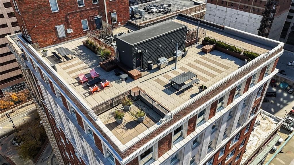 Live in the Heart of Downtown Kansas City! Experience modern urban living in this stunning 1 bedroom, 1 bath condo in the historic New England Lofts at 21 W 10th Street. Originally built as the New England National Bank, this boutique 53-unit building blends timeless architecture with modern comfort - just one block from the KC Streetcar in the vibrant Library District. Unit 5C offers expansive north-facing views and an abundance of natural light through large windows. You'll love the 10' ceilings, and fresh interior paint that give the space an open, contemporary feel. The open concept kitchen features wood cabinetry and a generous island opening to a flexible living area perfect for entertaining or a home office setup. Enjoy the convenience of a full-sized washer and dryer, tucked neatly in the pantry, and a spacious primary suite with a private bath. Residents also have access to an incredible rooftop terrace with 360 city views - from the Downtown Airport to Liberty Memorial. One parking space is included in the secure Library Garage, with additional spaces available for lease. Live steps from the Kauffman Center, T-Mobile Center, River Market, Crossroads, and Westside, plus coffee shops, grocery stores, and world-class restaurants. With the upcoming streetcar expansion, you'll have effortless access from River Market to the Country Club Plaza. There's never been a better time to call downtown Kansas City home.