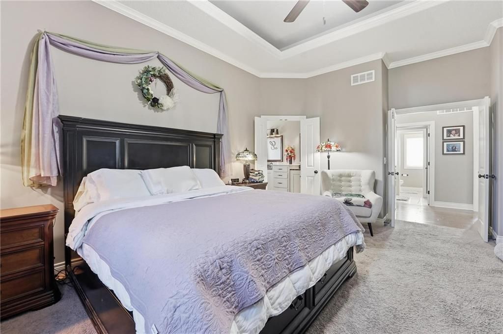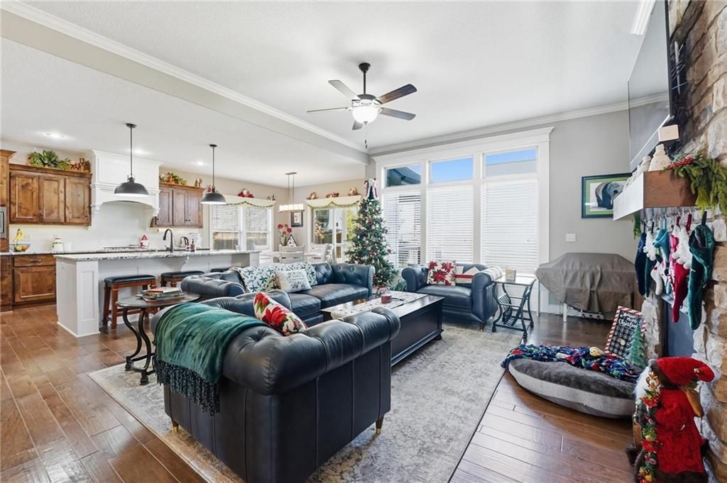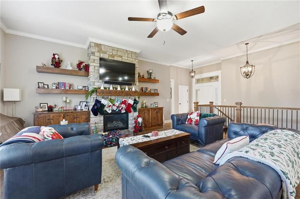 Welcome to this gorgeous former model home that feels warm and inviting from the moment you step inside! The open main living area is perfect for gatherings, with a soaring gas fireplace framed by beautiful custom built-ins that add charm and character. The kitchen is a dream - gas cooktop, custom cabinetry with tons of storage, a large pantry, stunning granite countertops, and a painted island and hood that make the space pop. The dining area is filled with natural light, creating the perfect spot for everyday meals or special occasions. Rich wood floors add warmth throughout the main level, which features two spacious bedrooms, including a primary suite you'll love - complete with a spa-like bath offering a separate tub and shower. Downstairs, you'll find a huge rec room, two more bedrooms, and plenty of unfinished storage space. Located in the sought-after Staley Hills community, you'll enjoy amenities like a swimming pool, playground, and scenic walking trails. This home blends warm style and comfort!