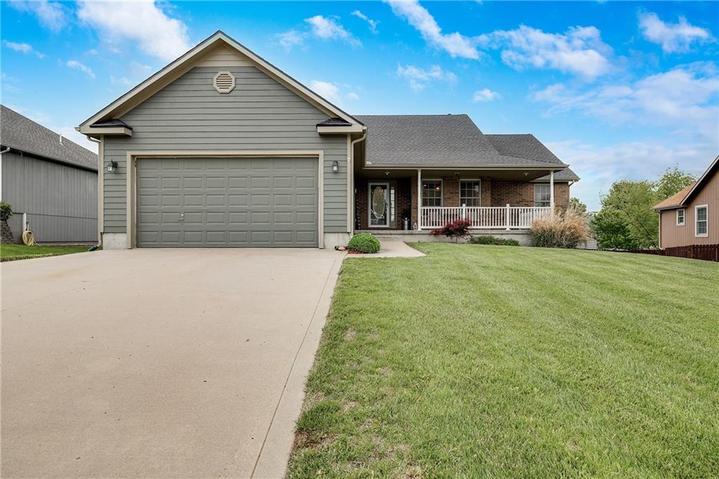 Welcome to this beautifully maintained ranch home offering 3 bedrooms, 2 bathrooms, and an ideal layout for comfortable living and entertaining. The spacious family room features a cozy fireplace and ample space for large furniture, seamlessly flowing into a well-appointed kitchen with abundant cabinetry and counter space. Enjoy meals in the formal dining room or step out onto the deck overlooking the backyard - perfect for outdoor gatherings. The generous primary suite is privately located on one end of the home, offering space for a sitting area or home office, along with a large en-suite bath featuring dual sinks and a walk-in closet. Two additional bedrooms are situated on the opposite end, providing privacy for family or guests. A convenient walk-in laundry room adds to the home's functionality. Downstairs, a massive unfinished basement provides endless possibilities - whether you're looking to finish it out or use it for storage, hobbies, or a workshop. It also includes a third-car garage and walk-out access to the patio and backyard. Located near Lawrence, The Legends shopping center, Sporting KC stadium, and the Kansas Speedway, this home offers both quiet comfort and excellent access to amenities.