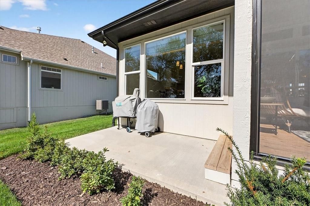 Step into this pristine, move-in-ready home where every detail has been meticulously cared for. This property boasts a spacious and flat wooded backyard that offers the perfect blend of privacy and natural beauty. Enjoy the serenity of the outdoors from the comfort of the screened deck, ideal for year-round entertaining or relaxation. The adjoining patio creates additional outdoor living space, perfect for grilling. Inside, the home is equally impressive, showcasing a thoughtful layout, high-quality finishes, and an abundance of natural light throughout. Gourmet kitchen with stainless appliances, gas cooktop, under counter & island lighting. Built in fridge & freezer. Oversized pantry has door to garage making unloading groceries a breeze. The pantry has plenty of storage, a coffee station and closet. Main level master suite with access to screened in porch. Upgraded bath with large shower including 2 shower heads and a free standing tub. Main level 2nd bedroom with 2 closets can also be used as an office. Convenient laundry room has access to master closet. Basement is a perfect area to entertain and relax with plenty of space and a fireplace. Home has lots of storage! Garage is fully insulated, heated & cooled plus has a shop sink. Christmas light timer. Timer on exterior fountain. Split A/C with damper. Upgrades galore! Easy access to local amenities, including Lake Lenexa and Black Hoof Park, this home is the perfect retreat from the hustle and bustle. Don't miss out on this rare gem - schedule a showing today! *Optional maintenance provided lawn care & snow removal for $165 a month. HOA will let the homeowner decide between maintenance provided or the homeowner takes care of the lawn & snow.