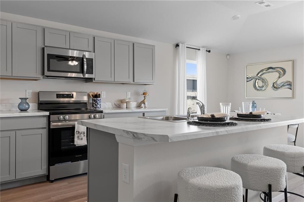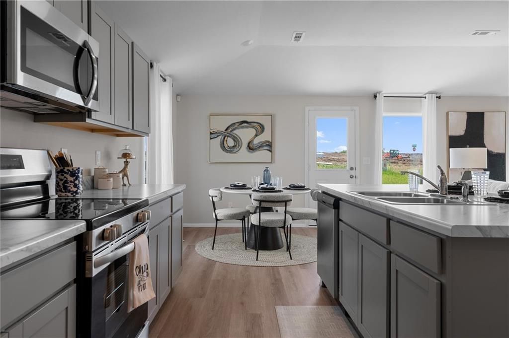 Discover the comfort and style of the Greenfield! This home is currently under construction and is estimated to be ready in April. It features a bright, open layout with a sloped ceiling and LVP flooring throughout all wet areas, the living room, and adjacent hallways. The kitchen includes additional lighting and a five-shelf pantry upgrade for enhanced storage and convenience. Enjoy outdoor living on the extended 14' x 10' patio, perfect for relaxing or entertaining. Photos of the home are from another community. The primary bedroom includes an additional window that welcomes in natural light, and the adjoining bath offers a double-bowl vanity for everyday ease. With modern finishes and well-chosen upgrades throughout, this home offers comfort and value.