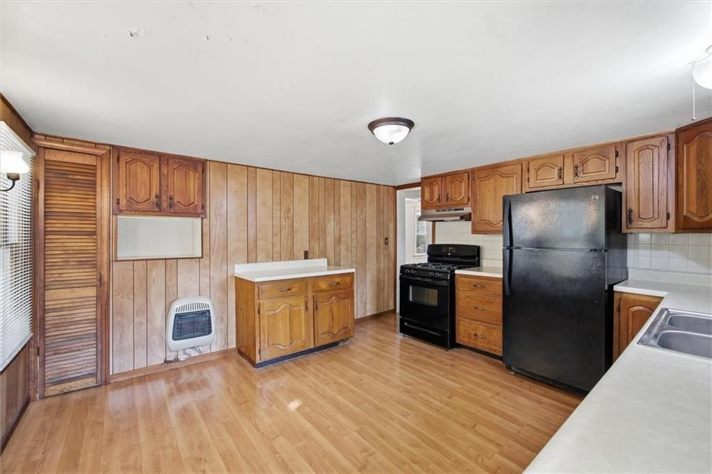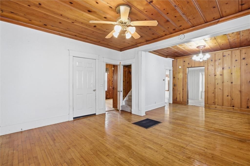 Located on a quiet street and situated on an extra large city lot this home won't last long. Step inside and take note of the wood floors and beautiful wood plank ceilings that are part of the character in this home owned by the same family for many generations. The main floor provides a dining and living room both offering high ceilings and nice size spaces in addition to an extra large full bath with nice walk in shower and beautiful vanity. Concluding the main floor living is a bedroom and the kitchen large enough for a table or island and comes with nice black appliances and pantry. The upstairs offers two more bedrooms and a half bath. Railings that line the stairwell can be easily removed allowing enough space for large furniture. A full unfinished walk out basement allows easy access from both outside and within the home for ample storage and work space. With a new roof and windows along with vinyl siding the exterior is coming ready to go and maintenance free. A large deck and covered front porch gives ample room for entertaining in the spring and summer as well as decorating for the upcoming holidays. An extra long and wide drive allows plenty of parking space and a small storage shed gives enough room for all you lawn tools and mowers. Close to amenities and major highways yet a small hometown feel.