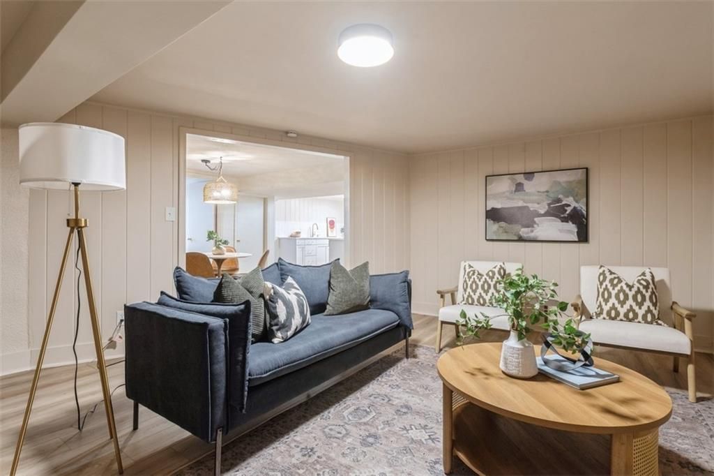 Discover a beautifully remodeled 4-bedroom, 2-bath mid-century modern home nestled in the desirable Beacon Hills neighborhood.This home in on a quiet residential side street Not main Paseo Blvd. Enjoy two separate living spaces, one on each level, both boasting stunning brick fireplaces that exude warmth and charm. Original Character: Hardwood paneled walls and beautifully preserved mid-century details blend seamlessly with the modern updates throughout the home. Open-Concept Design: The expansive main floor features vaulted ceilings and an open floor plan that floods the space with natural light, highlighting the hardwood floors and custom tile work. Gourmet Kitchens: Both kitchens feature quartz countertops, custom tile backsplashes, and ample storage. The main floor kitchen is perfect for entertaining, complete with a large island and coffee bar, with easy access to the side patio - ideal for morning coffee or grilling. Versatile Layout: The basement, with its separate side entrance, includes additional bedrooms, offering privacy and flexibility. Whether you need space for adult children, in-laws, or want to explore AirBnB, STR, or house-hacking opportunities, this home adapts to your needs. Outdoor Space: The fenced backyard is larger than most in the neighborhood, perfect for family gatherings or gardening, and off-street parking adds convenience, along with an oversized single-car garage. Neighborhood: Surrounded by new construction homes, this location offers a mix of modern and historic charm. This home combines style, function, and location, making it a rare find in Beacon Hills.