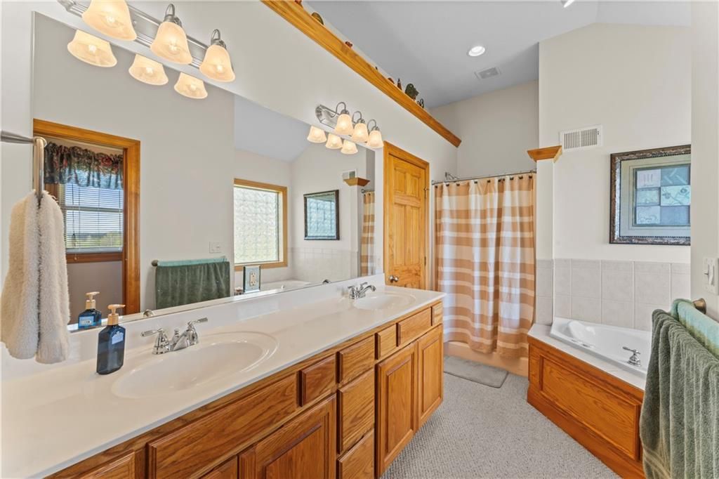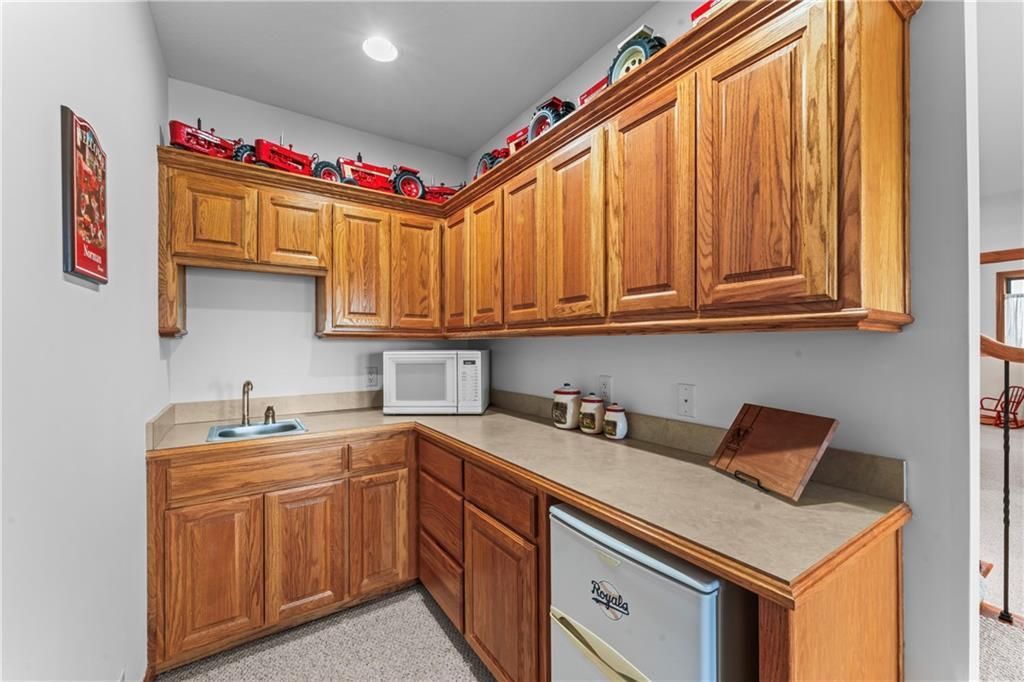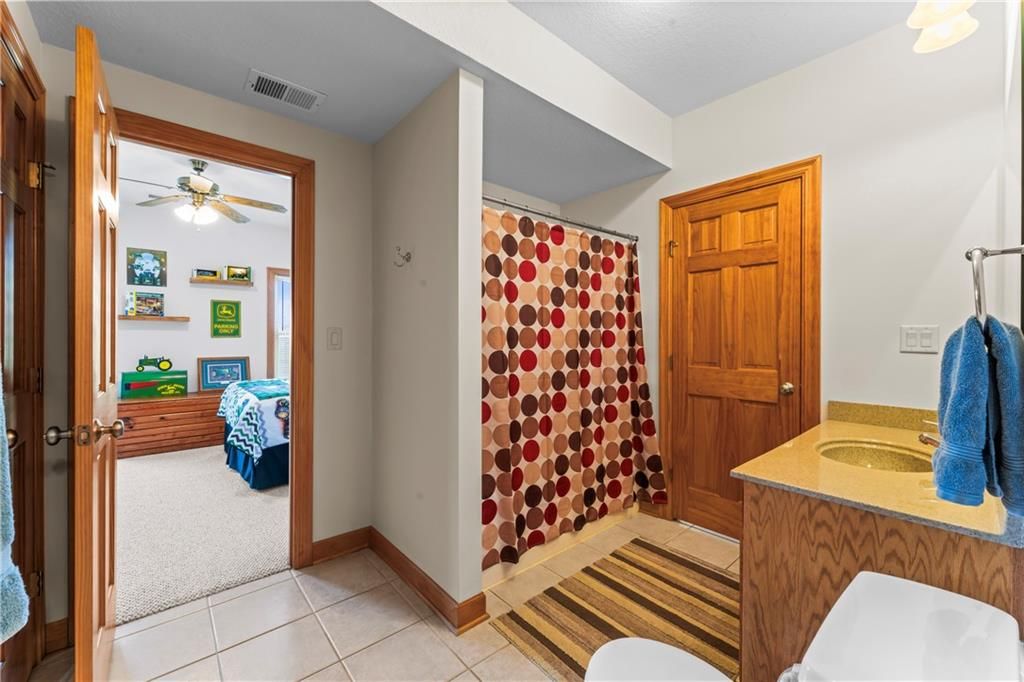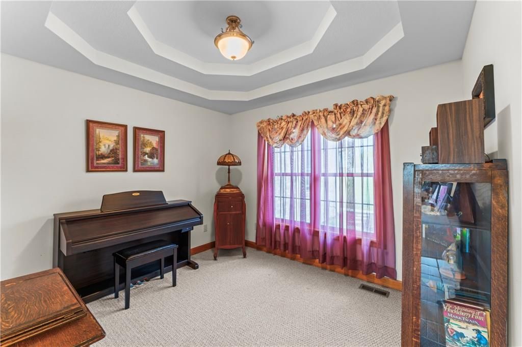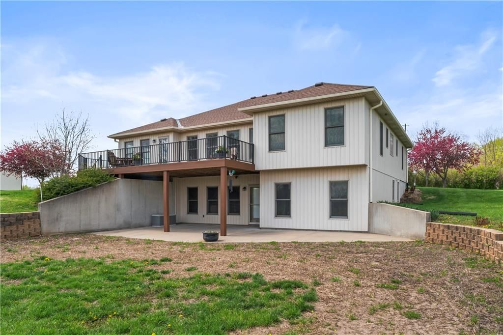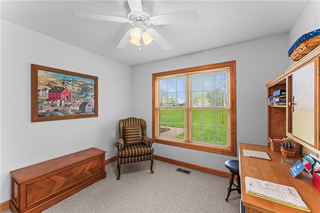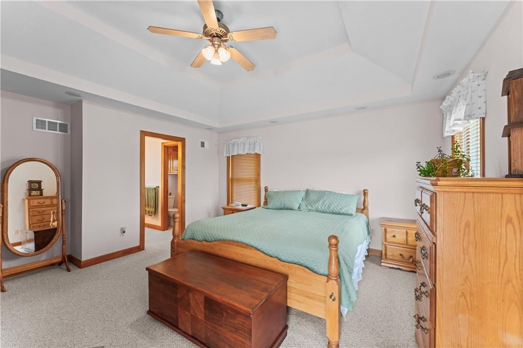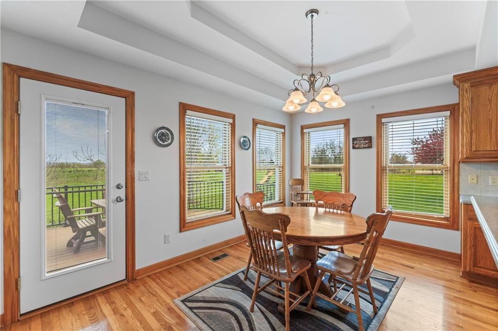 Welcome to this stunning one-owner estate, where quality craftsmanship meets peaceful country living. Built in 2006 with durability and comfort in mind, this home features Anderson windows, solid wood doors, 6 exterior walls, and coordinated countertops. An open-concept layout connects the spacious living area to a kitchen complete with a large island and all appliances included. Ceiling fans throughout the home provide year-round comfort, and two laundry rooms - one on each level - add everyday convenience. The full finished basement offers a wet bar and kitchenette ideal for entertaining or multigenerational living. Step outside to enjoy a 10x35 composite deck with a wrought iron railing and sweeping views of the countryside. A 3-car oversized garage offers ample storage. Equestrian or livestock enthusiasts will appreciate the pipe corral with pens, four automatic waterers, perimeter and cross fencing (mostly updated since 2006), and a 40x60 barn with a 14' lean-to, 16x12 overhead door, RV outlet, commercial opener, keypad entry, 100 amp electric, 220 outlets, and water access. The land features two productive hay fields (18 and 24 acres), a serene pond, and Grand River frontage along part of the east boundary. There are so many recreational and hunting opportunities available, so whether you're seeking a working property or a private retreat with upscale finishes and room to roam, this one-of-a-kind estate delivers on every level.