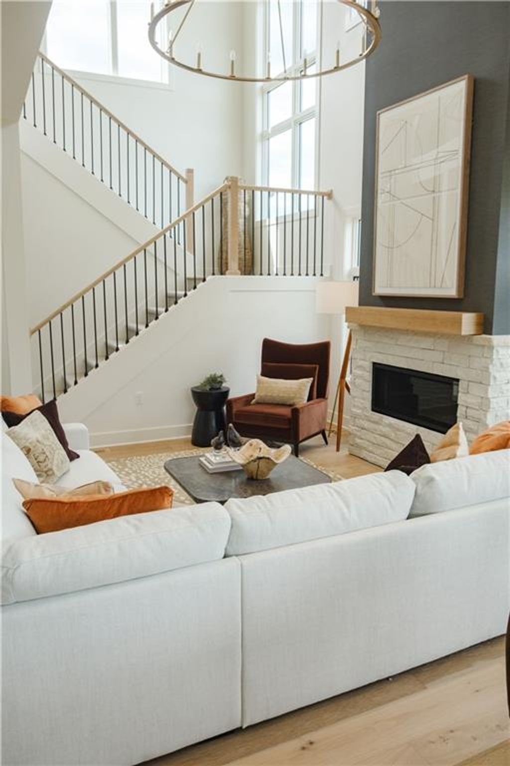 Modern & Convenient living in East Village of Leawood! Luxury Twin Villa Aspen plan, built by Oddo Construction, LLC. This stunning one and a half levels. Stunning 21-ft ceilings, a dramatic wall of windows, and beautiful high-end finishes create a bright, open, and elegant living space. The main level boasts a serene primary bedroom complete with flex room, perfect for work or relaxation. Upstairs, you'll find two additional bedrooms sharing a well deigned bath, offering comfort and privacy for family or guests. Designed with all the conveniences of Leawood, this villa show cases high end upgrades that cater to today's needs. This home is currently at sheetrock stage. Our office is open Monday - Saturday 11-5 and Sundays 12-5.