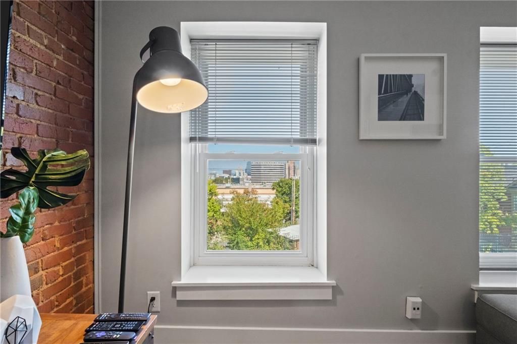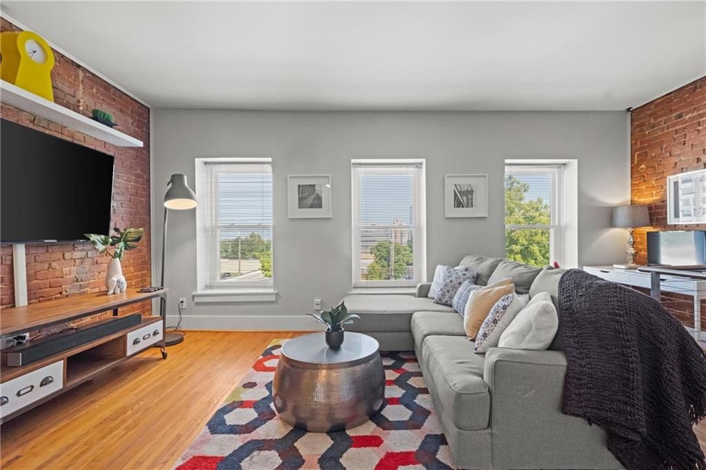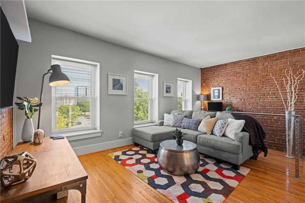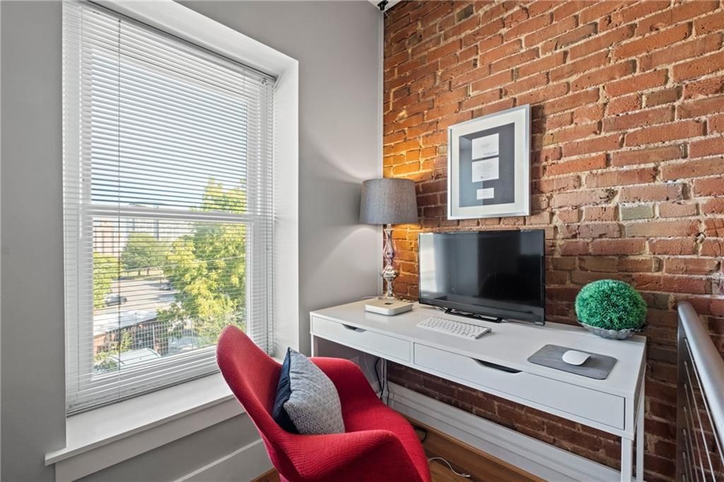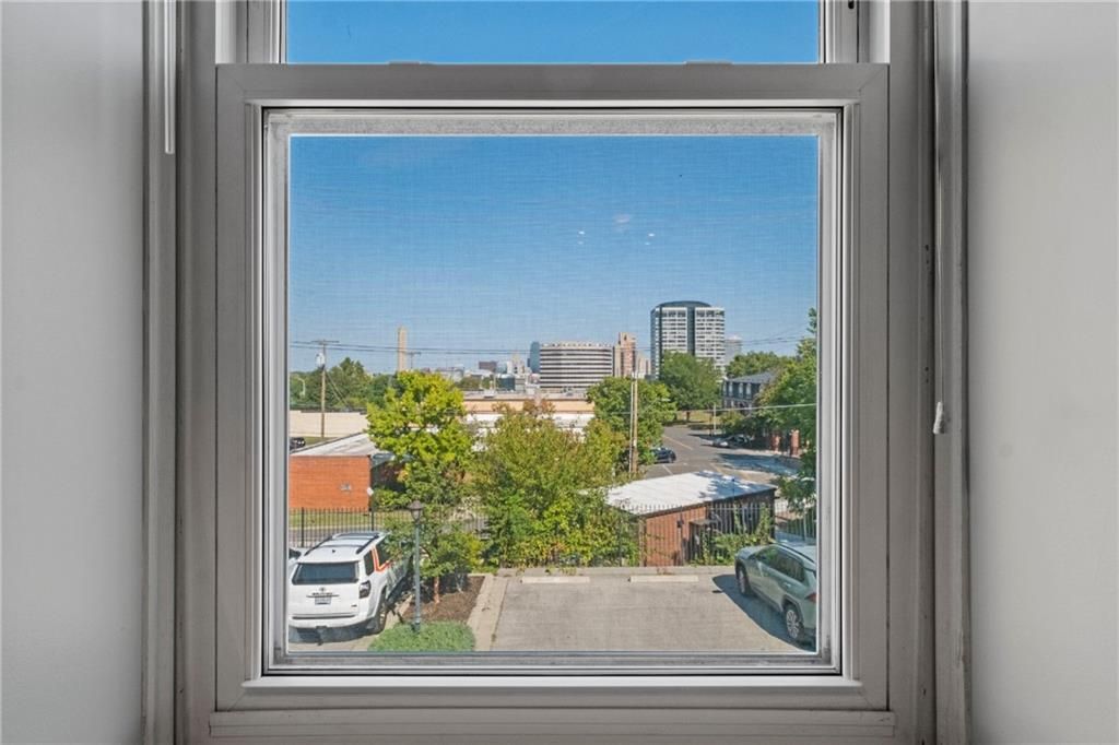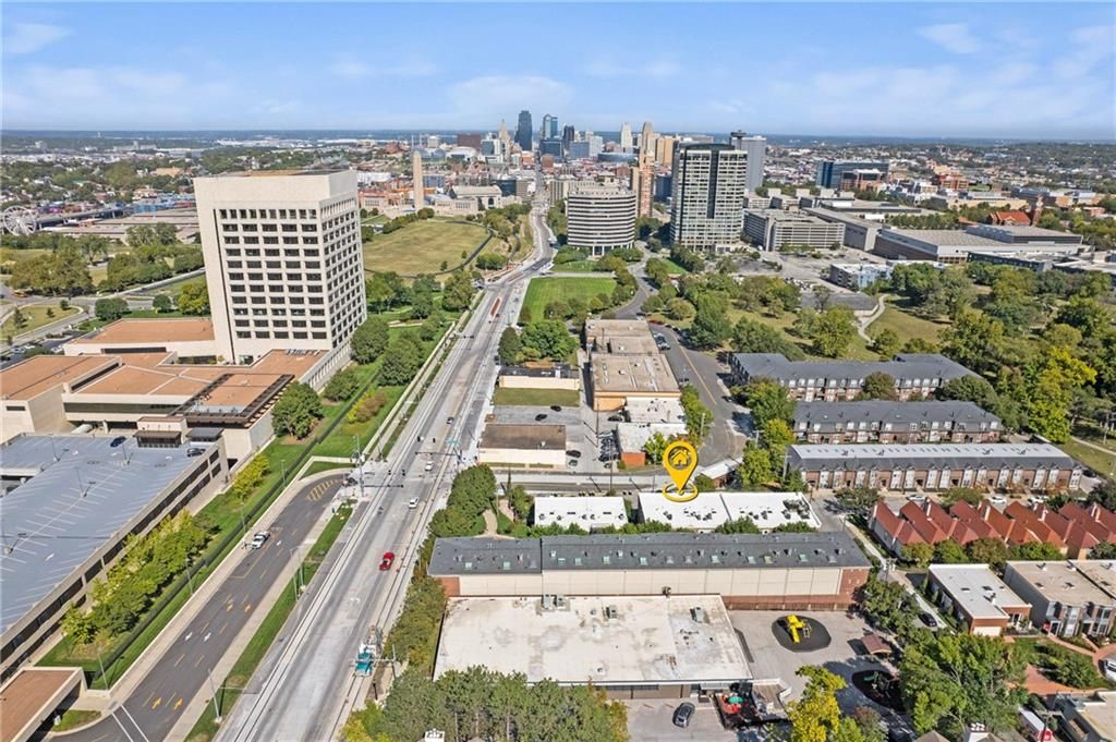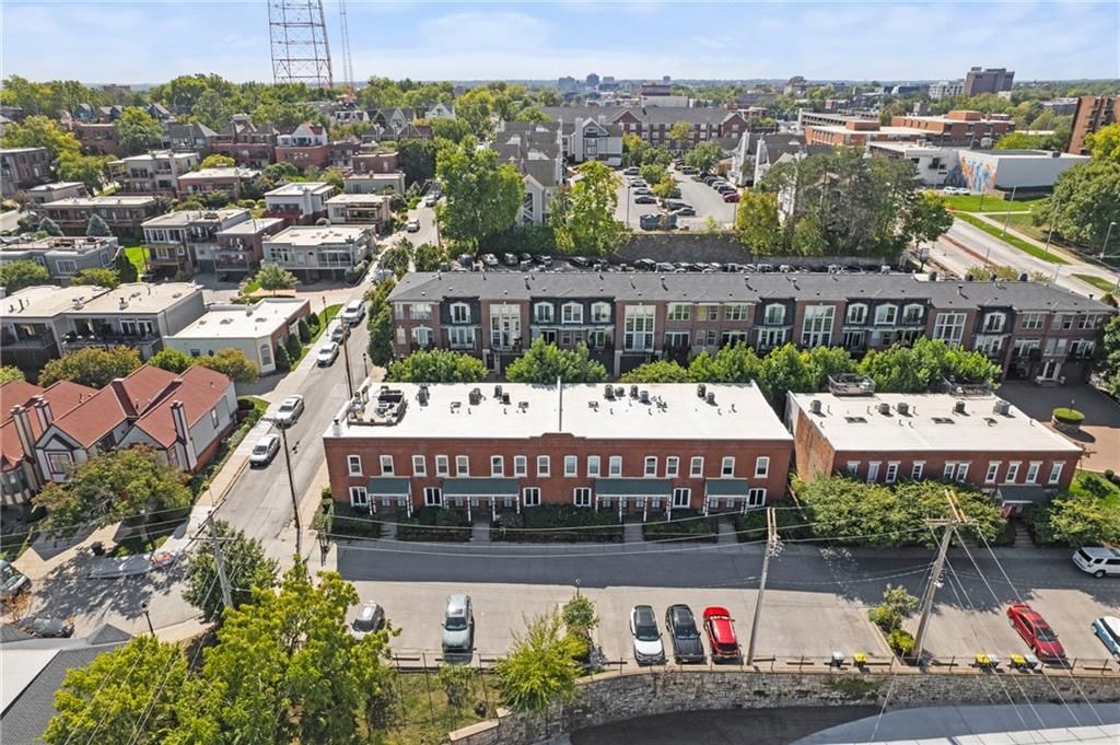 Don't miss out on this exceptional chance to own a one-of-a-kind 2-story loft style condo in the historic Union Hill District with stunning views of Kansas City's downtown skyline! Beautiful exposed brick is a showstopper, designer renovated bathroom, horizontal industrial spindles, beautiful reclaimed hardwood floors from downtown KC, a skylight, custom tile, and quartz countertops. Added large closet in primary bedroom w/ wardrobe. All stainless steel appliances, including a built-in wine refrigerator. Newer vinyl windows and all electric. It also comes with one secured/gated parking spot and direct access to the Streetcar stop for transportation through the gated lot! With low HOA covers exterior snow removal, landscaping, and trash. Located in the Historic Union Hill District of Downtown Kansas City - walking distance within minutes to Liberty Memorial, martini corner, local Restaurants, nightlife, shopping, hotels, Union Station, dog parks, and coffee shops! Perfect Close Proximity to UMKC School of Medicine, UMKC School of Dentistry, and Truman Medical Center in Hospital Hill!