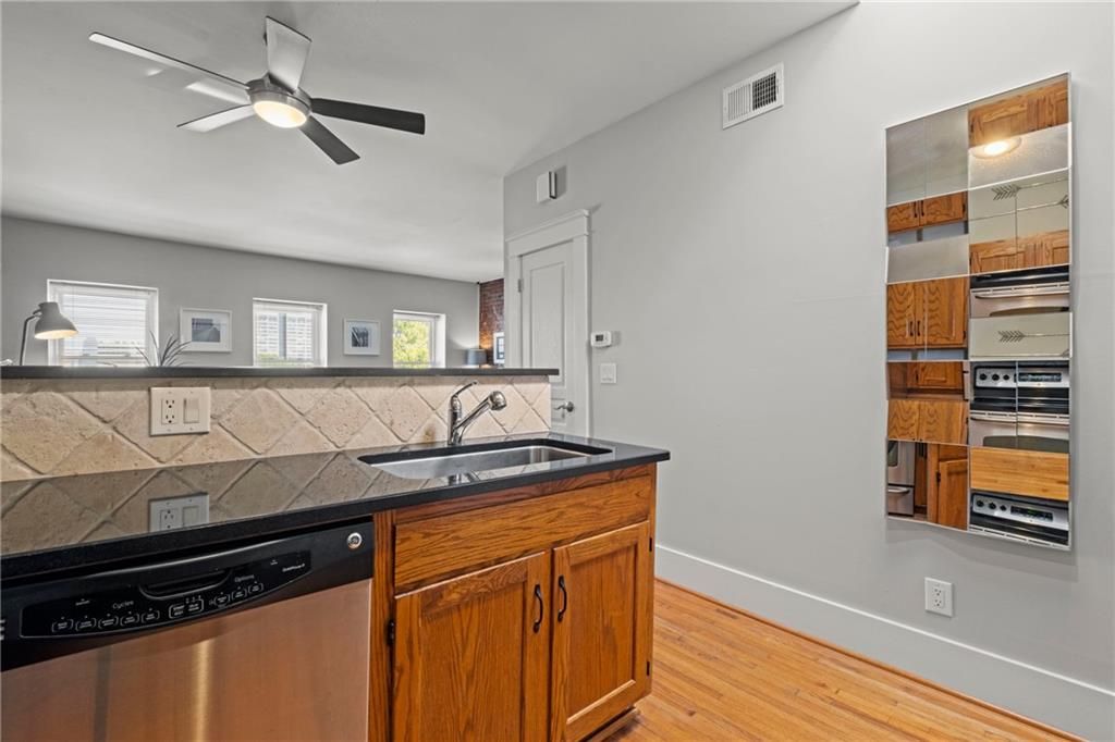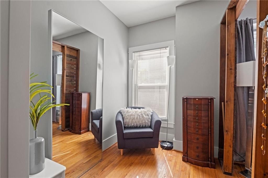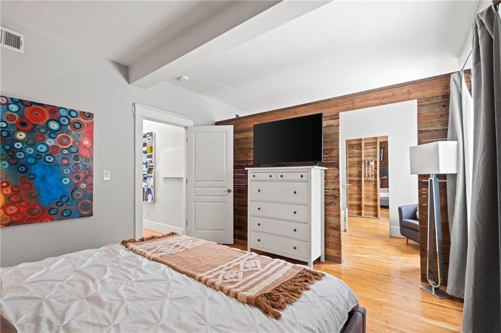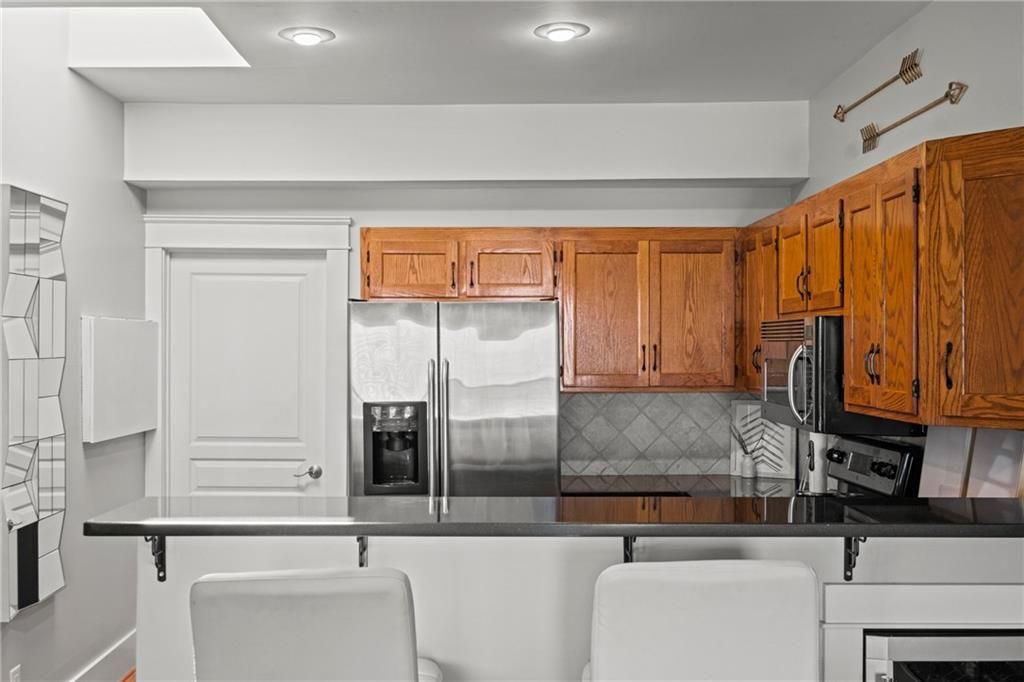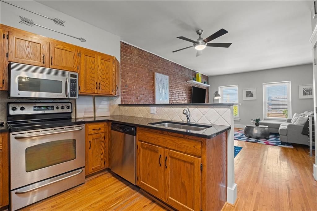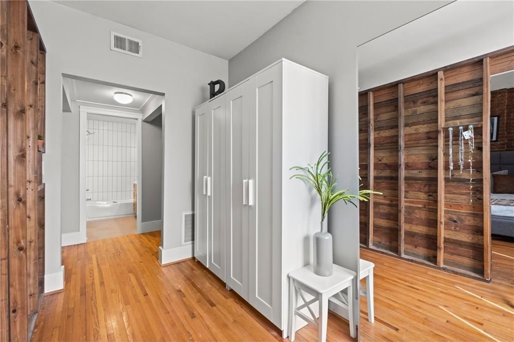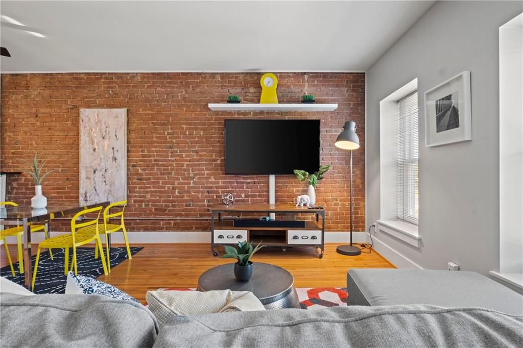 Don't miss out on this exceptional chance to own a one-of-a-kind 2-story loft style condo in the historic Union Hill District with stunning views of Kansas City's downtown skyline! Beautiful exposed brick is a showstopper, designer renovated bathroom, horizontal industrial spindles, beautiful reclaimed hardwood floors from downtown KC, a skylight, custom tile, and quartz countertops. Added large closet in primary bedroom w/ wardrobe. All stainless steel appliances, including a built-in wine refrigerator. Newer vinyl windows and all electric. It also comes with one secured/gated parking spot and direct access to the Streetcar stop for transportation through the gated lot! With low HOA covers exterior snow removal, landscaping, and trash. Located in the Historic Union Hill District of Downtown Kansas City - walking distance within minutes to Liberty Memorial, martini corner, local Restaurants, nightlife, shopping, hotels, Union Station, dog parks, and coffee shops! Perfect Close Proximity to UMKC School of Medicine, UMKC School of Dentistry, and Truman Medical Center in Hospital Hill!