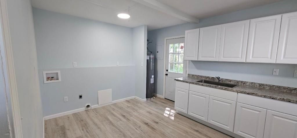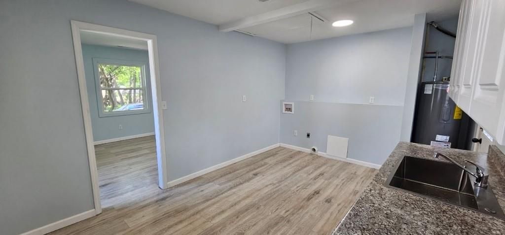 Down to studs remodel. Roof is brand new. Hvac is brand new. Windows are brand new. Kitchen Cabinets are brand new. Floor is brand new. Painted inside and out. Bathroom completely redone. Big backyard with a big tree.