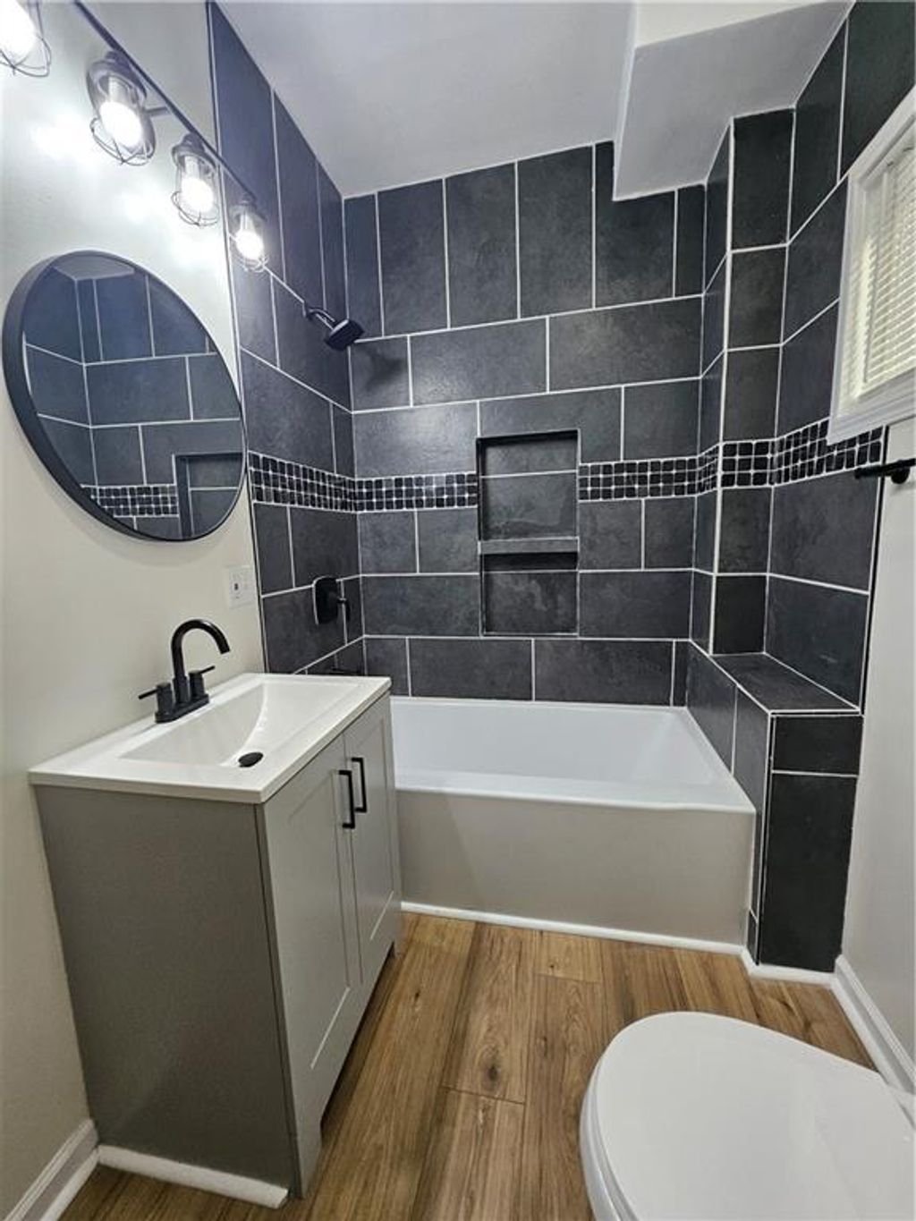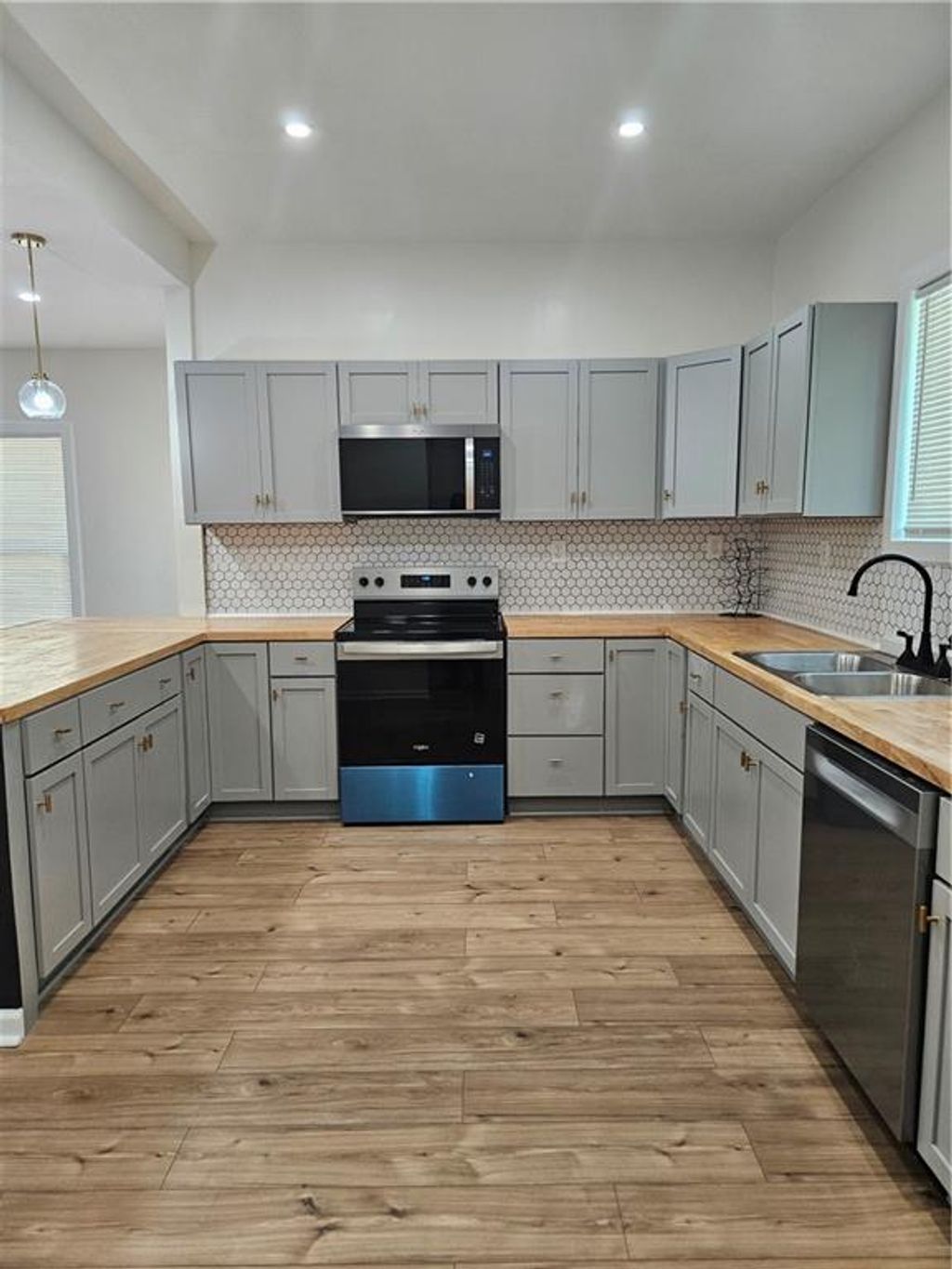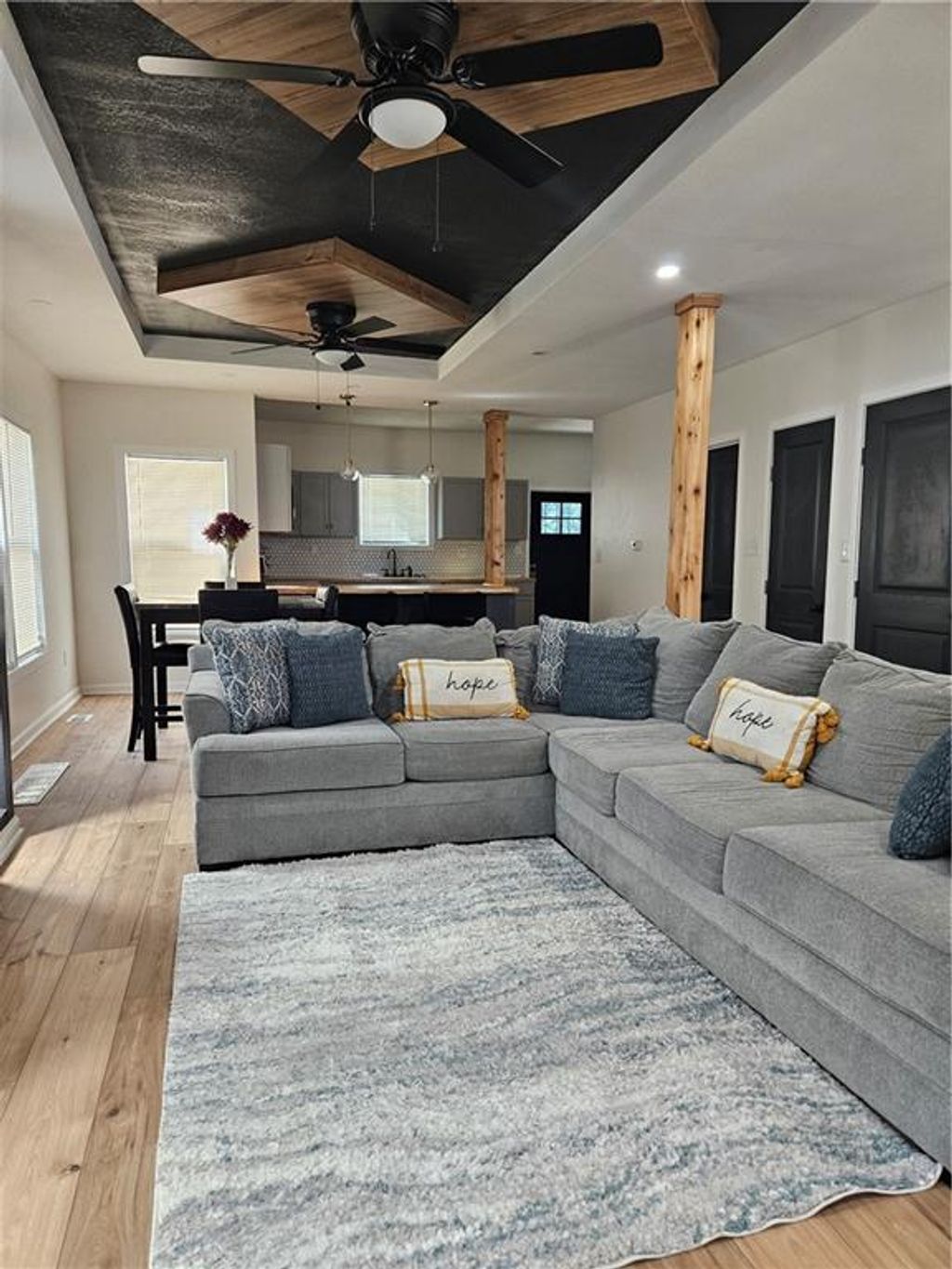 Space, character, and versatility in the heart of Kansas City. This is a 2-story, 5-bedroom, 2-bath home that blends charm with flexible living options. The main floor offers a spacious living room with fireplace, light oak floors, a mudroom bench, and an open dining area flowing into the kitchen with generous cabinet and counter space. Upstairs features oversized bedrooms, a full bath, and laundry area. The unfinished basement adds potential for storage or creative use. Enjoy a large covered front porch and private driveway for off-street parking. Conveniently located near public transit, highways, shopping, schools, and the library.