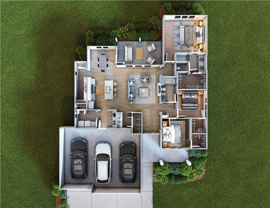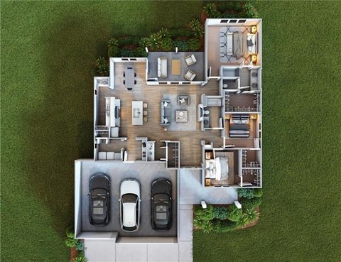 The Hesston floorplan by Dripp Homes. Open concept with tons of natural light! Kitchen furnished with stainless appliances, gas cooktop, hood vent, microwave, quartz countertops, large island with oversized sink and GIANT walk in butlers pantry with built-ins. Three bedrooms on with primary opposite other bedrooms AND a bonus pocket office/storage room. Ensuite features double vanity, tiled walk-in shower, private water closet and gigantic closet laundry. Mudroom and laundry room off garage/kitchen with boot bench. Cozy up to the fireplace in the living room or enjoy the sunrise from covered back patio. Home backs to tree-line providing ultimate privacy three car garage provide plenty of storage. Estimated completion March 2026.