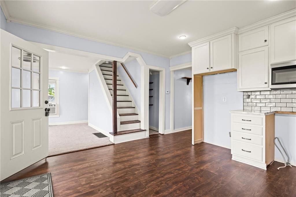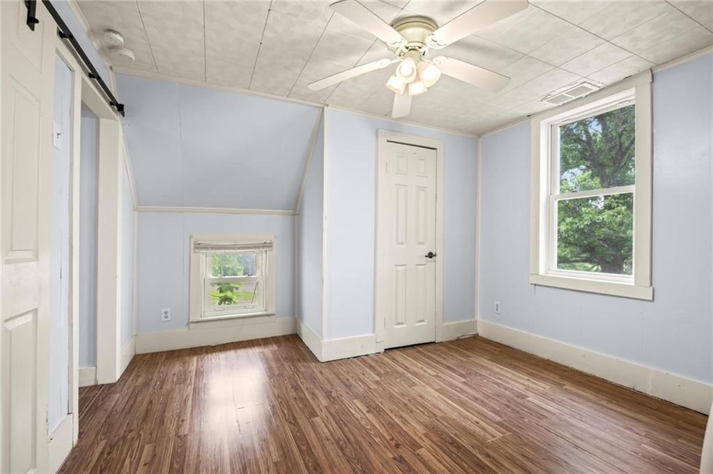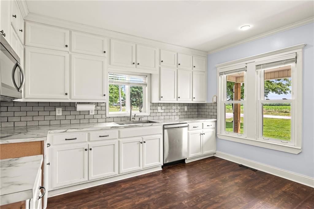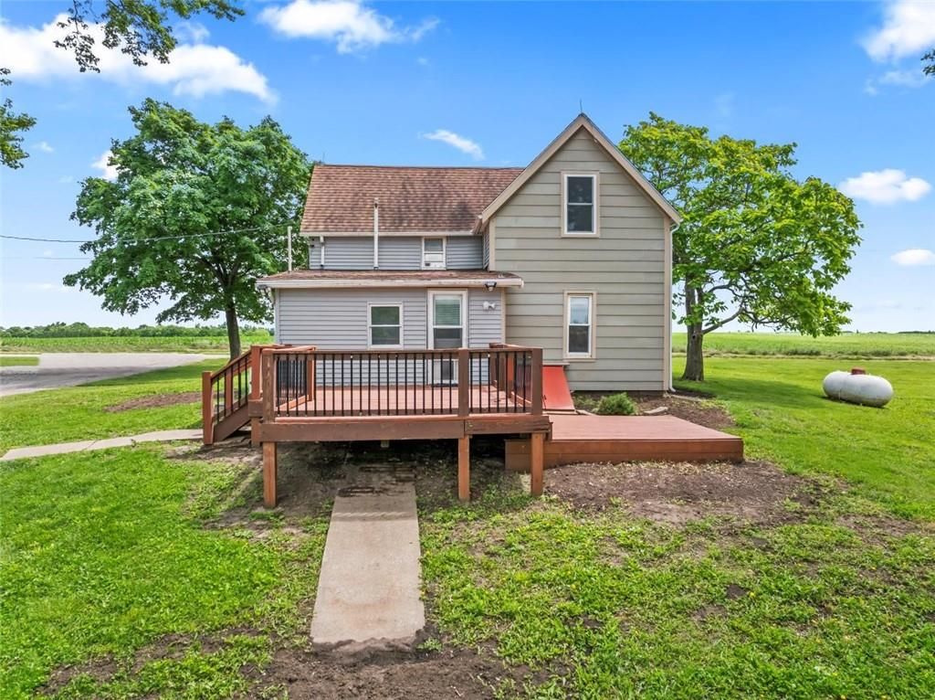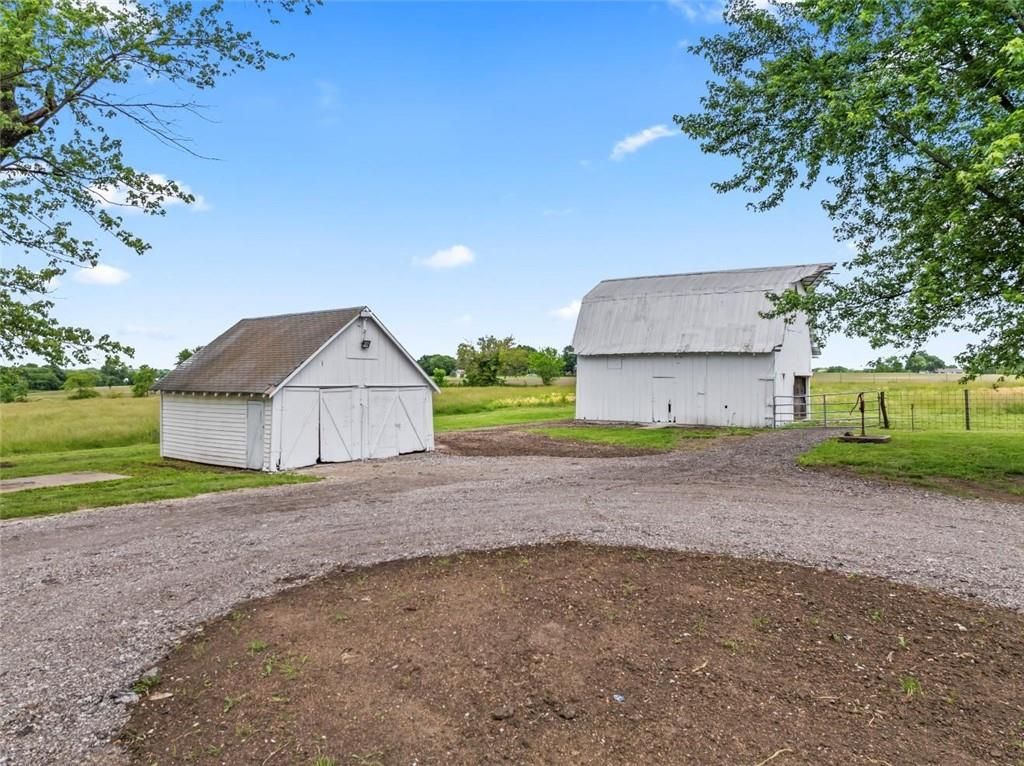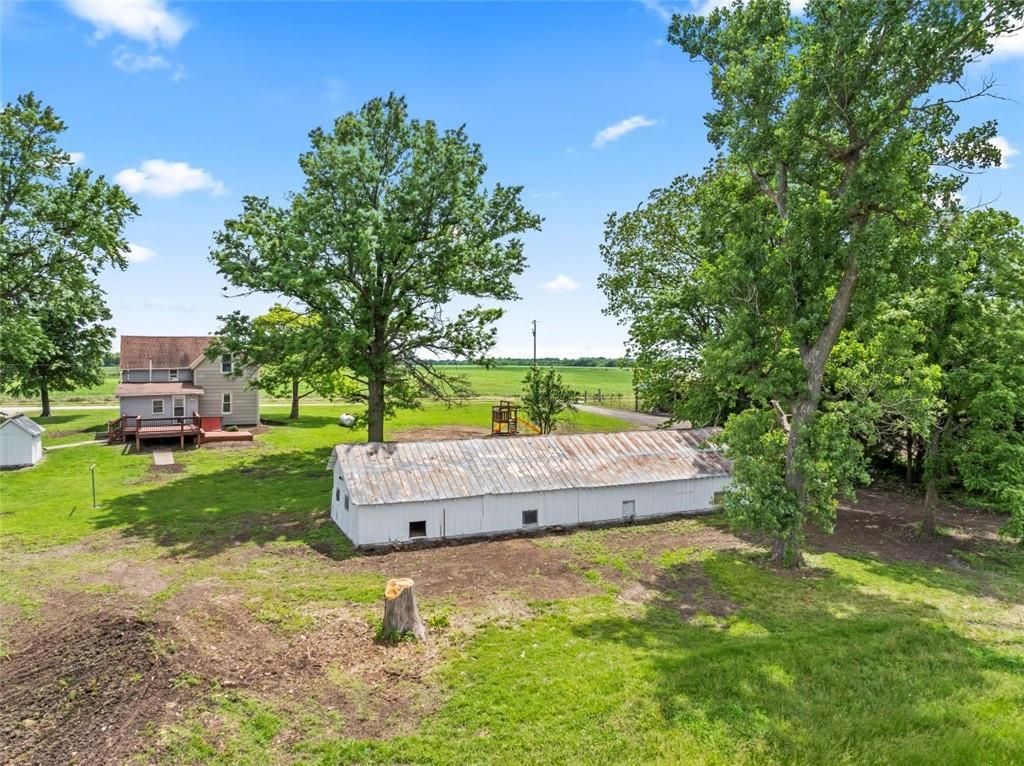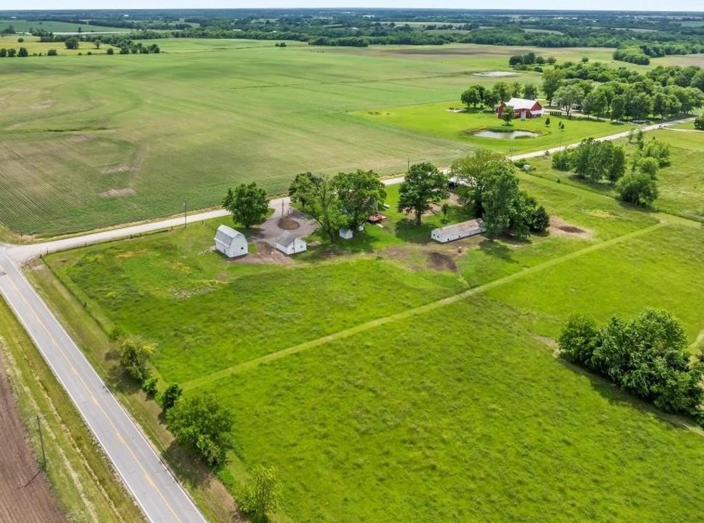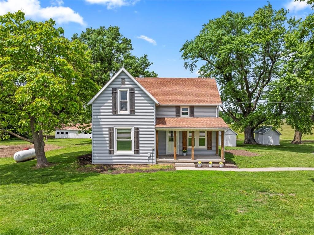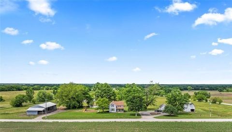 Home Sweet Farm Home! Here's your chance to affordably get your piece of the countryside. Great location with quick access to 7Hwy. Very little gravel. Corner of E 275th and Z Highway. Lots of Historic charm in this quaint 3/bdrm/1bath home on 3.9 acres. The kitchen has been renovated with nice cabinets, counters and backsplash. Full bath with shower and double vanity. Bedroom on main level and loft area and 2 bedrooms upstairs. Relaxing front porch and back deck. Barn, machine shed & several other small outbuilding/sheds. Nice area that could be fenced for livestock.